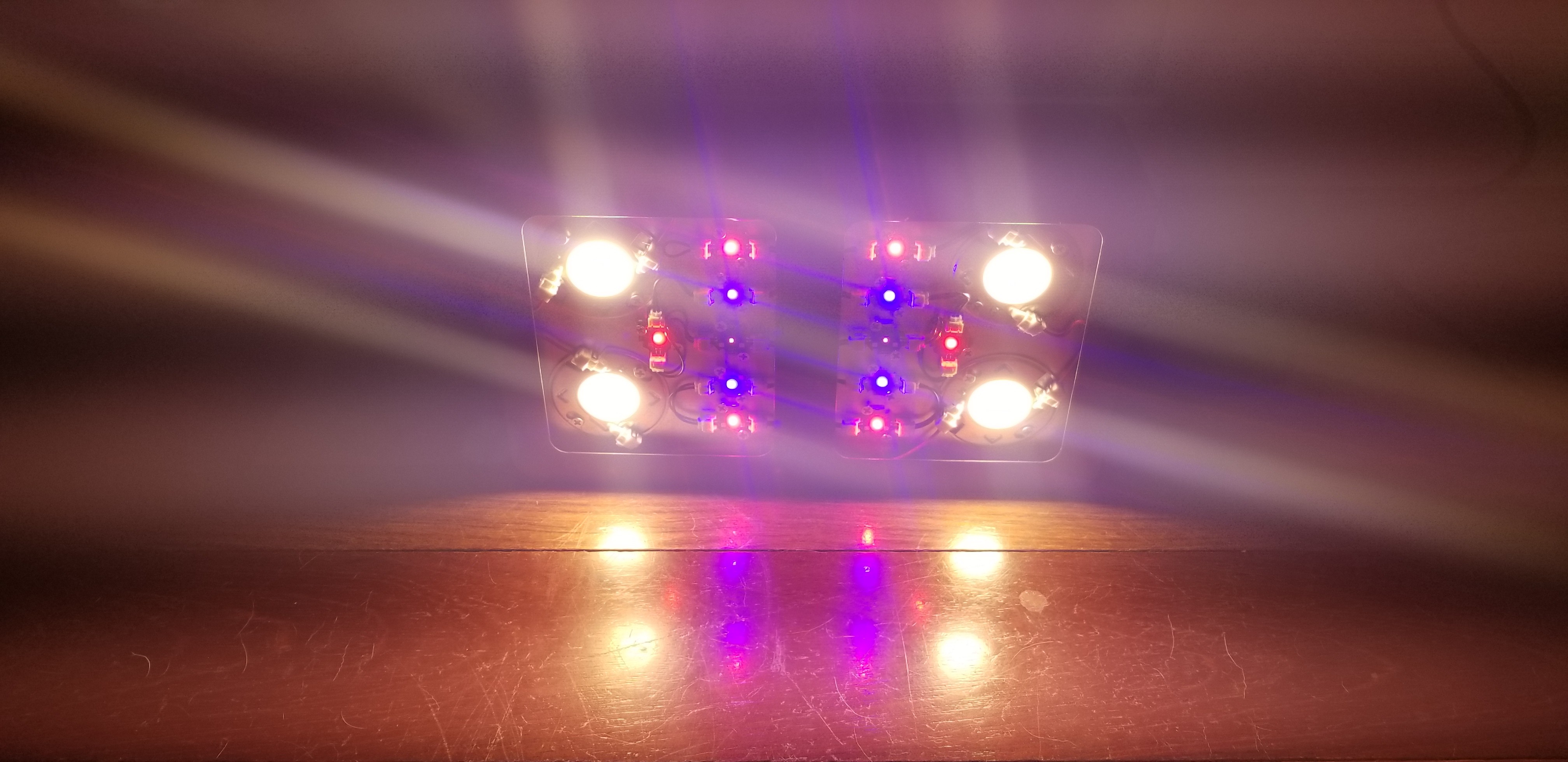 Viparspectra - 4 cxb 3590 36v 3000k, 2 far red cree monos 3v 720-740 nm, 4 royal blue cree monos 3v 440-455 nm, 6 red cree monos 3v 620-630 nm.