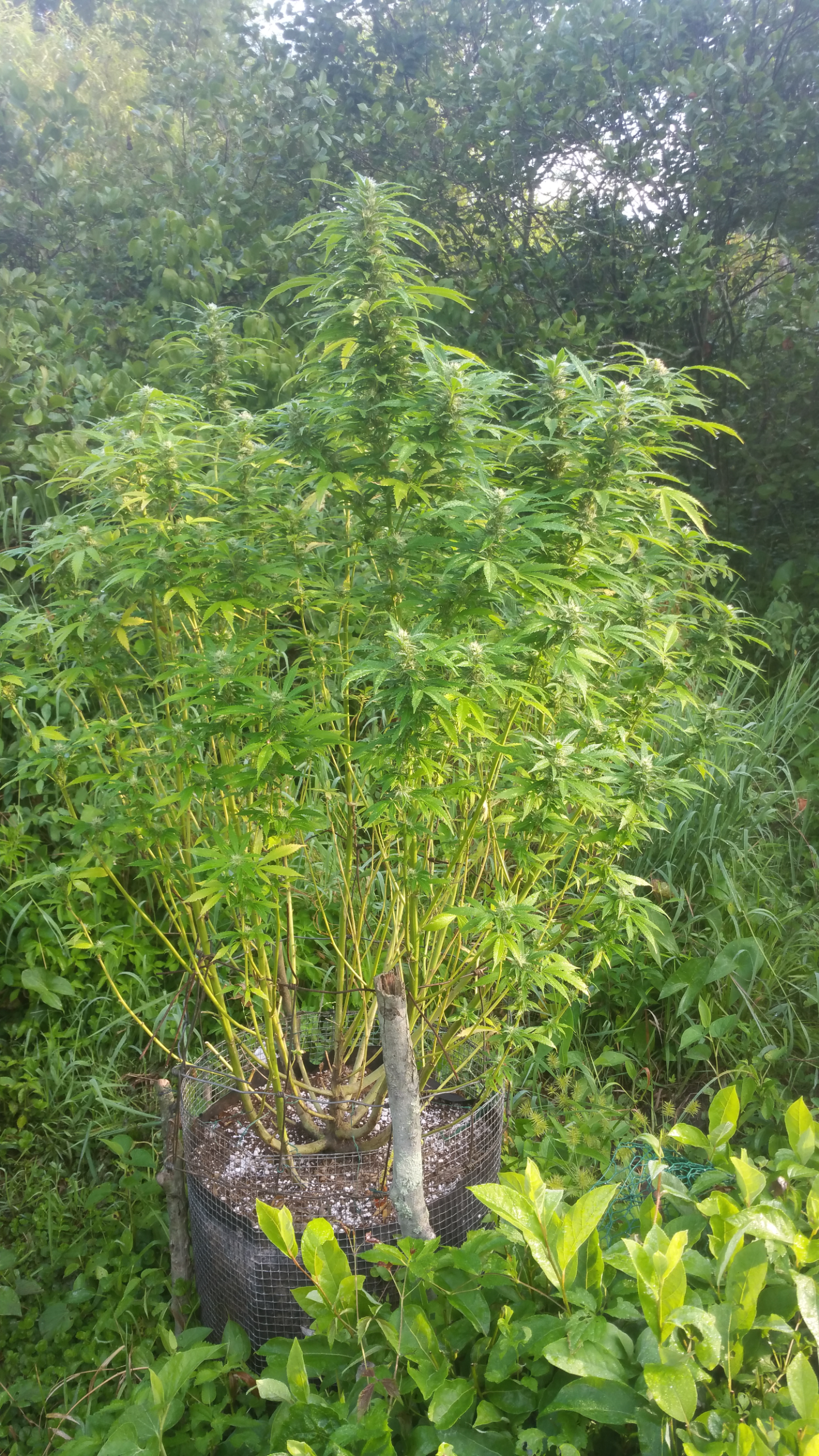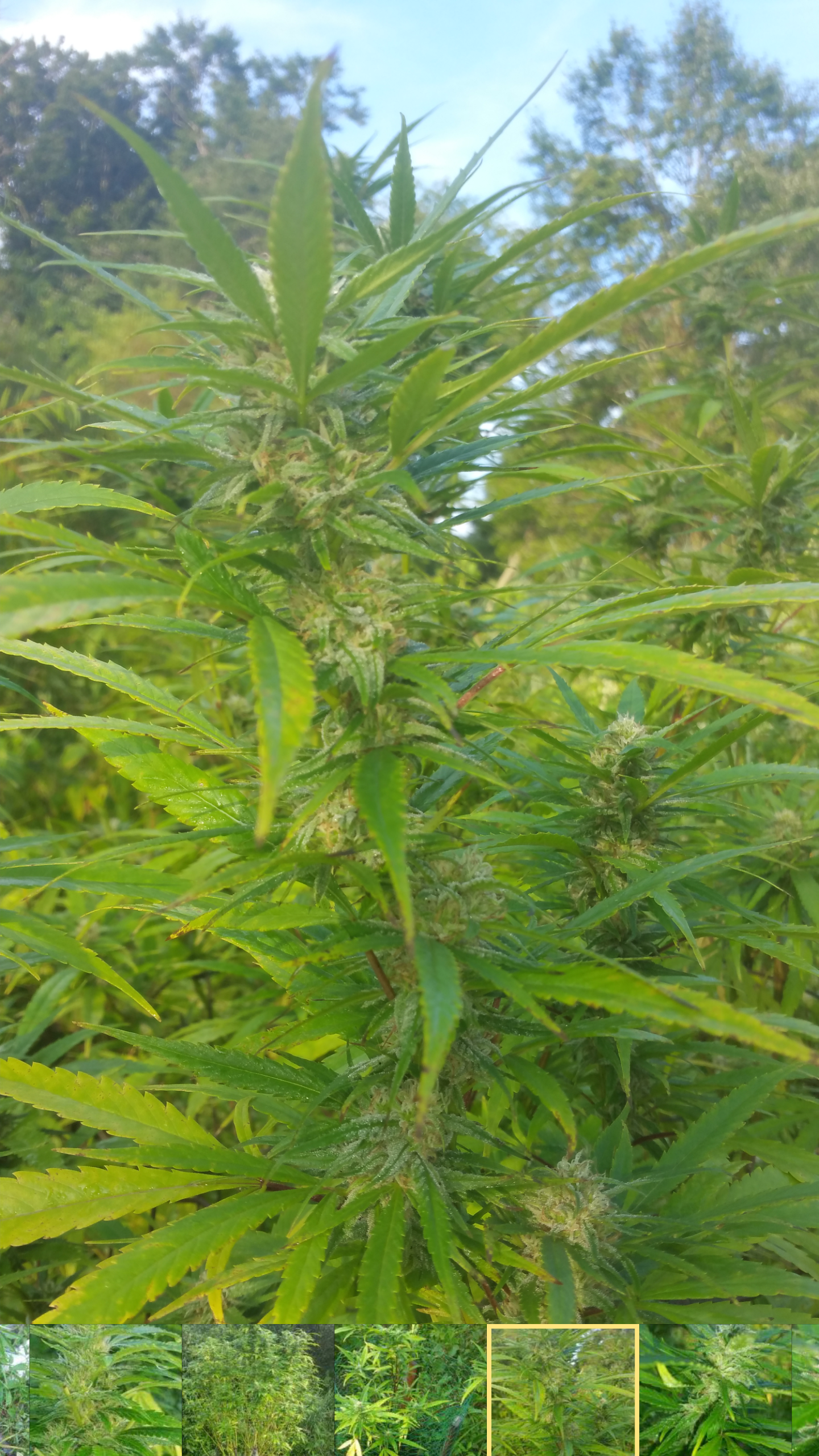 yea, just sucks that all the big buds were all trash, would like to have left them out a couple more weeks... still have the big girl tho.. the buds aren't as big yet but not a drop of mold... so fingers crossed.. she's like 12-13 foot now. yours are lookin good to, should have a good bit of time left forem to fatten up