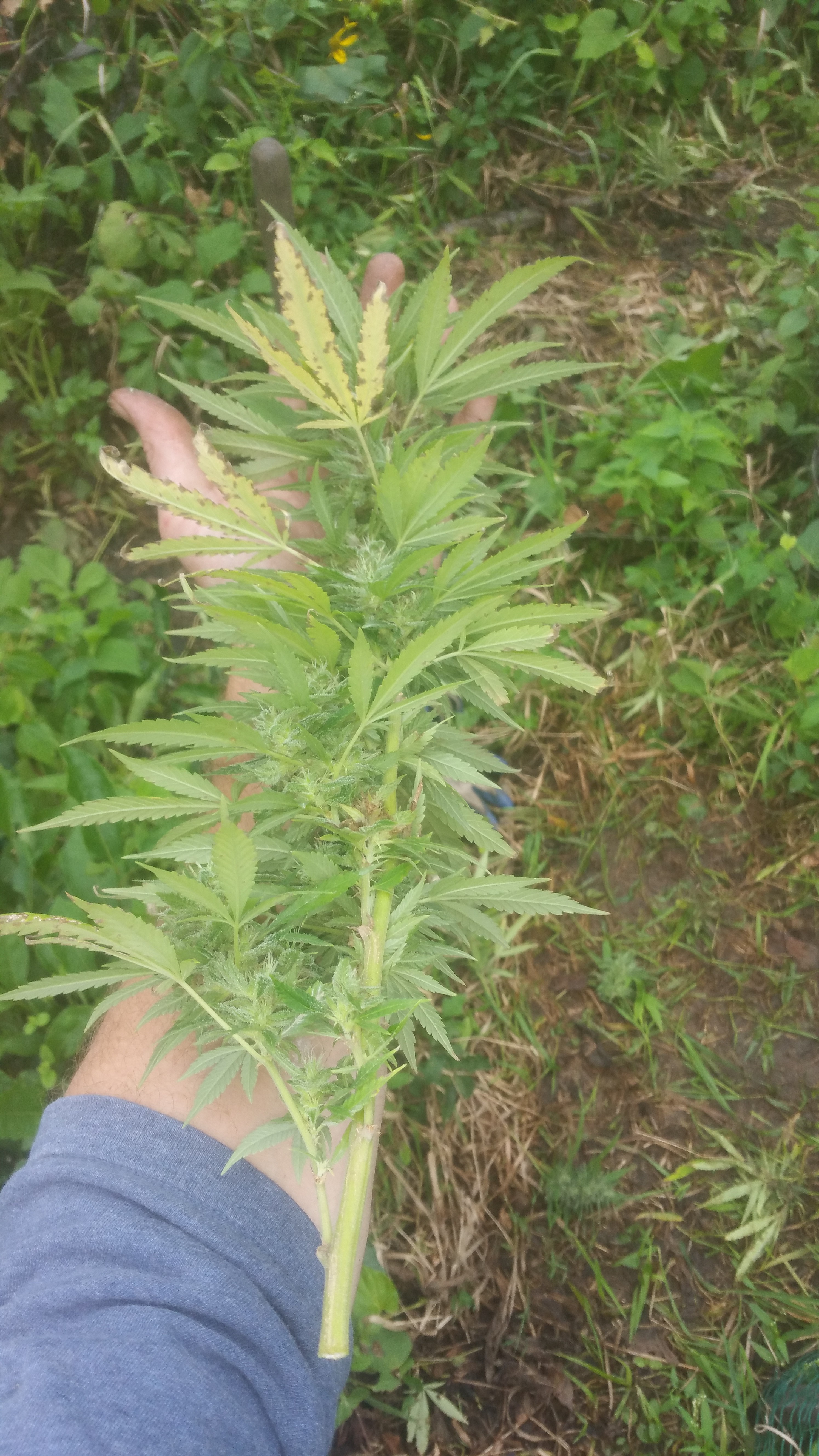 Retodd , thanks for the info, sorry for such a late response I've been crazy busy, well luckily I caught it pretty early , the 2 white widows had it the worst, 1 I had to just cut down because it was everywhere an I didn't want it spreading , an had to cut off like an eigth of the other ww, the rest had a good lititle bit but I think I got it pretty much under control, ::knocking on wood:: lol... so I clipped everything off I could find.. an as I found a spot I would wipe the stem down with 90% rubbing alchohol to kill any left over spores, also cut the bud above an below just as a precaution because there a high chance they will get it anyway., then I sprayed them with some stuff that's supposed to kill the spores an not let it grow back .. an it's all natural,.. seems to be working. I went back 3 days later an only found a spot here or there so hoping I got it, Goin back today to spray again hopefully it didon't come back, an there's no way I can get them outta the rain, some are like 8ft tall an there planted to where I can't movem.. luckily tho the rain looks like it's done for a while, anyway here's some pics, the blue dream actually seems more resistant to the mold then the rest, an the bud shots are of the blue dream