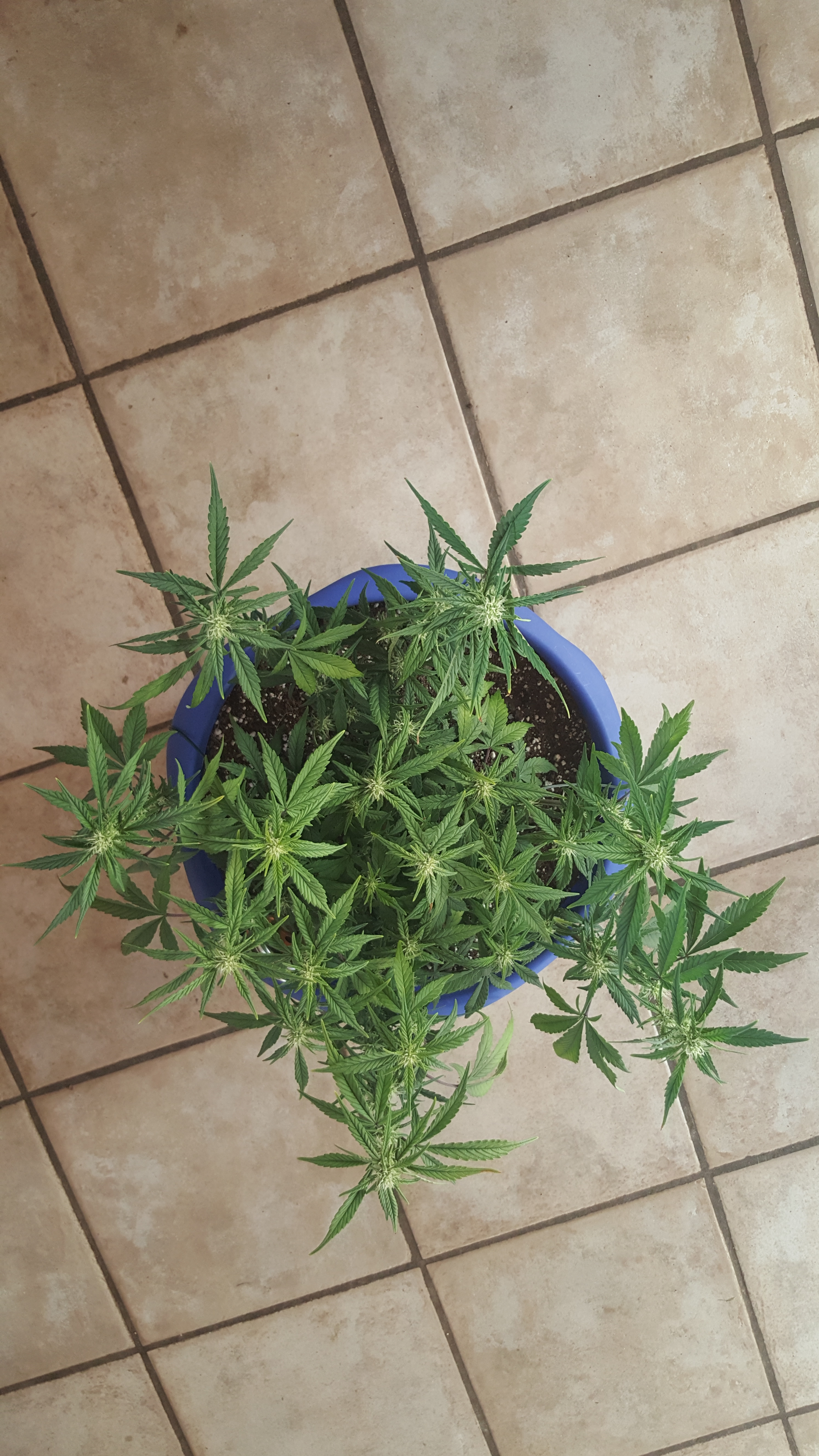 today is day 45...took her out of her spot and trimmed her up really good...she has gotten so big...if I had not cut her I believe she would of been of decent height....feed her full strength nutes and additives again...ph in and out was 6....just stripped/flushed her two days ago and wow she was bone dry today...using a stripper instead of plain water really lets them roots do some good drinking without that salt built up in there....I love her structure and she is loaded with tops..big and medium...her stems are turning purple like a blackberry color...she really smells like a blackberry as well...can't wait...first pic is her in her dwelling.....