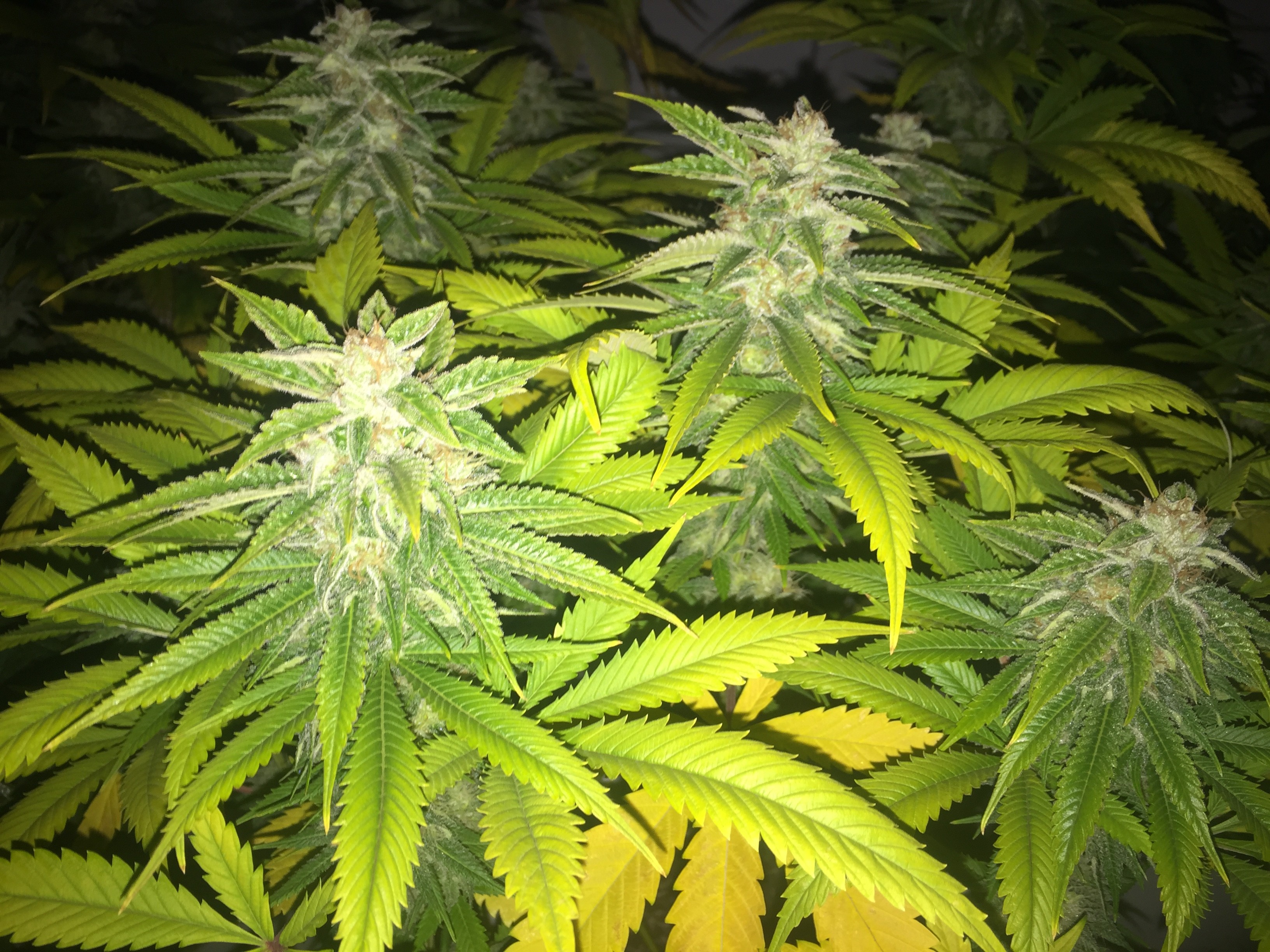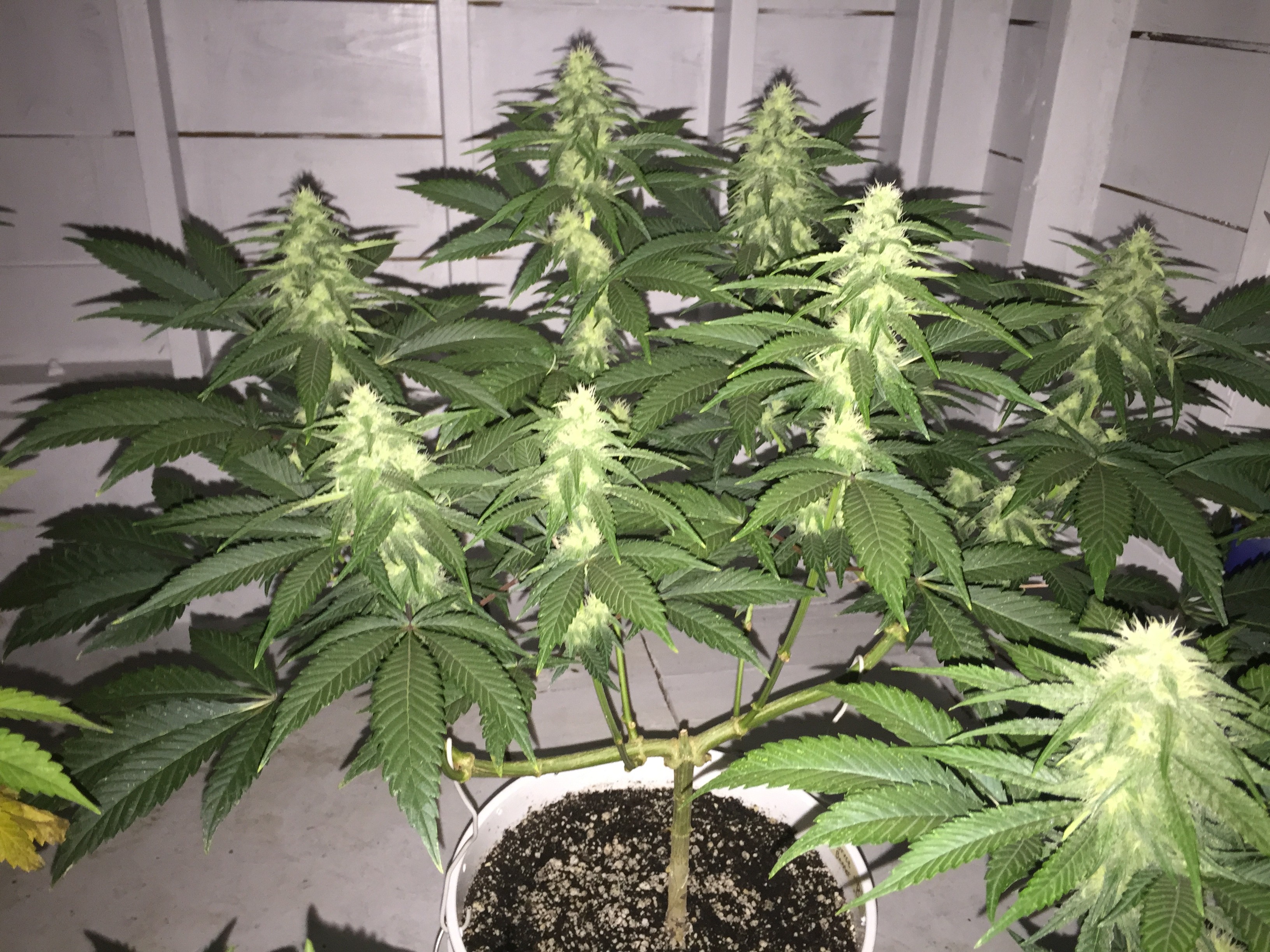 Campesino I know we talked about how my yields went up by having fewer plants per space. I know you have limited space but give it a try. I get really sad if im not getting at least 4 ounces per plant and aim for 10 per plant. I crowded my tents when i started and was lucky to get 2 ounces a plant. I have one plants this time that im aiming for much higher than 10. But it was in veg for 8 weeks.