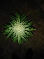 she's like 18 inches tall bagseed indica obviously top cola got a bit burnt mt light wasnt secured like i thought and was just sitting there but its recovering i see new pistils popping out