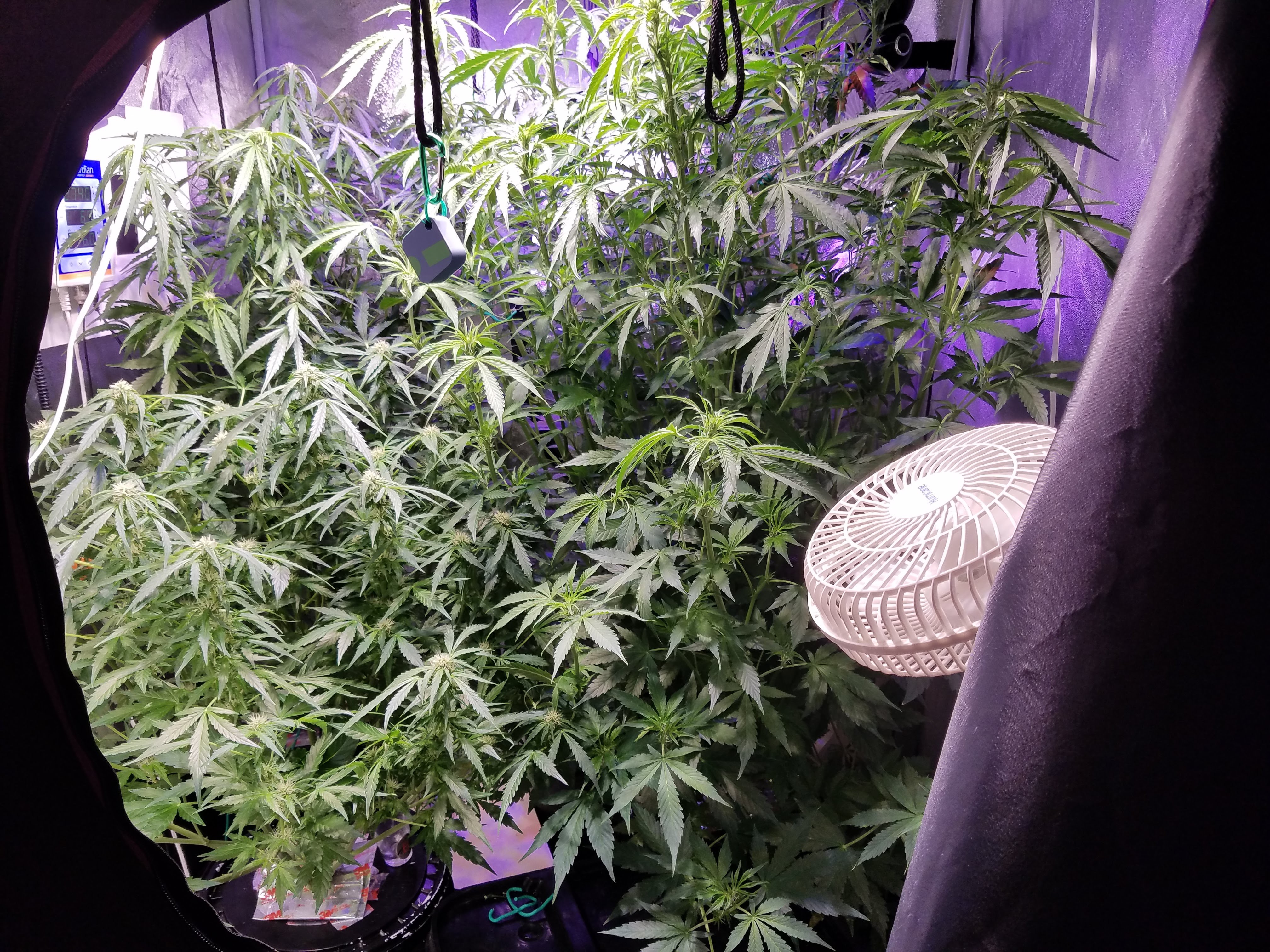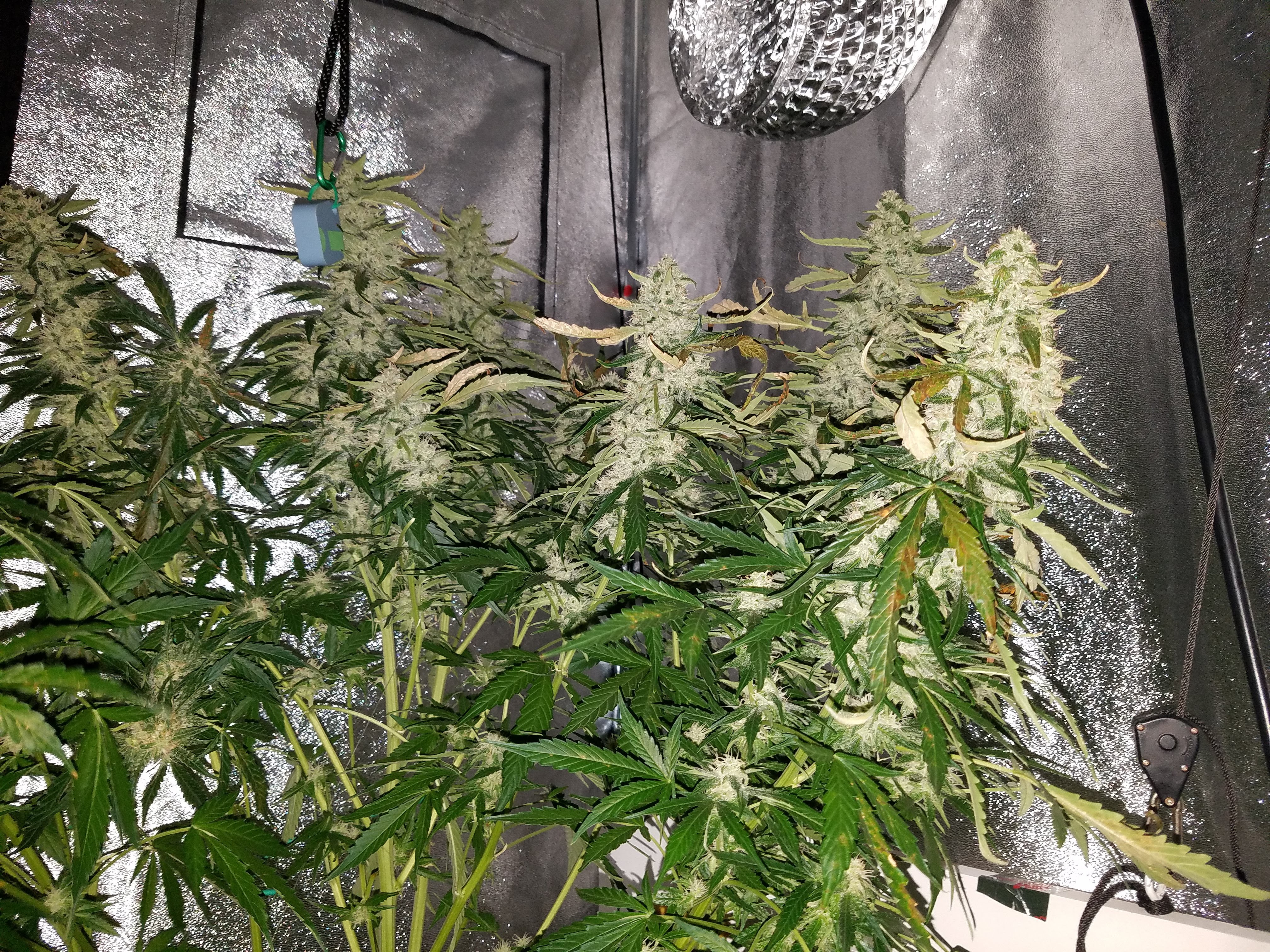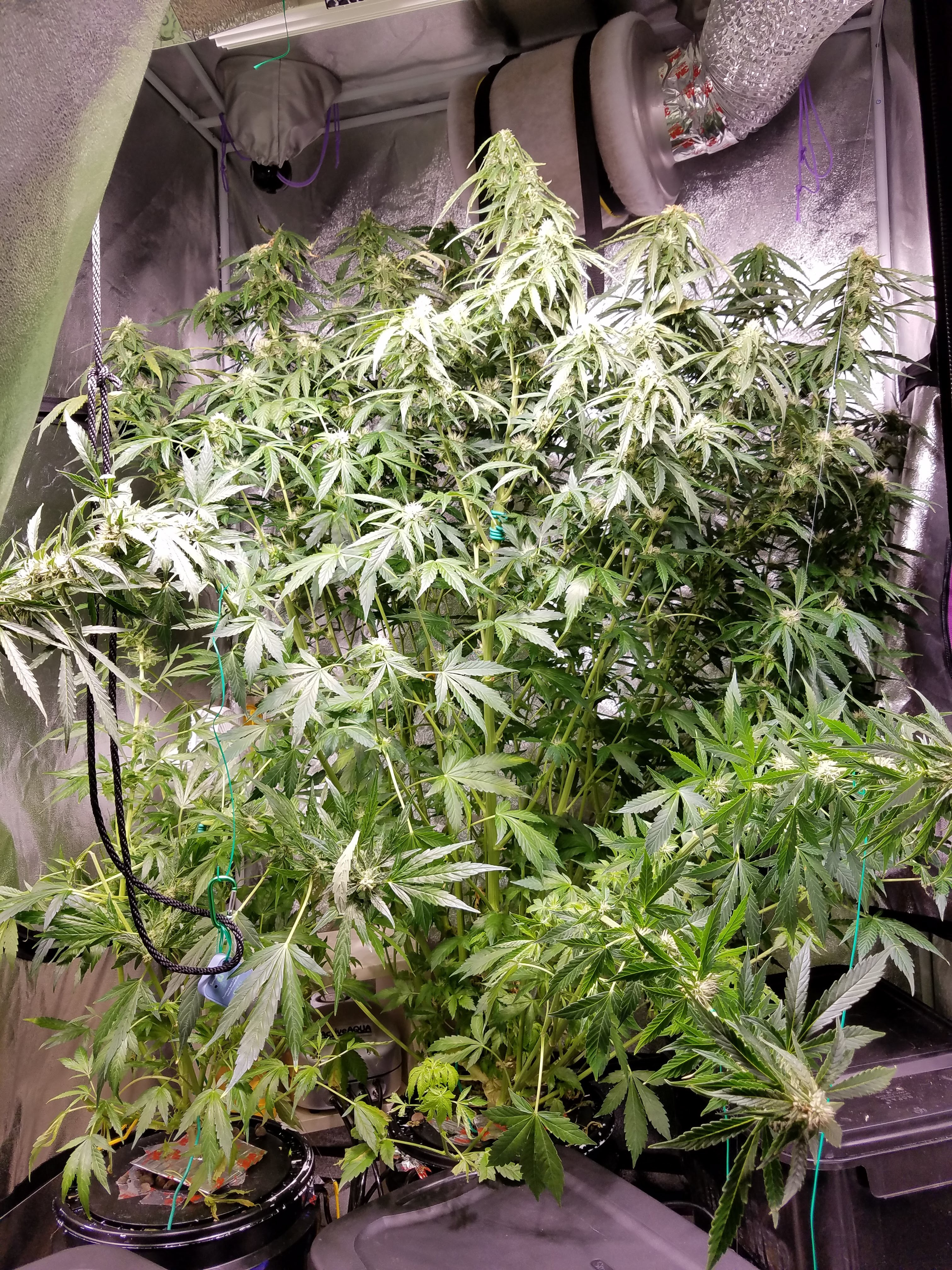 havested! well, 1/2 harvested... plants 1 and 3 were ready to go at the end of august. I let plant 2 take over the 4x4 and hit her with the dual phantoms at 85%. Heat became an issue the past week so I dropped it to 65%