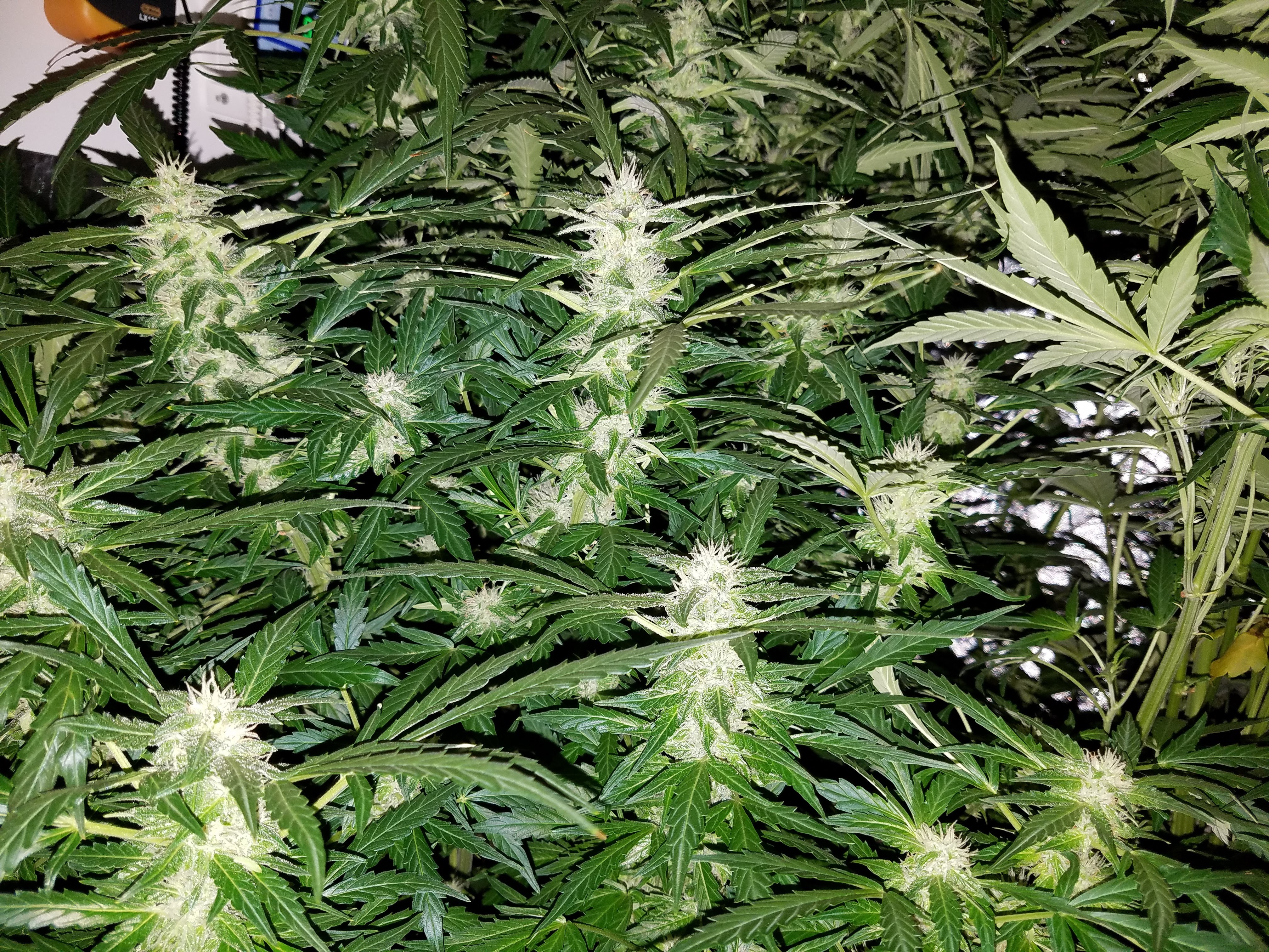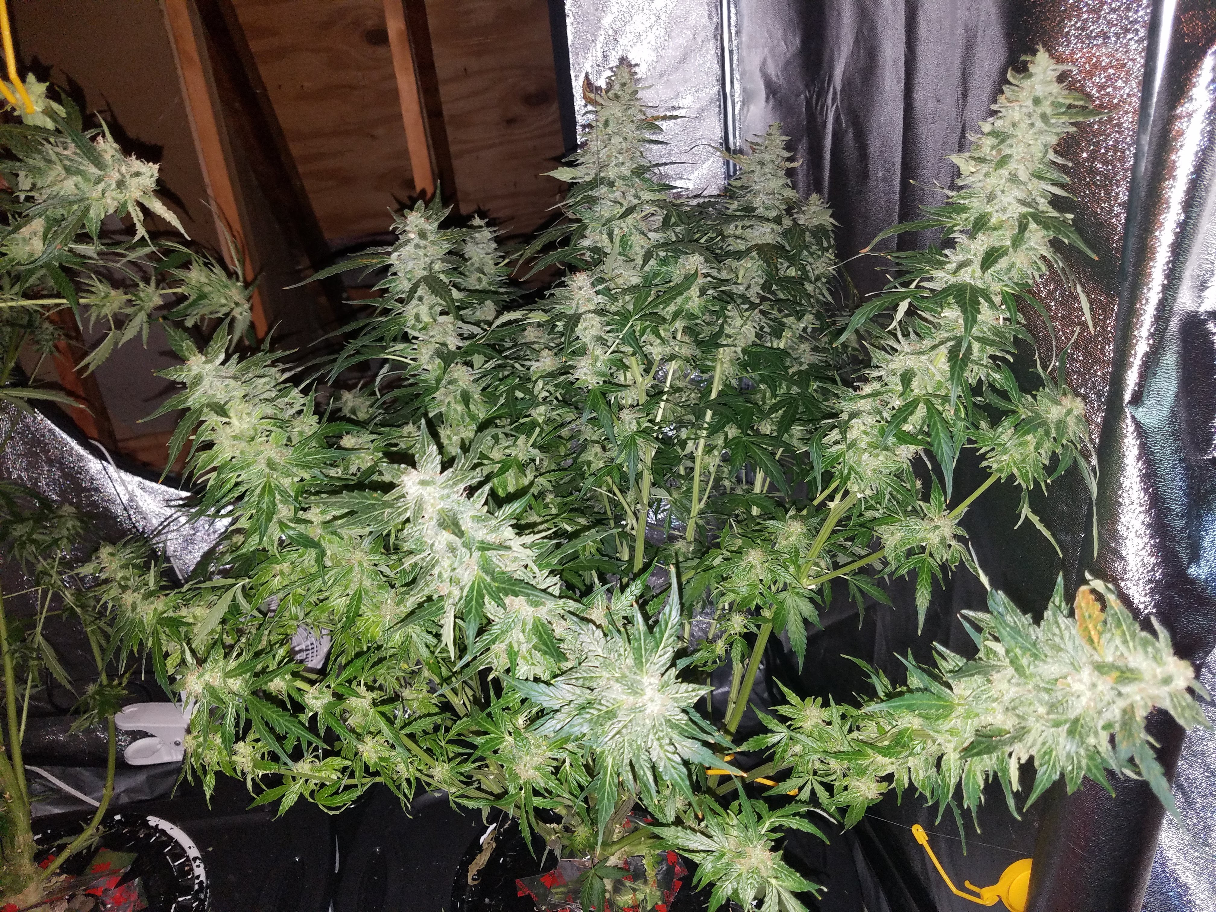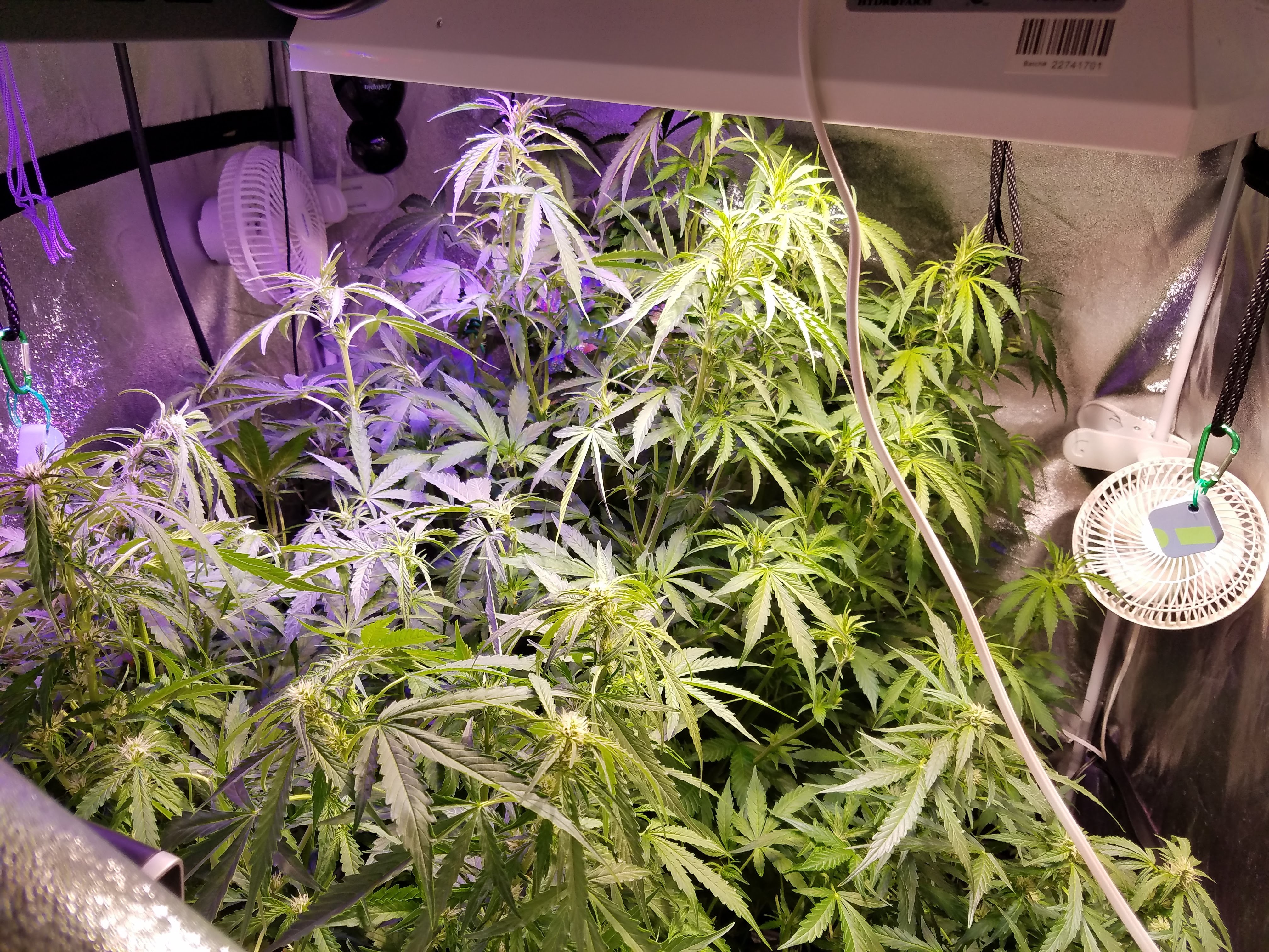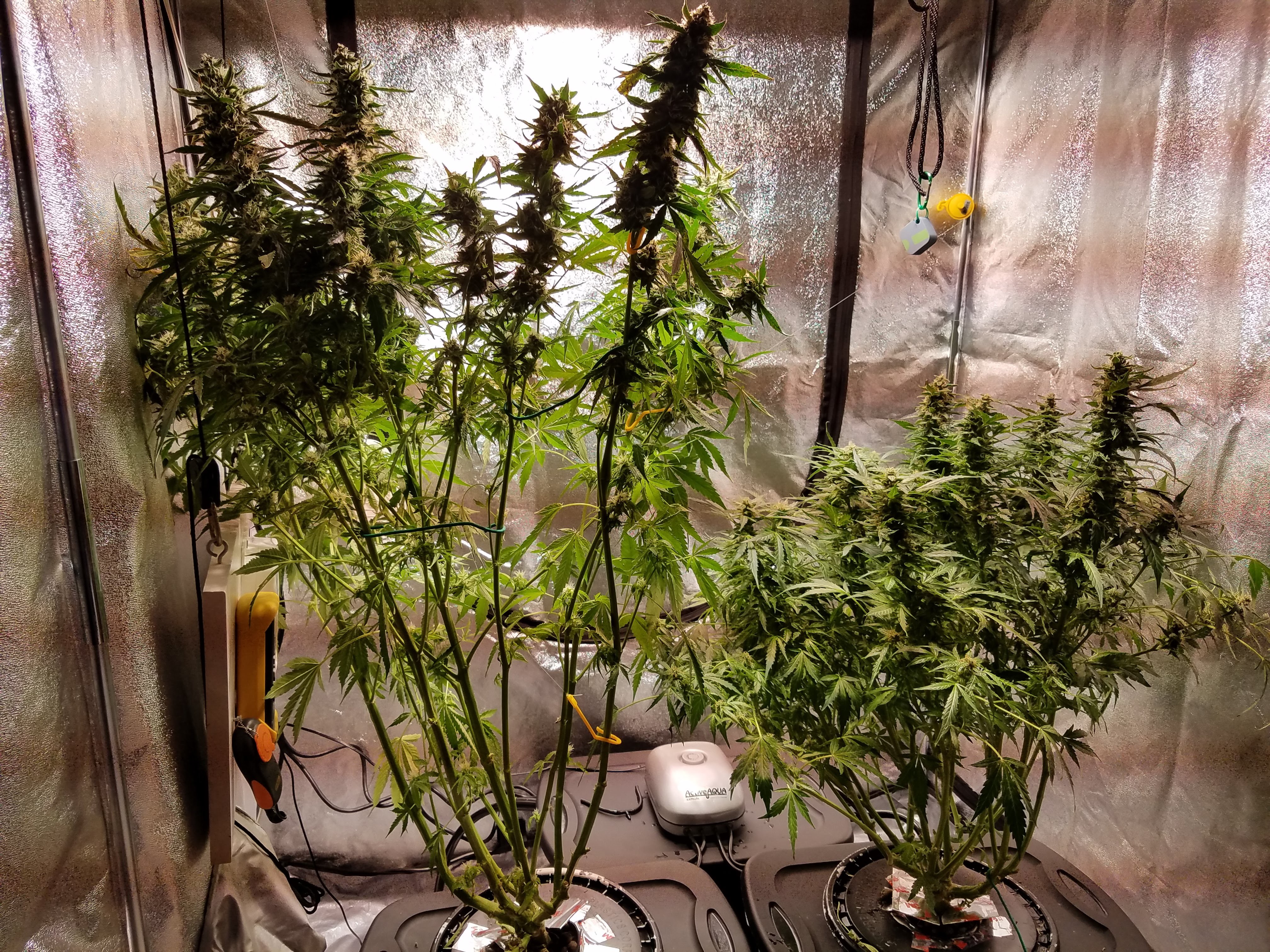 havested! well, 1/2 harvested... plants 1 and 3 were ready to go at the end of august. I let plant 2 take over the 4x4 and hit her with the dual phantoms at 85%. Heat became an issue the past week so I dropped it to 65%