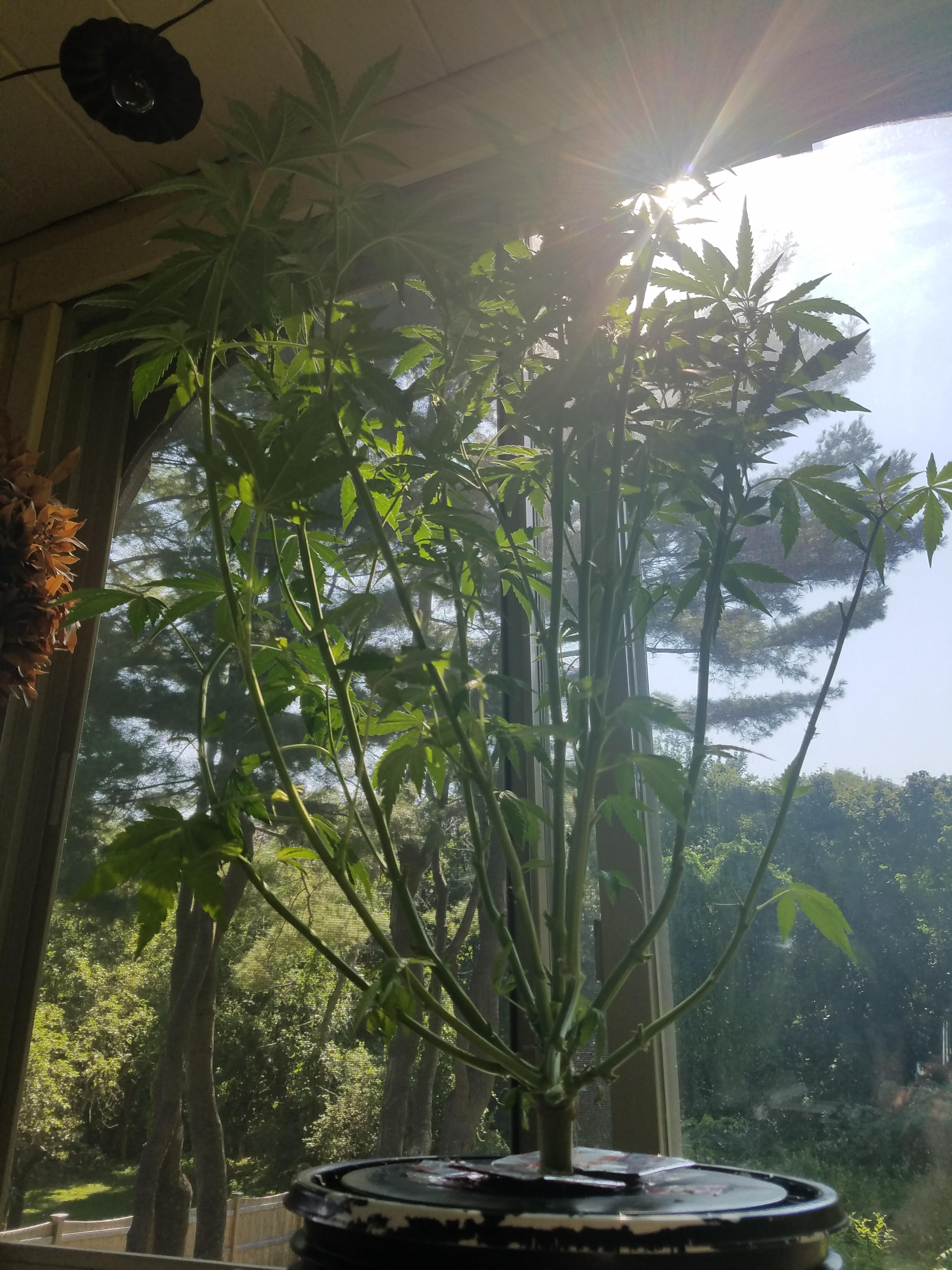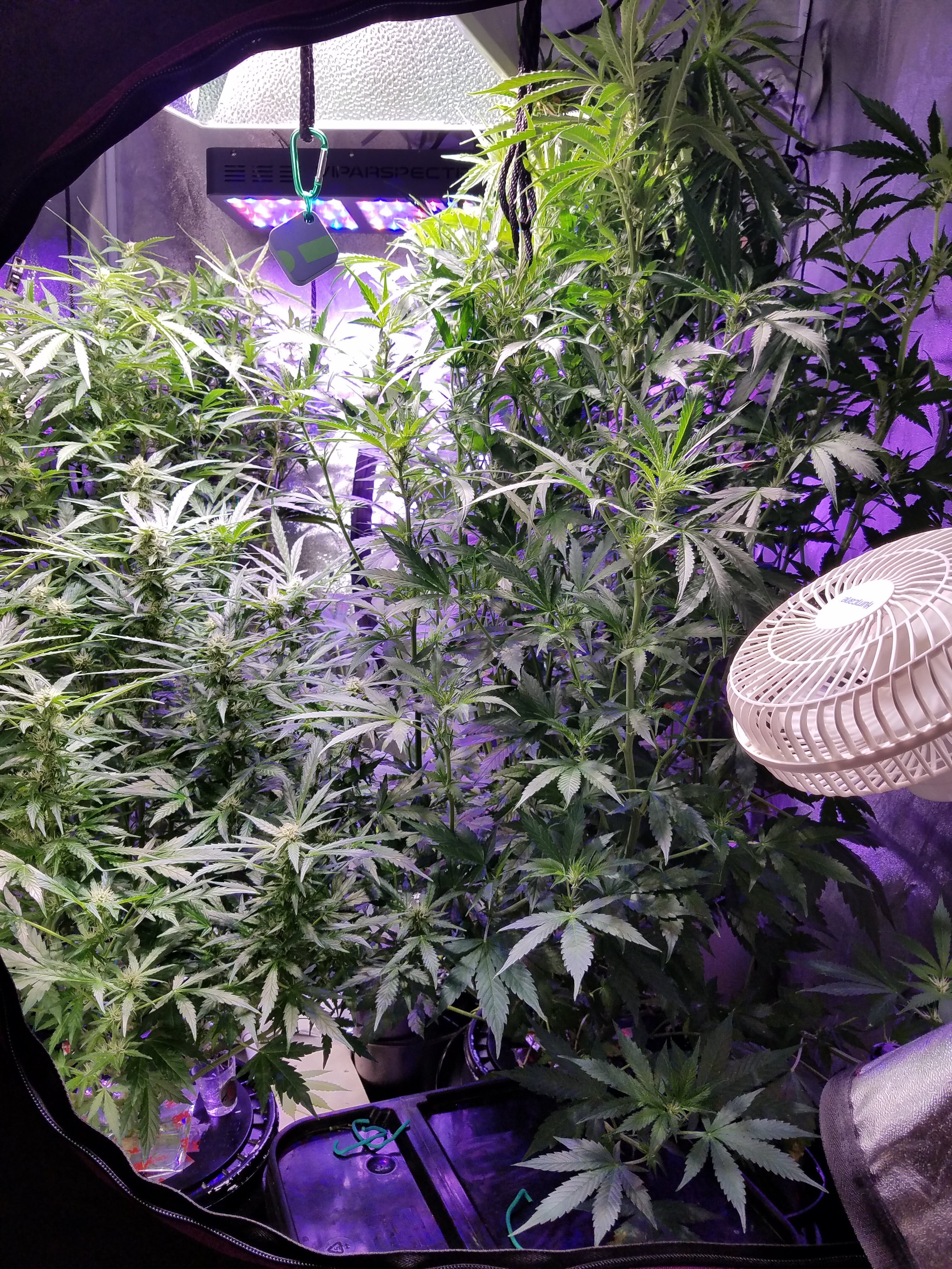 #1 and #3 are flowering out nicely. #2 doesn't realize its an auto apparently and #4 is just lucky to be hanging out. I took #5 out of the tent and moved it to the sunporch to give everyone some extra space (and to keep #2 from swallowing her up too).