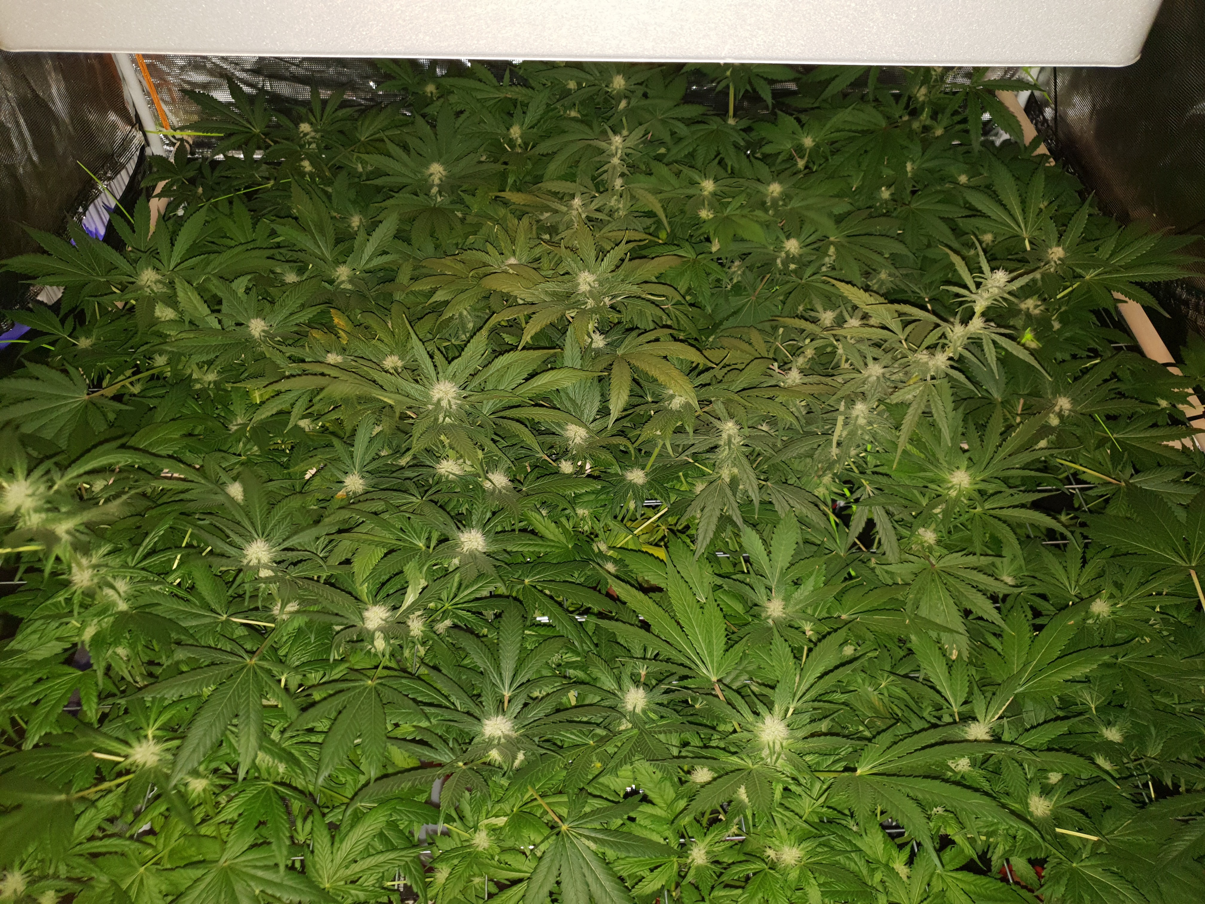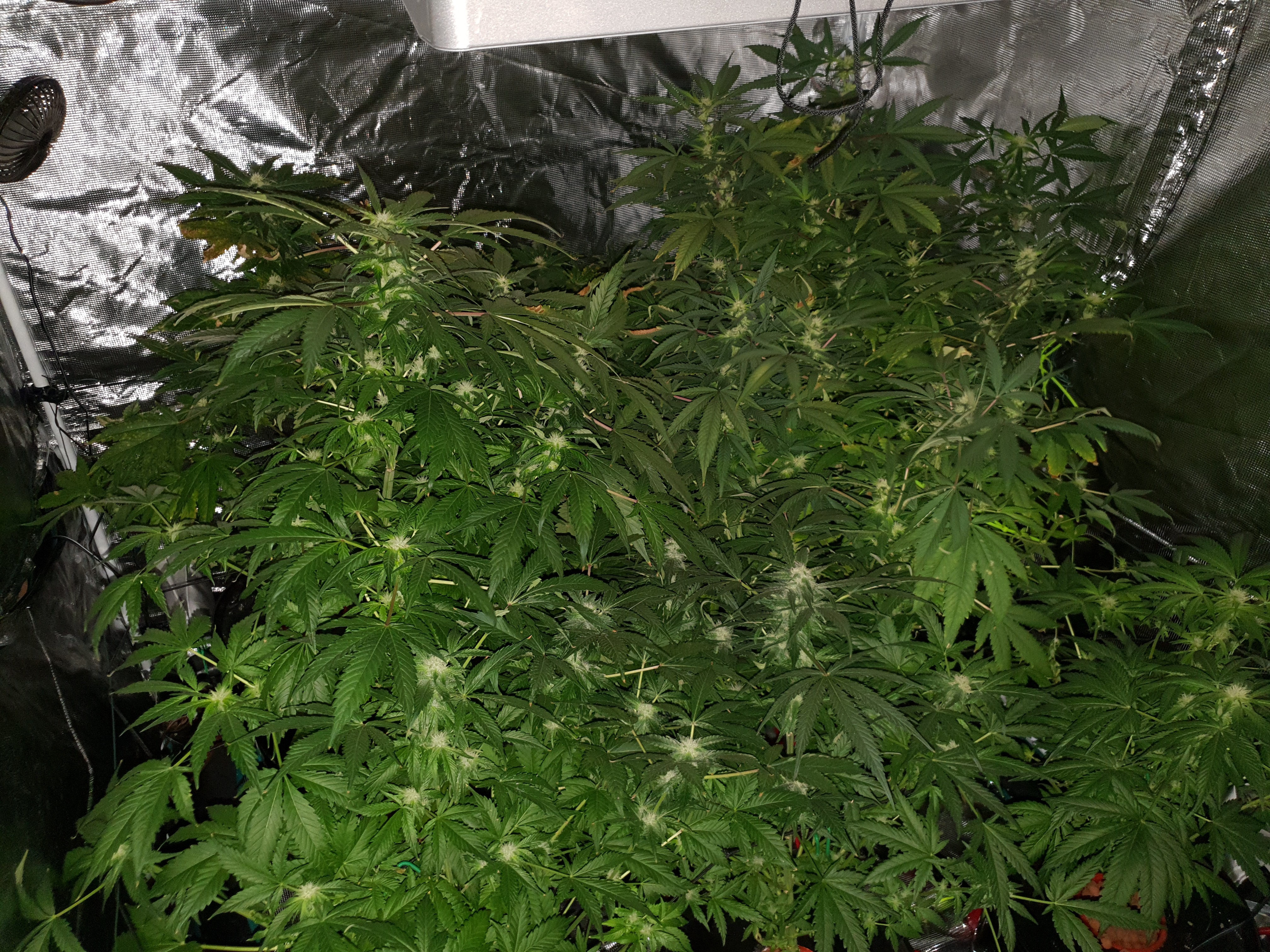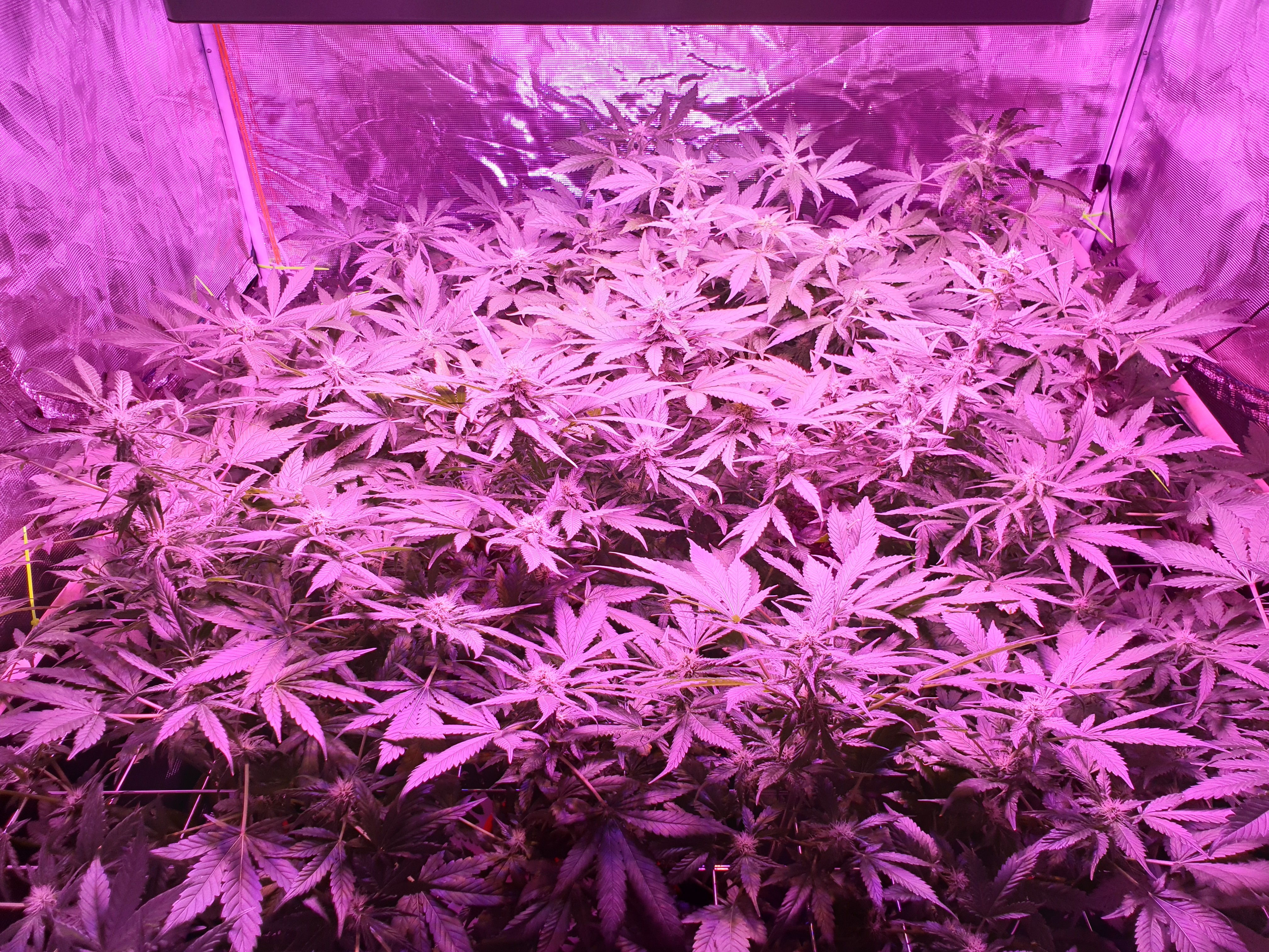 This tent still looks really healty, I have some minor stains on some of the plants in the ScrOG but I think they will recover now that I am back.