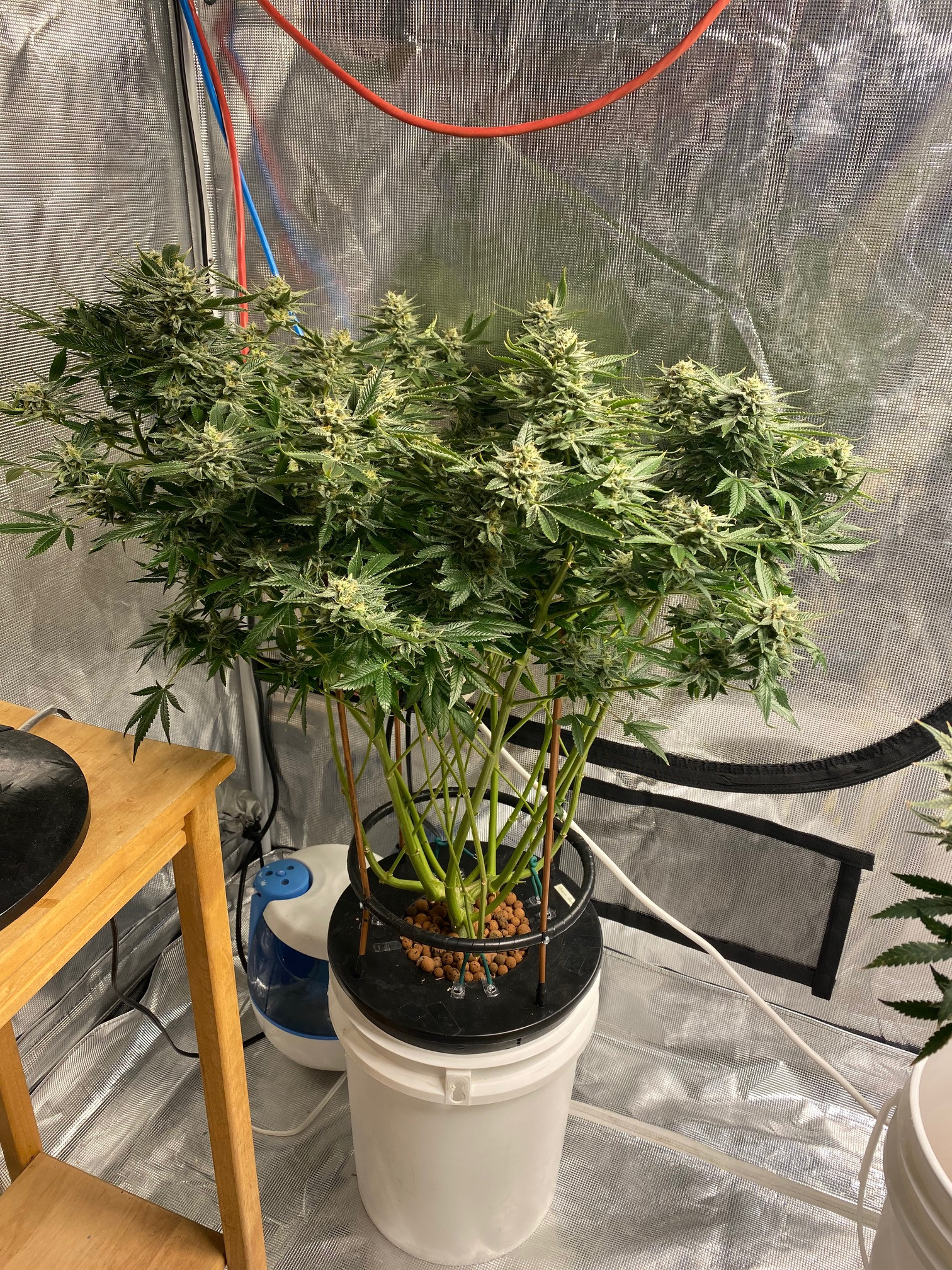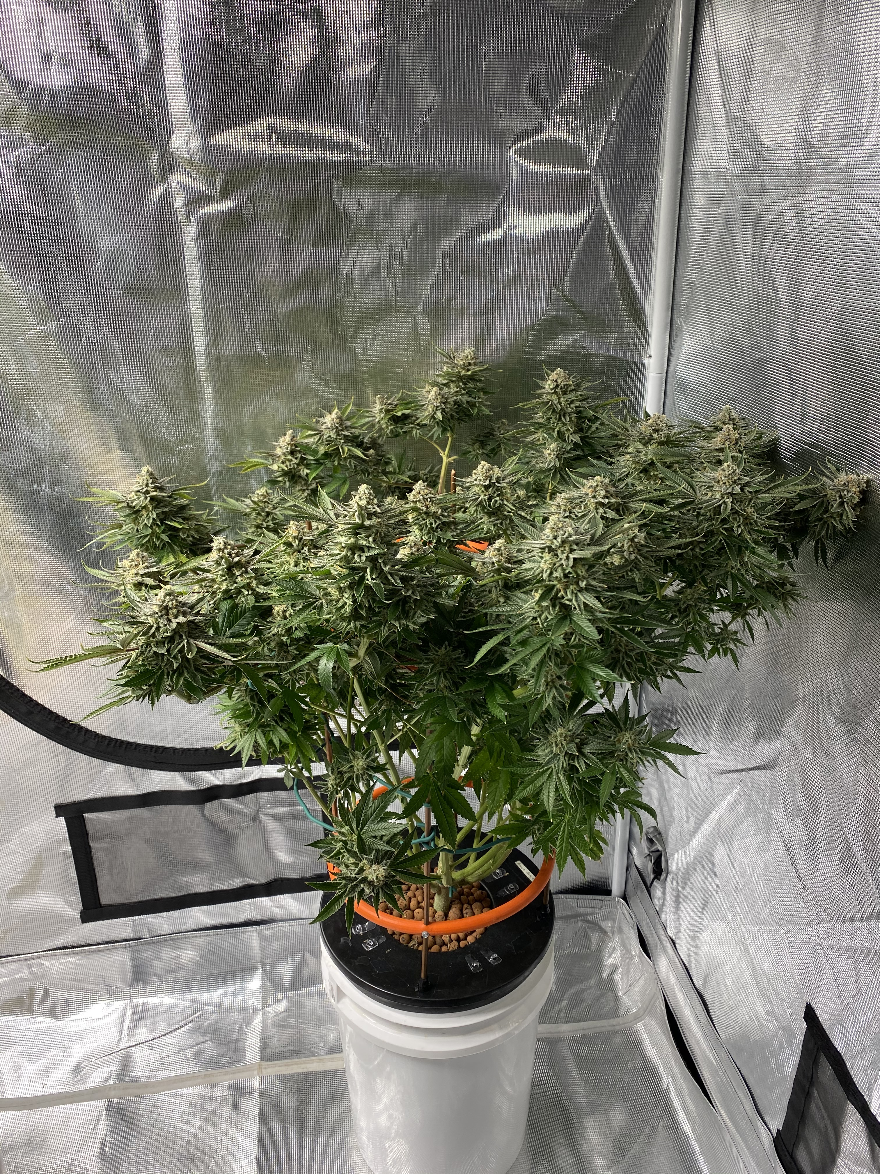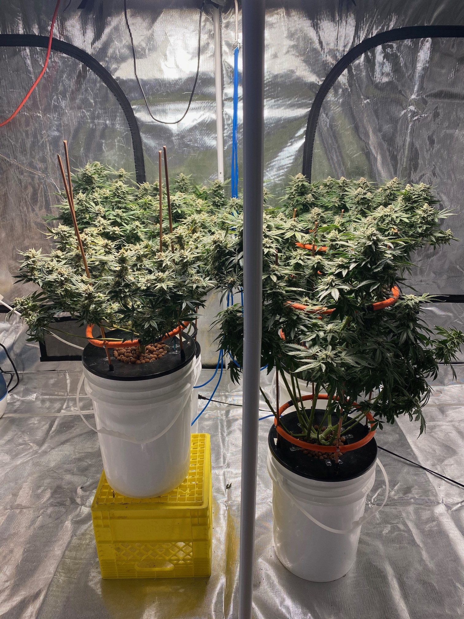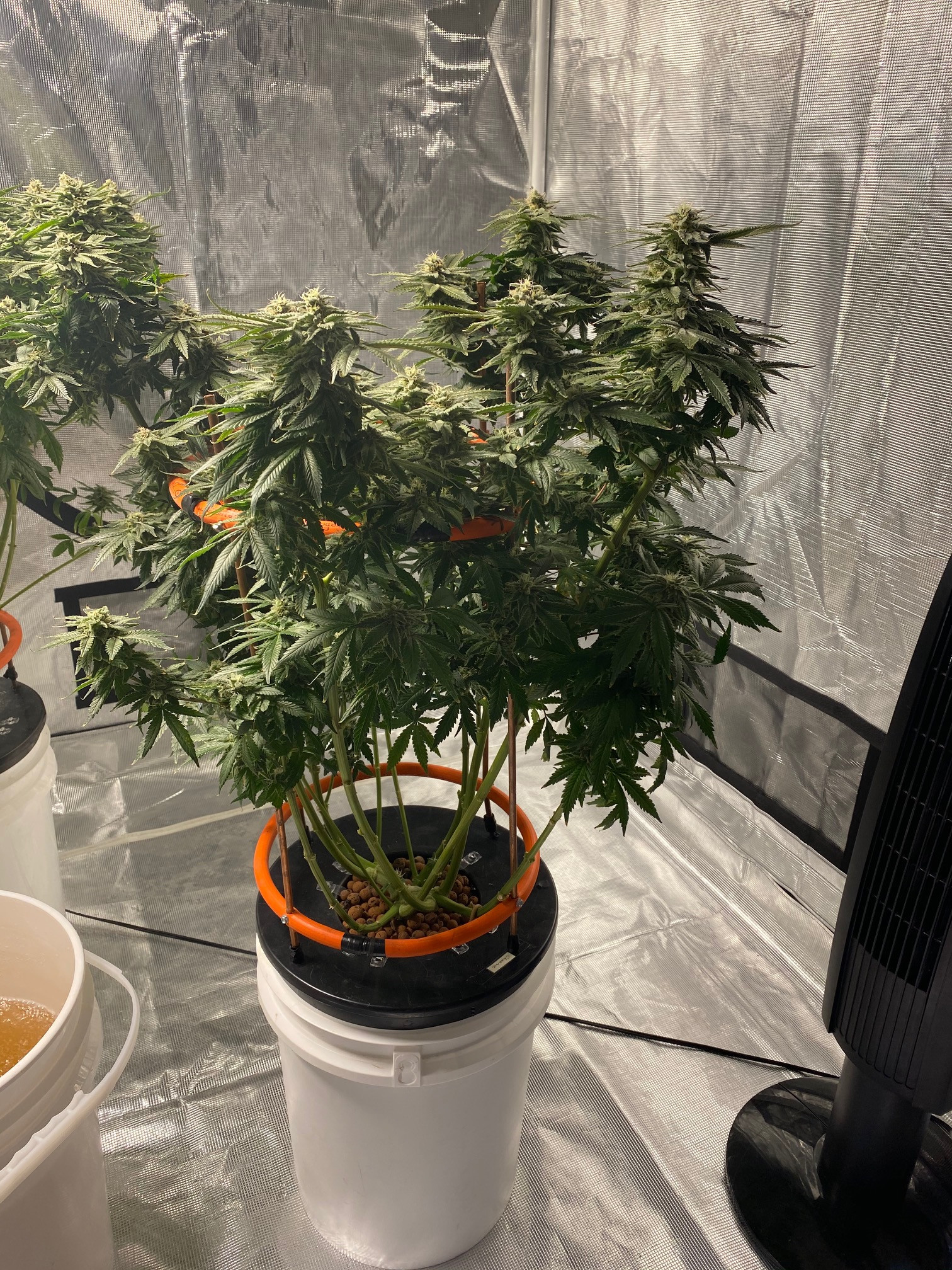 Plants got away from me a bit while on holidays, scrog didn't get filled properly so i took screens off. They not doing to bad all the same. 1 plant is a runt about 1 foot shorter than others but i have it up on a milk crate to try to keep the canopy relatively even. Few weeks away from harvest. seems like only couple of weeks ago i pulled down 19.3 oz on my last grow. Wife still on 1st Jar of 12. This crop won't be anywhere near 19 oz but should be ahead of the curve now so that's good. Wont need to purchase to supplement the grow.