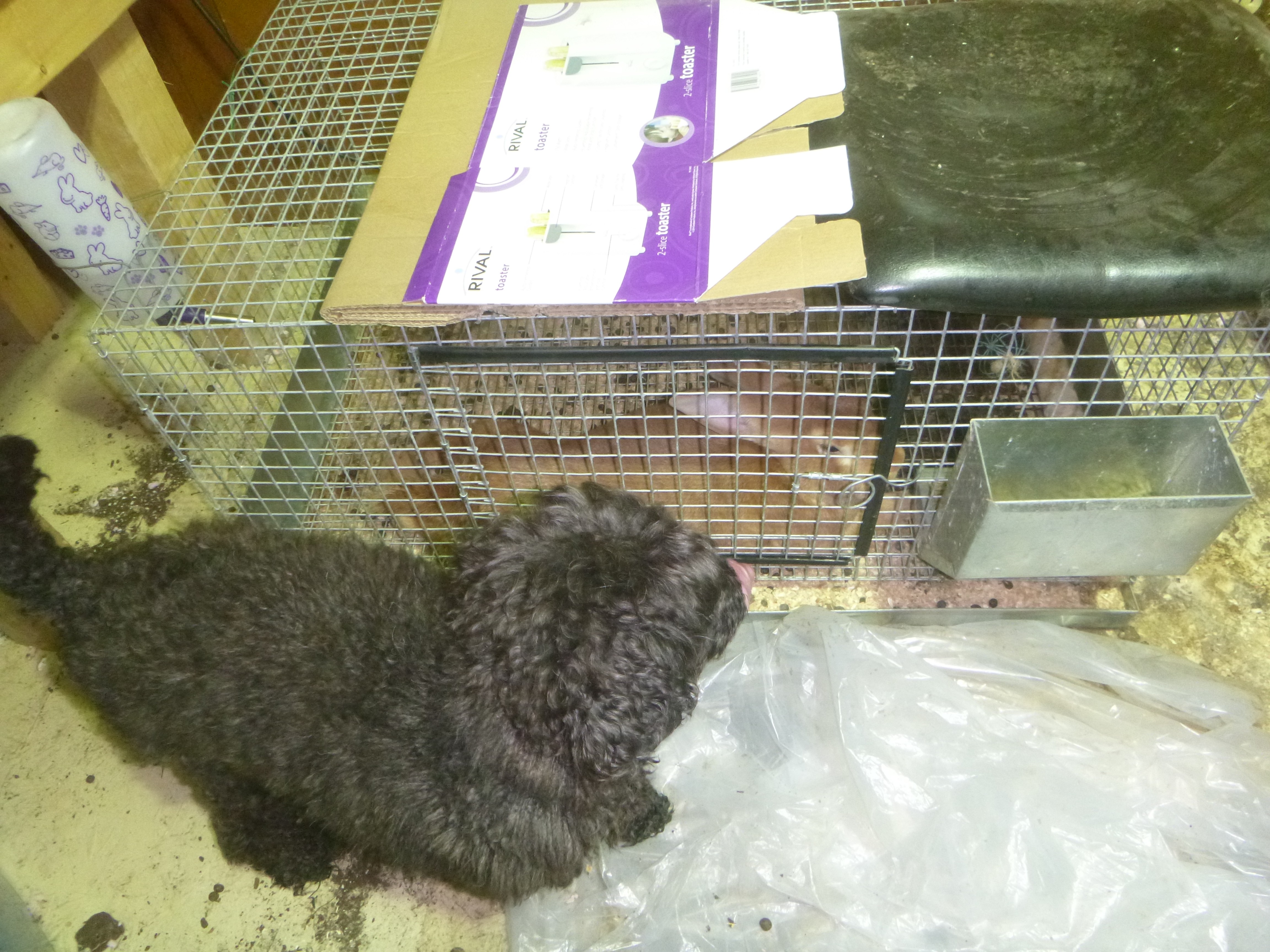 5. What's the crap in the pots? It's poop and hair from Ginger Snaps. He, and his offspring, have contributed to my organic gardening for several years now, though we're just down to Snaps now. Here's a pic (he's the one in the cage, not the one licking her chops):