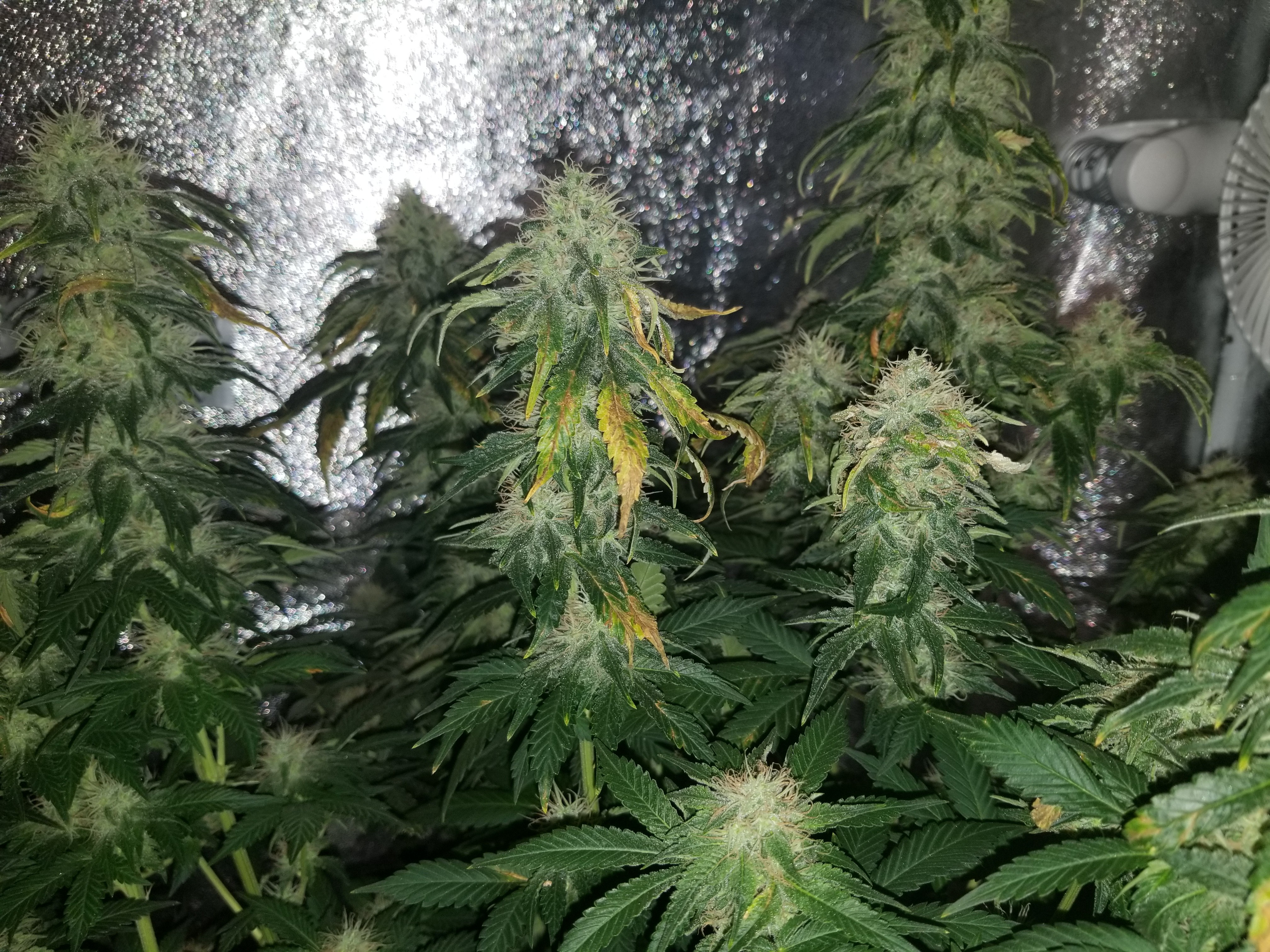 (and no, I haven't ever measured EC; your post was the first I'd ever heard of it!) The "new" features in this grow were switching from 2x 300w LEDs to 1x 400w MH/HPS light and from alternating nuted and plain water to just nuted water; I've been using this same nutrient schedule all along and never had this happen, and it's only happening on one plant, even though they're both planted in the same coco and watered with the same water. I'm looking around the site, and I totally can't find the schedule I'm using; maybe I got it from some other Google search - would you be able to point me to a better one than my current one? And regarding FloraKleen, if I get it, what do I DO with it/is this fixable this late in the flowering stage?