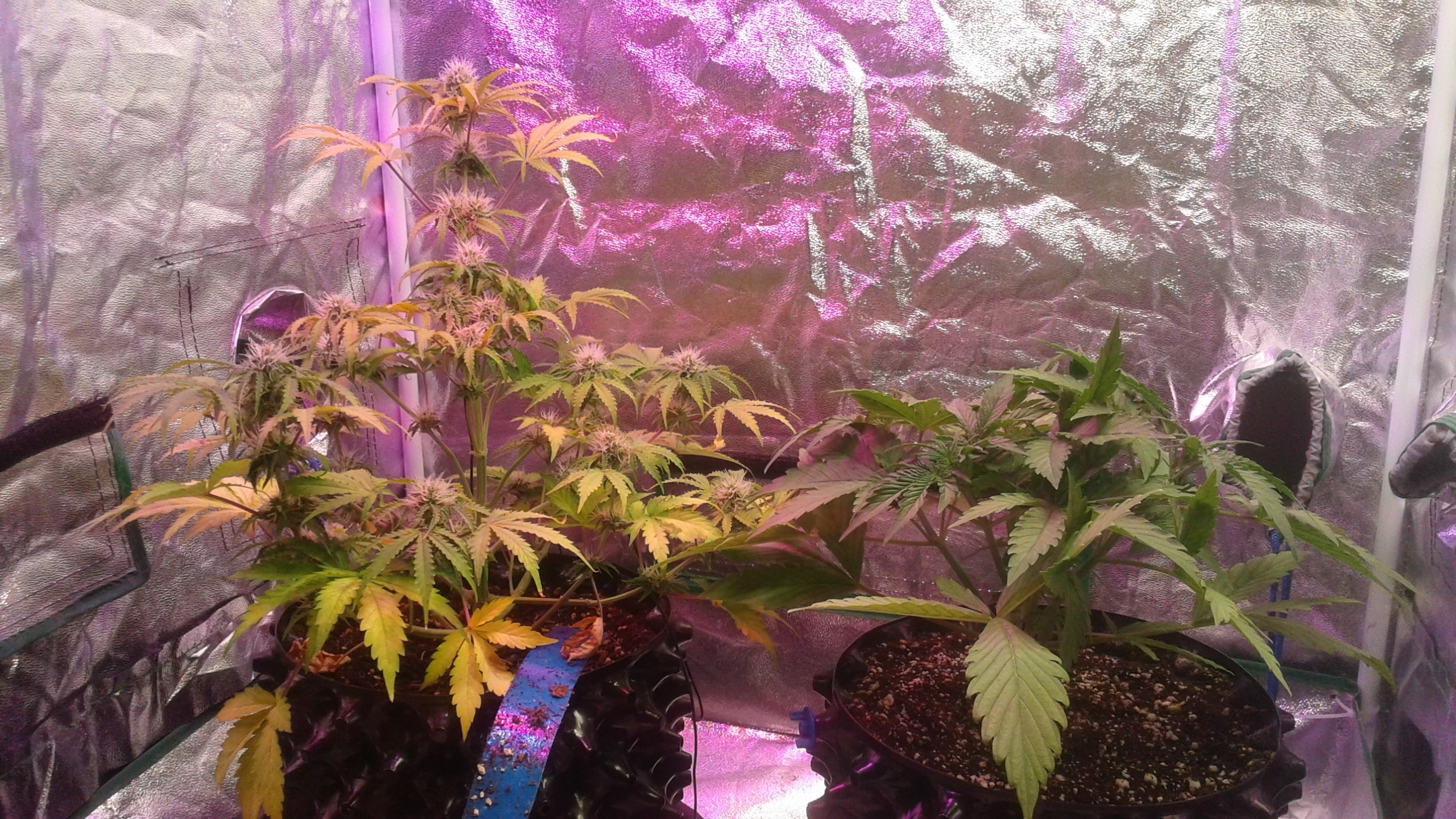 Thanks guys the bottom one was a runt that got dug out of the trash as a seedling...the tap root was broken off when someone spilled the pot. She stopped growing at 14inches so I just put it on 12/12 to see what would happen.