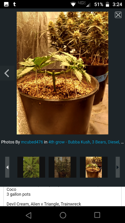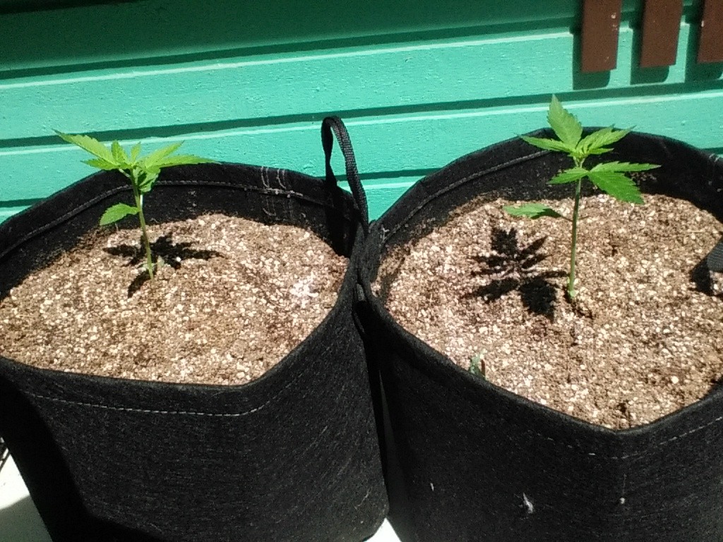 These are mine, black pot is 5 gallon, orange pot is 3 gallon. Photos taken today, they were placed in those pots yesterday. The plant in black pot is the one everyone thinks it self topped itself... On a side note.. my mutant plant, well, I kinda planted that at first into re used soil...I had some soil in a pot from my northern lights that had just been harvested, I was feeling lazy and scooped my 2 4 inch pots from that 3 gallon pot.