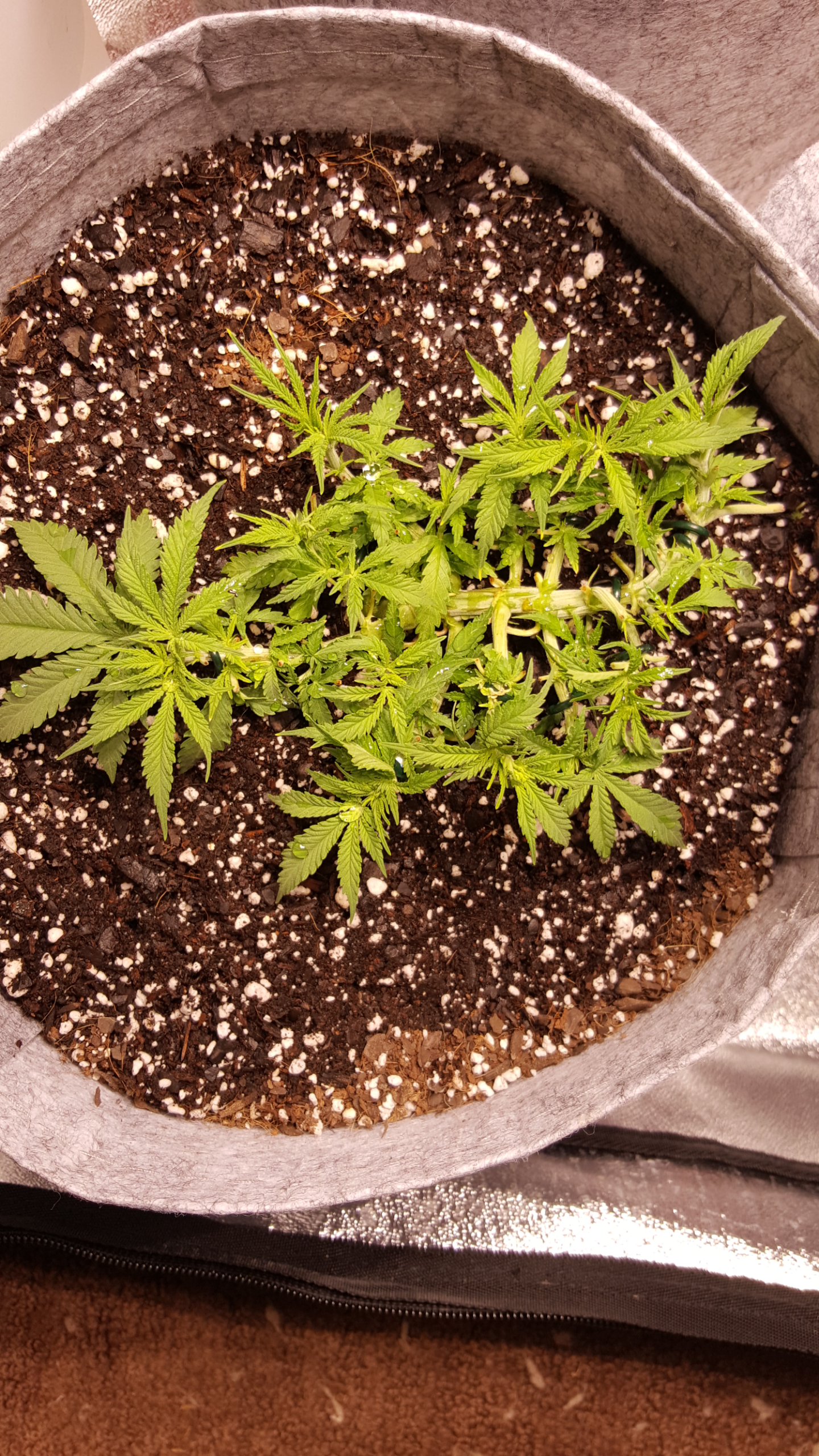 This is a kush blend...she is getting super think with growth in the middle...constantly binding and redirecting each shoot to try and completely fill top of pot....I will probly do some major lollipoping on this one at the flip..maybe...I'm not a huge fan of that but I just might have to...