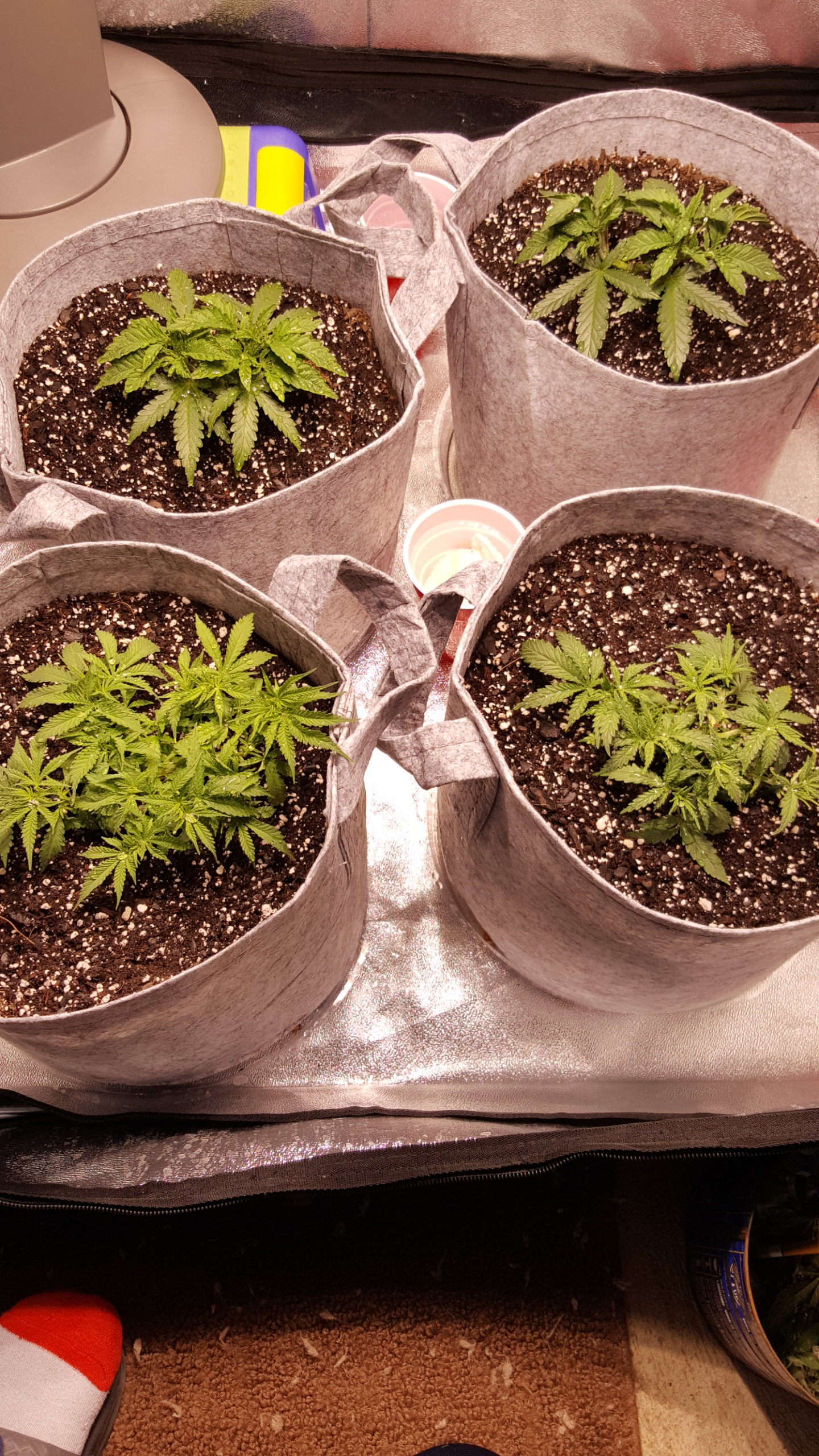 ​​​​​​Did some fan cutting and binding on all of them...you will notice I Fucked up one of my ladies trunk line...accidentally broke one side off and it pissed me off so much I leaned in and broke off the other one just to spite her...DAMN!! Oh well just going to wrap those two ends around pot...should be a cool grow none the less...I'm not going to do 16 mains on the other one...changed my mind again...just going to keep binding her and end up with more than 16 tops...without future adieu....