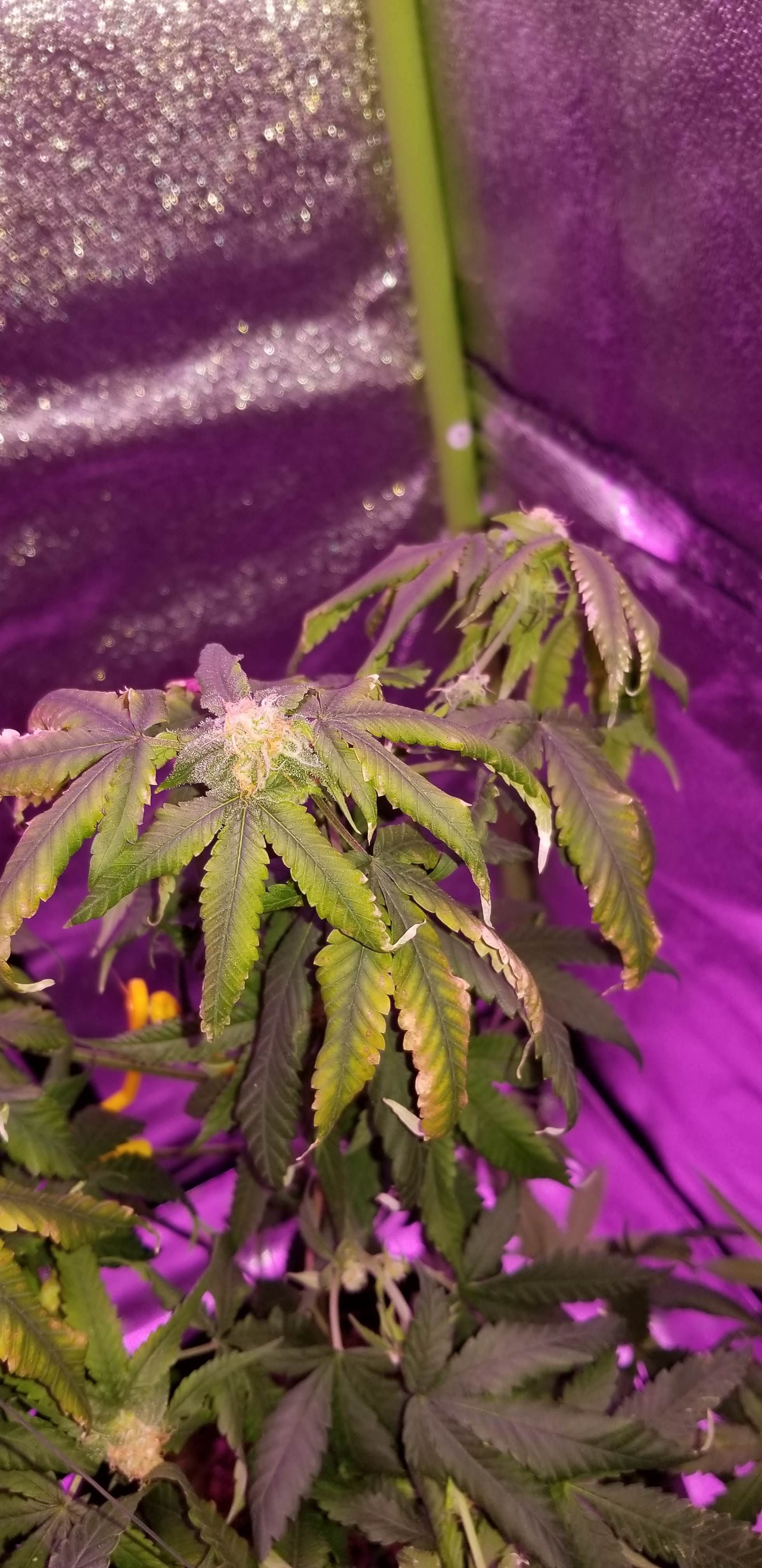 Indoor Tent: 3x3x6 with oscillating fan and carbon filter, temp 75-77 degrees