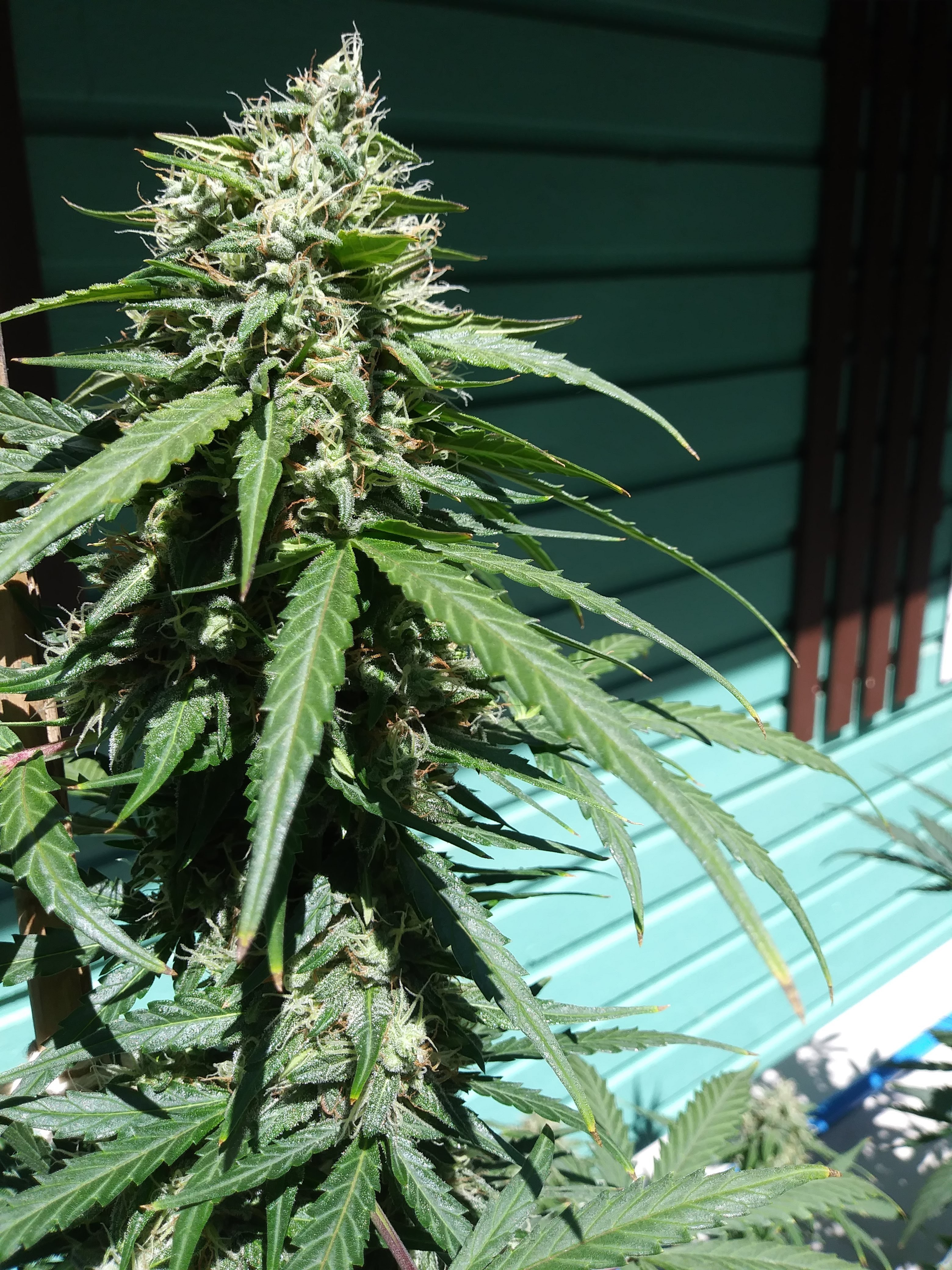 Smallest is Super Lemon Haze - 1-1 THC - CBD 21 inches tall. Her trichomes on in the cloudy some amber stage, so sometime next week or so.