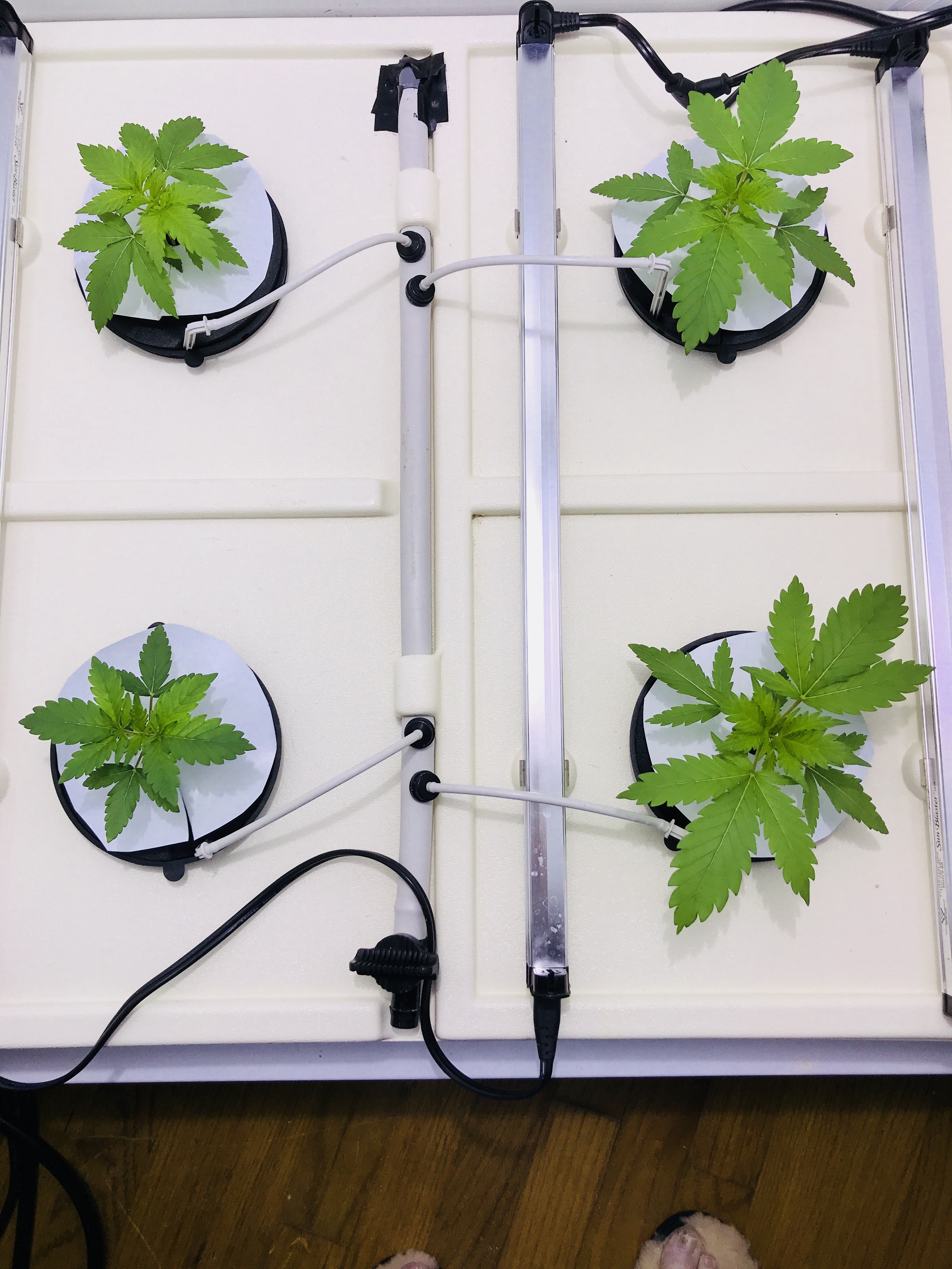 They have grown vigorously this week: I upped the nutes from 16ml to 25ml (25 liters H2O in reservoir). This is way below what Adv. Nutes recommends, but there are only four plants feeding. Res change this coming Saturday: I will bump them up to 35 and see how they like that. They are working on their fourth and tiny fifth set of leaves.
