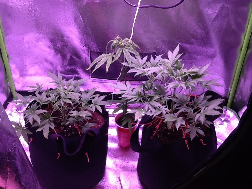 CannablissBlazed227D.A.A.S.69 So, as a early update thanks to you guys. We’re back on track. I did however take a bunch of fan leaves off yesterday. I only took the ones where the new growth was 3+”. They were struggling for light anyway. In two weeks or so I’ll be able to do more. I also switched positions of the girls because of the 9” fan. Later today I’m going to put the fan in a more perminant position. I need help with that since I can’t reach the top of my tent to tie the hangers. I was accidentally posting on someone else’s thread. Duh. The light has been raised to 18-3/4” above the highest growth. There hasn’t been any bleaching, but the guys had me do it preemptively. I love this forum and all the help I’ve had from all the growers here. I’m learning so much about indoor growing. This give me peace of mind every day when I’m able to come in and nurture my girls and talk to them and see how well they’ve been doing. Well, until I post on Wednesday. I may have the exhaust put in by then. They’re starting to smell a little skunky....lol. Also, I’ve been cracking the door into the room to let the cool air in. It’s staying around 75.3 Photos