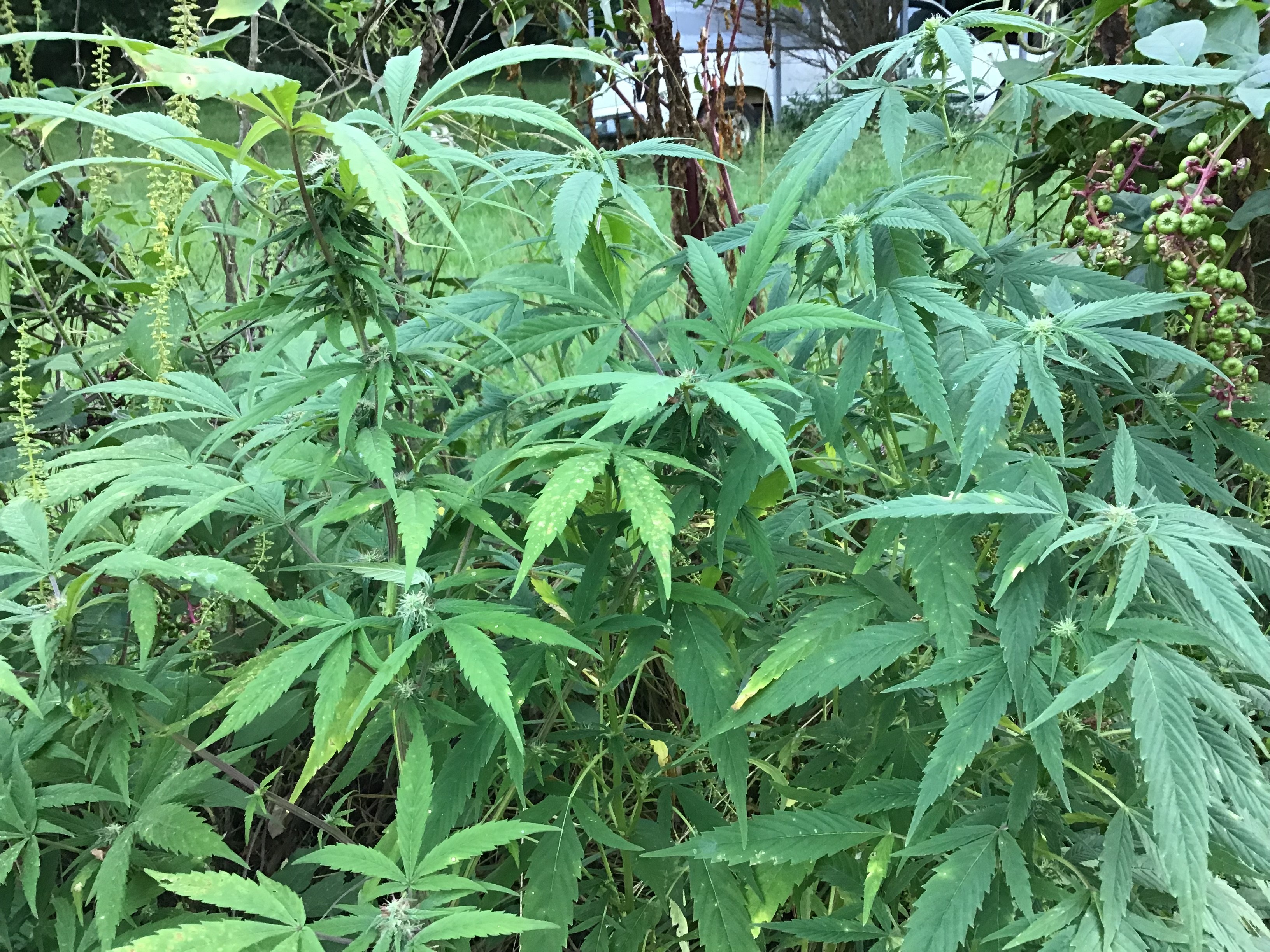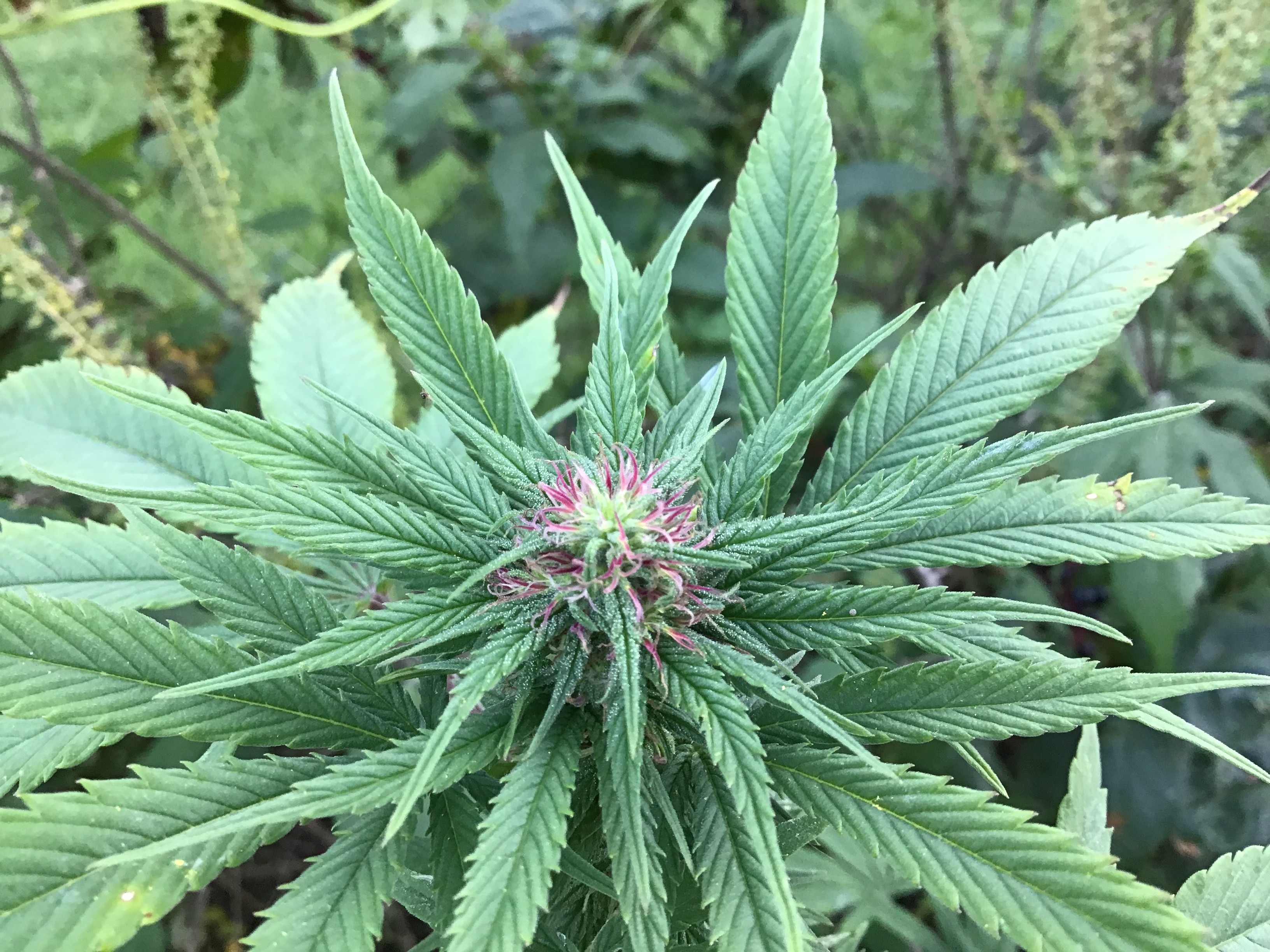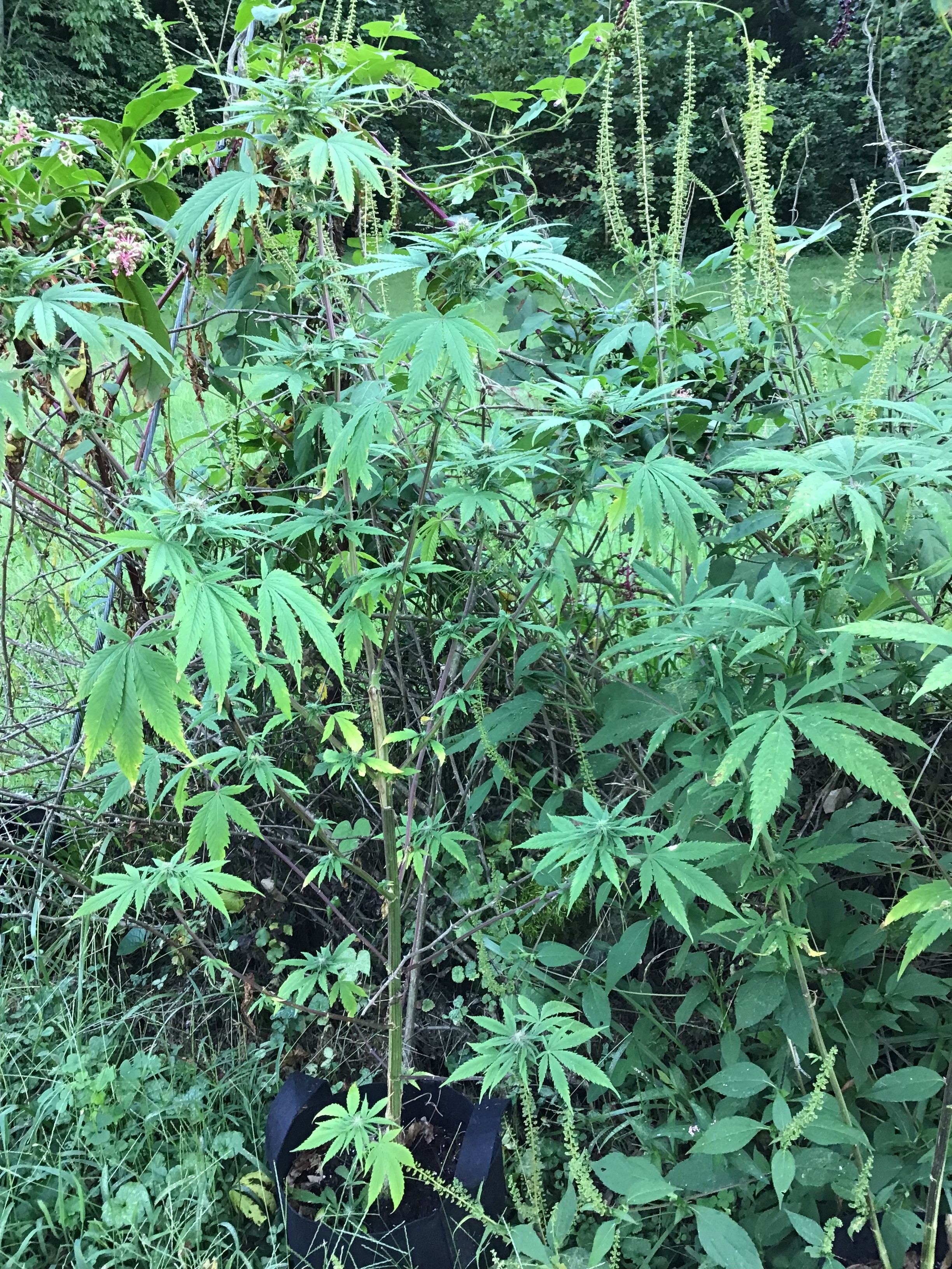 Yeah, so it's the outsiders I'm uploading atm....I went out to see some nice buds starting. All of them are covered. They were started indoors May 21st and was in the tent for a month. I have to address the fungi today. I did the LST on Topsy early this am, so I'll upload their pix later today around 4 or so. I'm not complaining on the outdoor ones since they were just random seeds. 4 out of 23 were female. Good news too...I ordered a new iPad on rush delivery, so pix will improve. See you all in 4-5 hrs✌🏼️
