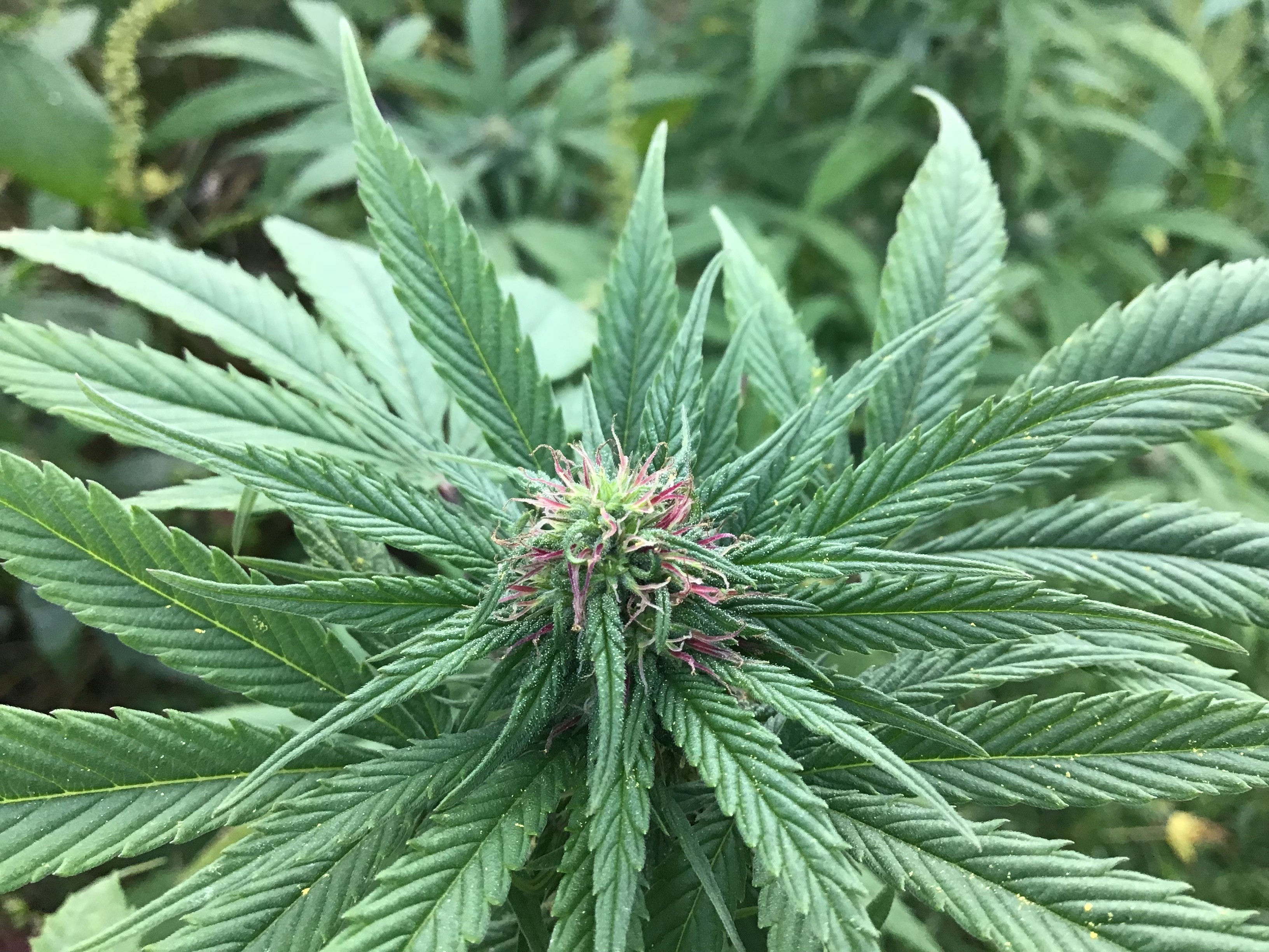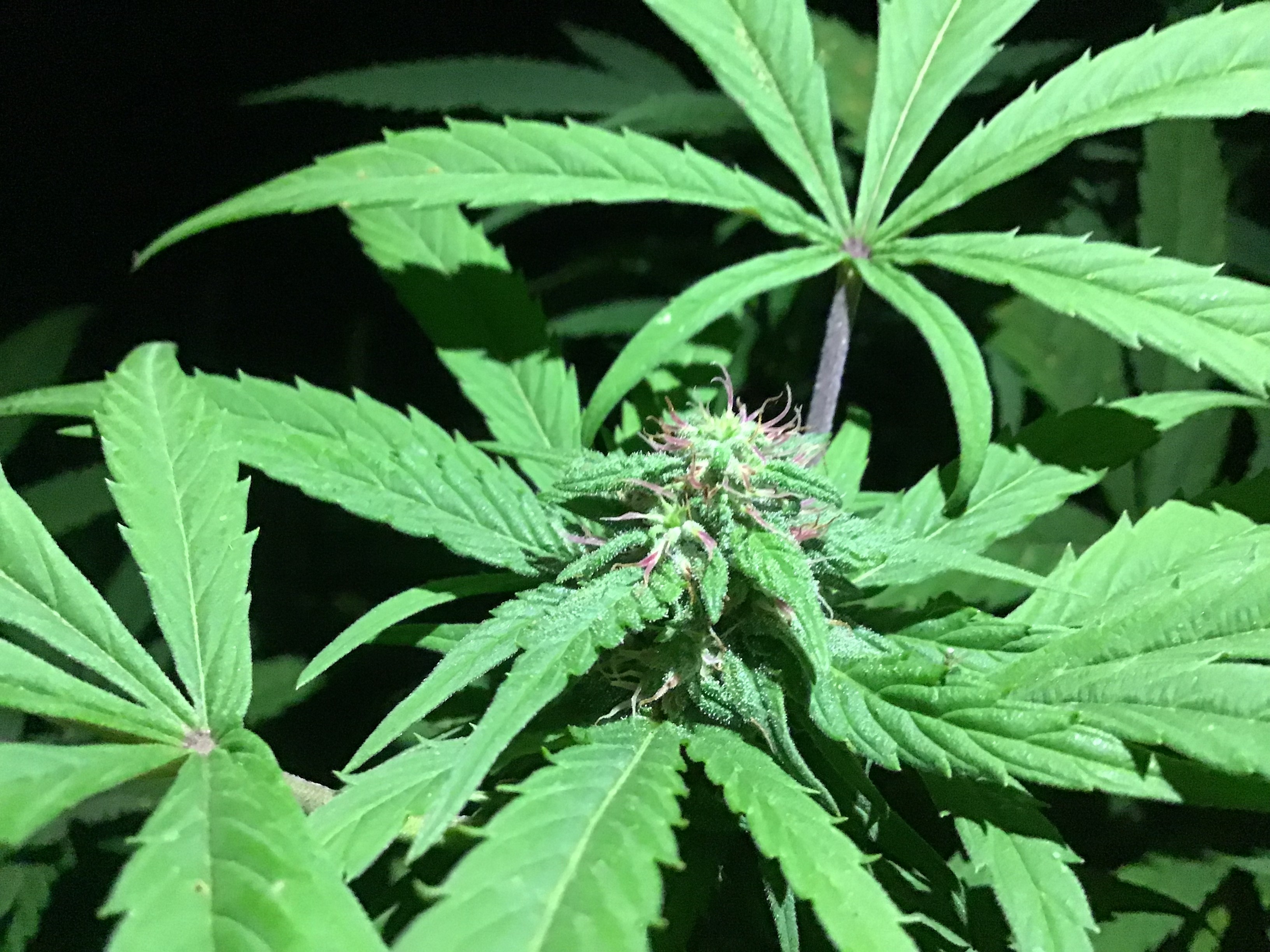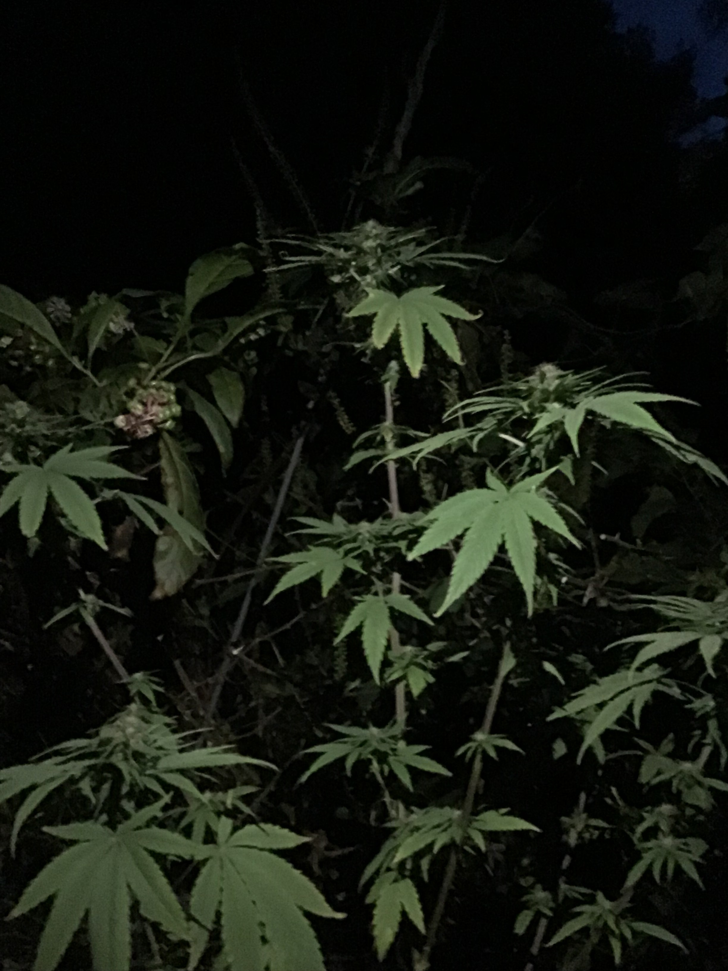 Can’t help but to post these, but I decided to let my friend know about my grow. He has a light on his phone, so we took a couple pix. I needed to chop a nearby weed and he was able to swing the machete. I’m so looking forward to seeing how they all turn out. They are averaging about 3” colas right now. Enjoy✌🏻