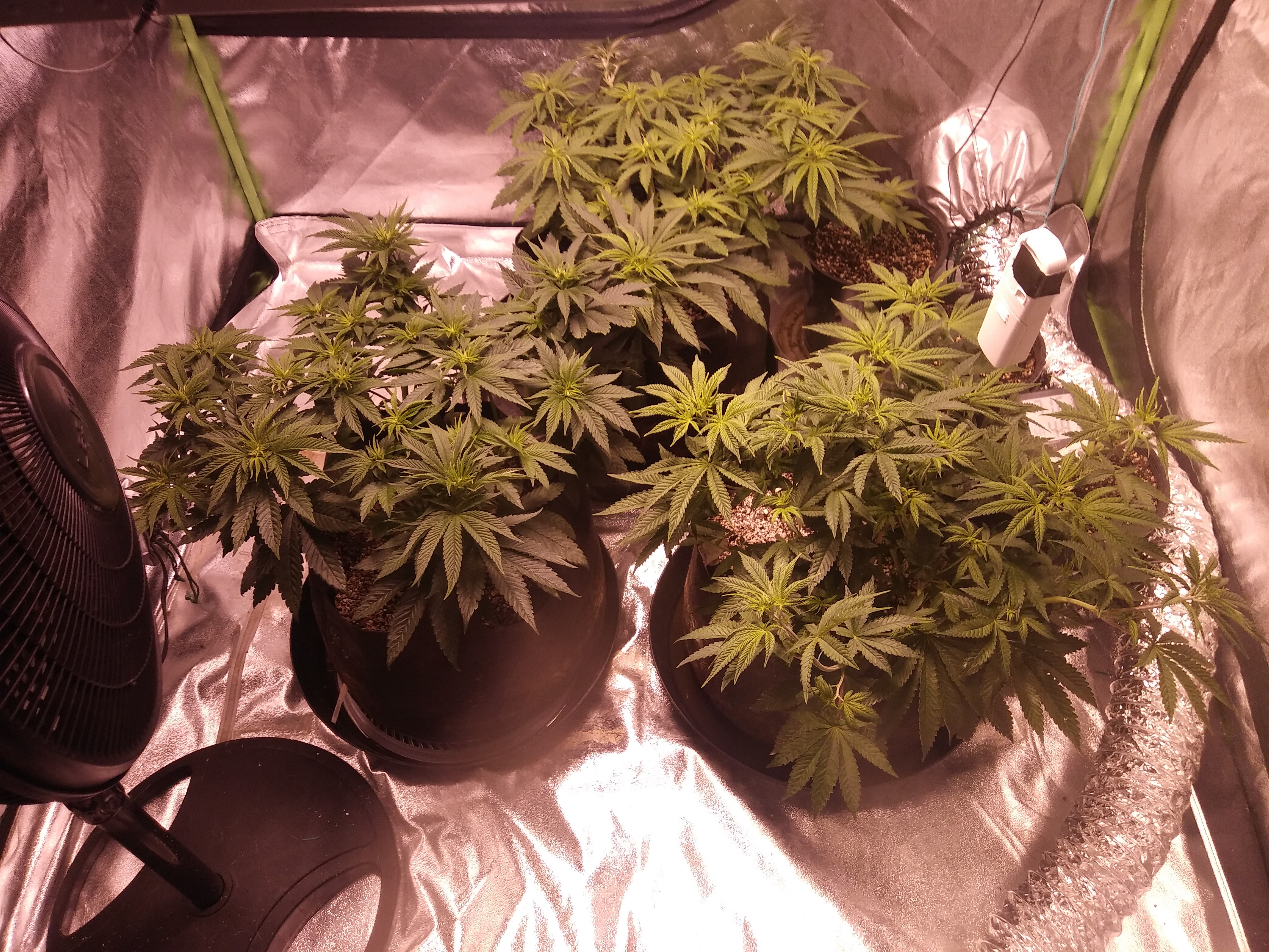 12 days till flip and they're no where near ready imo. But maybe we'll see some good growth between now and then. If the date wasn't set I'd probably let them go in veg till the end of the month and flip in beginning of October. My soil mix may have been a little much for the first couple weeks, I think they're not as big or full as most photos I've grown. And that's the only thing I can think of. Maybe warm lights off temps are hindering growth. But the dgth have made things a little better and it will be the only strain I'll be able to compare the extended dark period with 😠 😥 😢. This challenge has become a fiasco for me... I vote do over lmao. I'm forced to take a different path and am really bummed I can't grow gc beside everyone else... It's the strain that really caught my eye to join. Oh well 💩 happens I guess. Here's the misfits, the dgth will stay in this tent while autos finish in another. 🍻 ✌ 💘