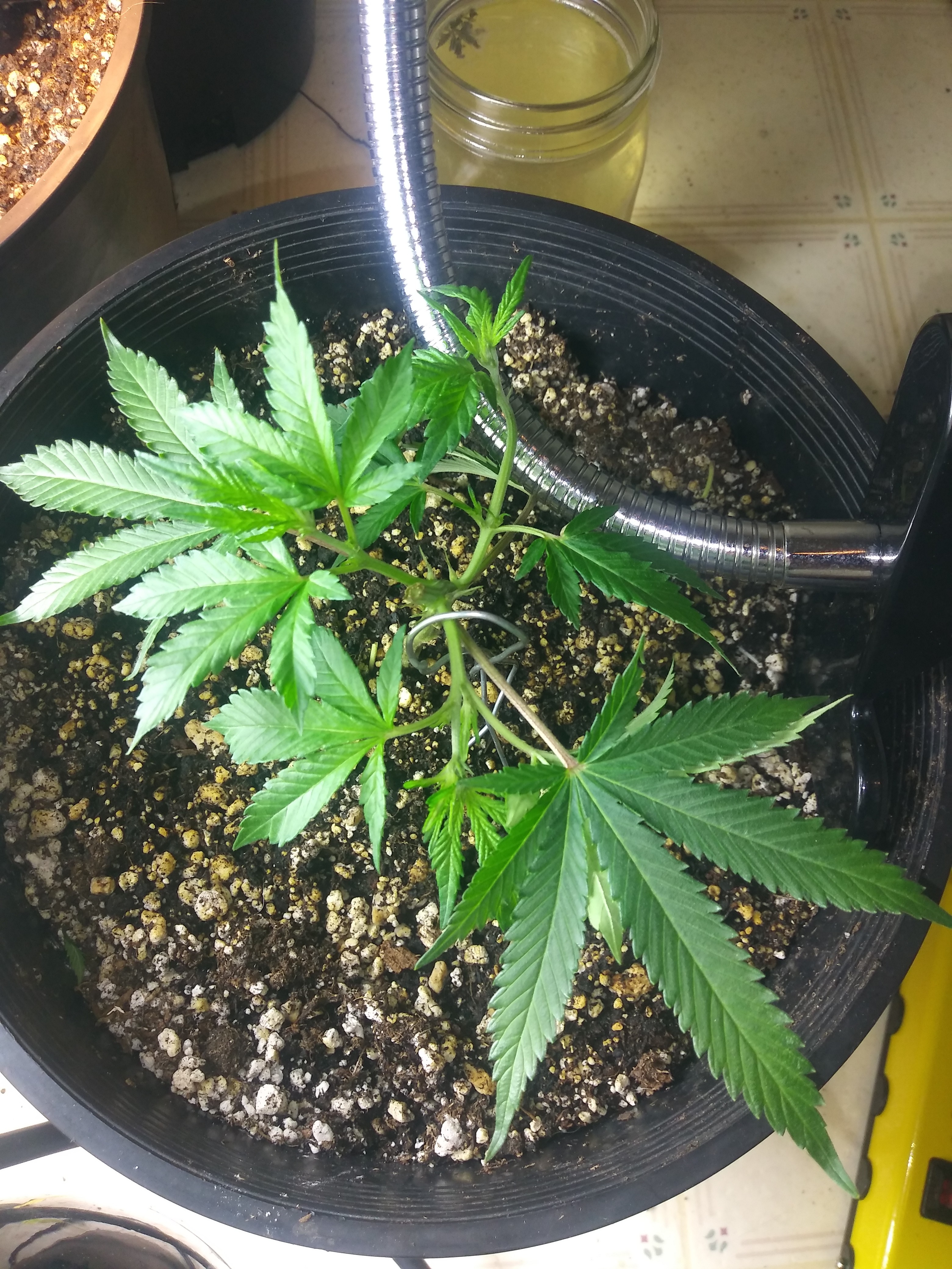 All in all I've taken 7 clones 2 have rooted and are sharing a light with not gc photos. Also have 1 mama mia seedling and a gg#4 clone in the same 4x4. Hoping to veg them out for 5-6 weeks so they can have a tent to themself. So I may just mainline these clones and see if it slows em down. I was thinking scrog but just don't have room atm. With a scrog I'd veg for up to 8 weeks but I already started a type of mainlining.