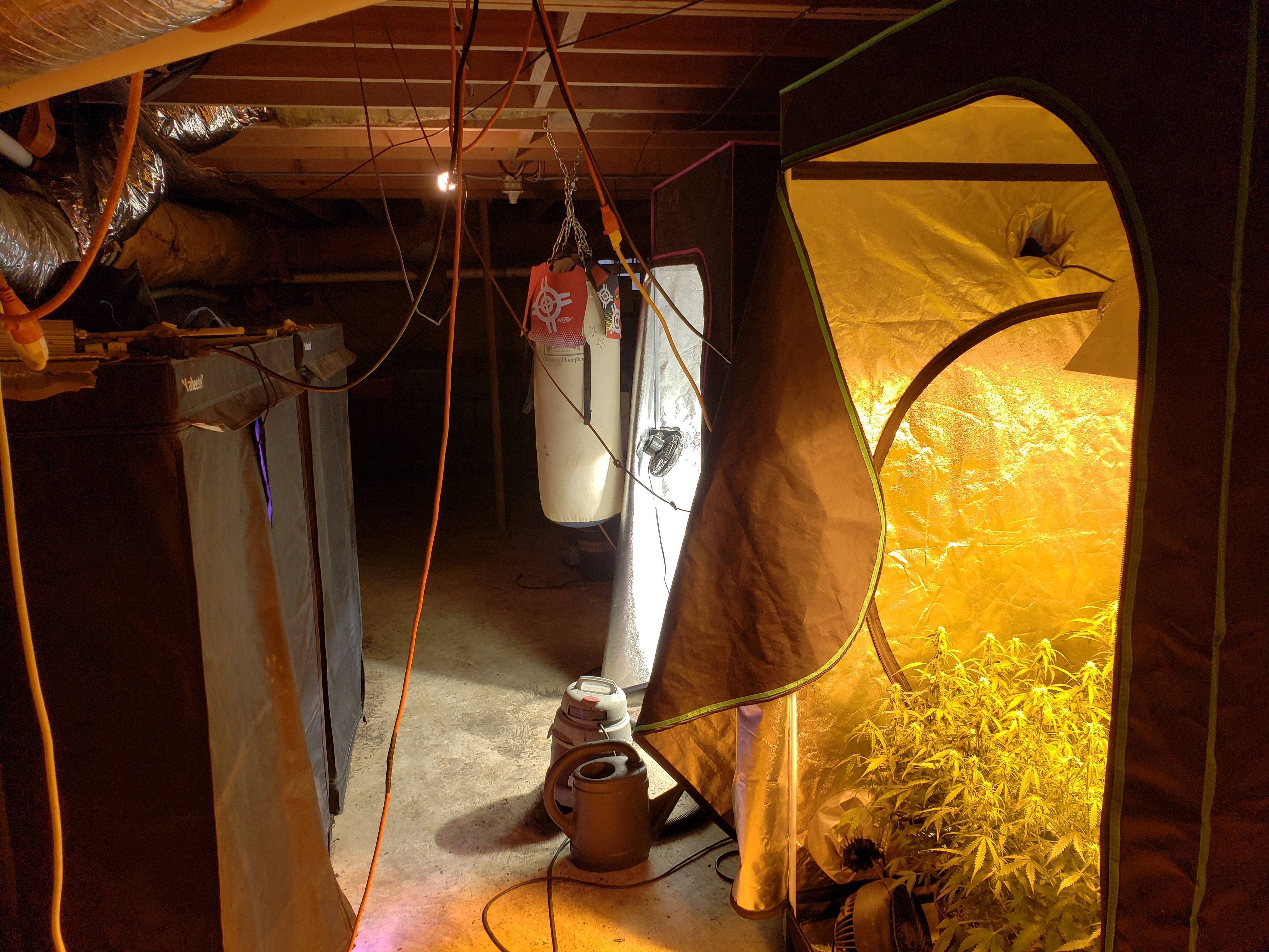 13.5x14 grow room divided, 13.5x6 flower 6" can fan pro max/can-lite carbon filter, 13.5x8 veg/work room passive intake