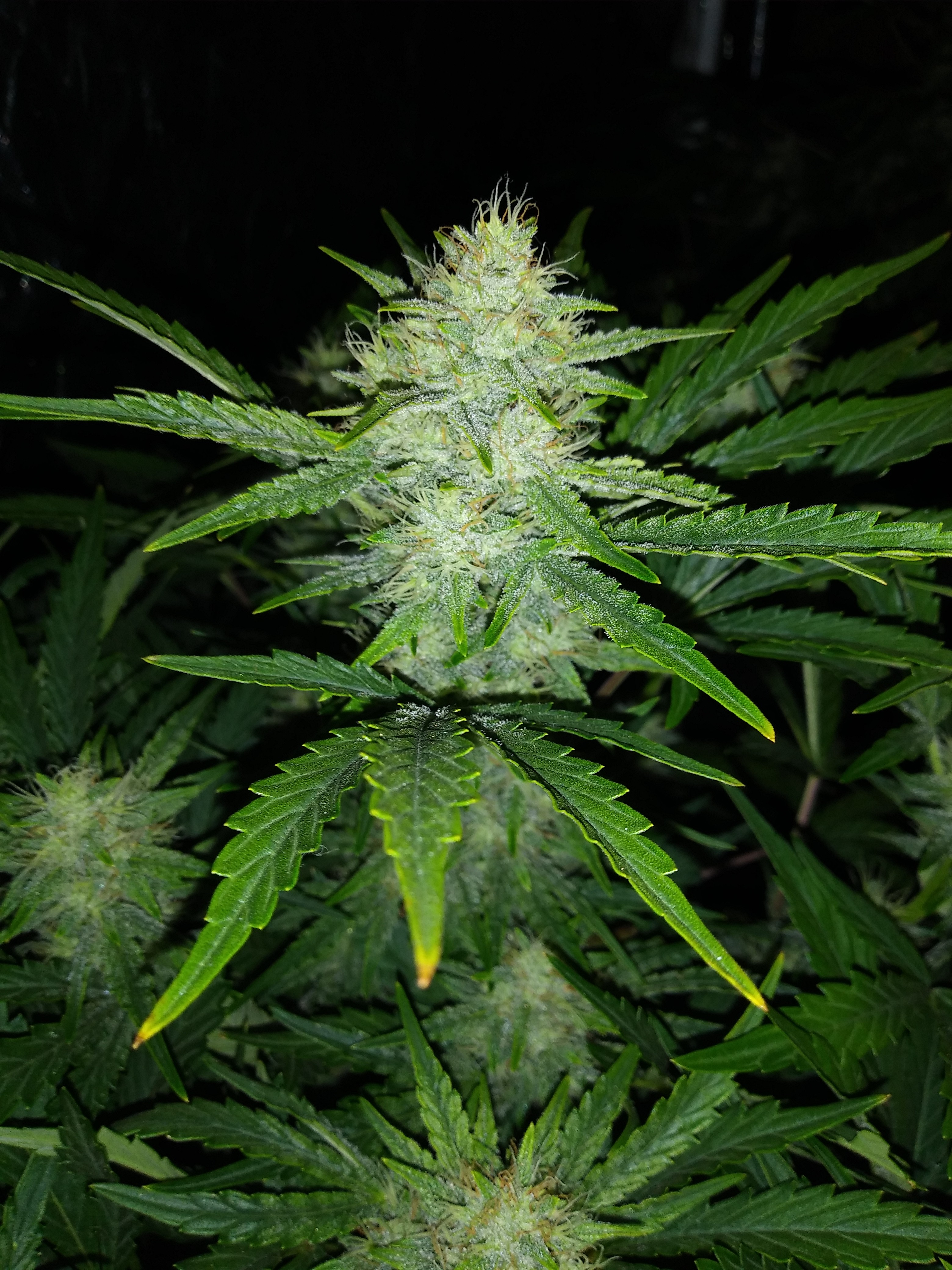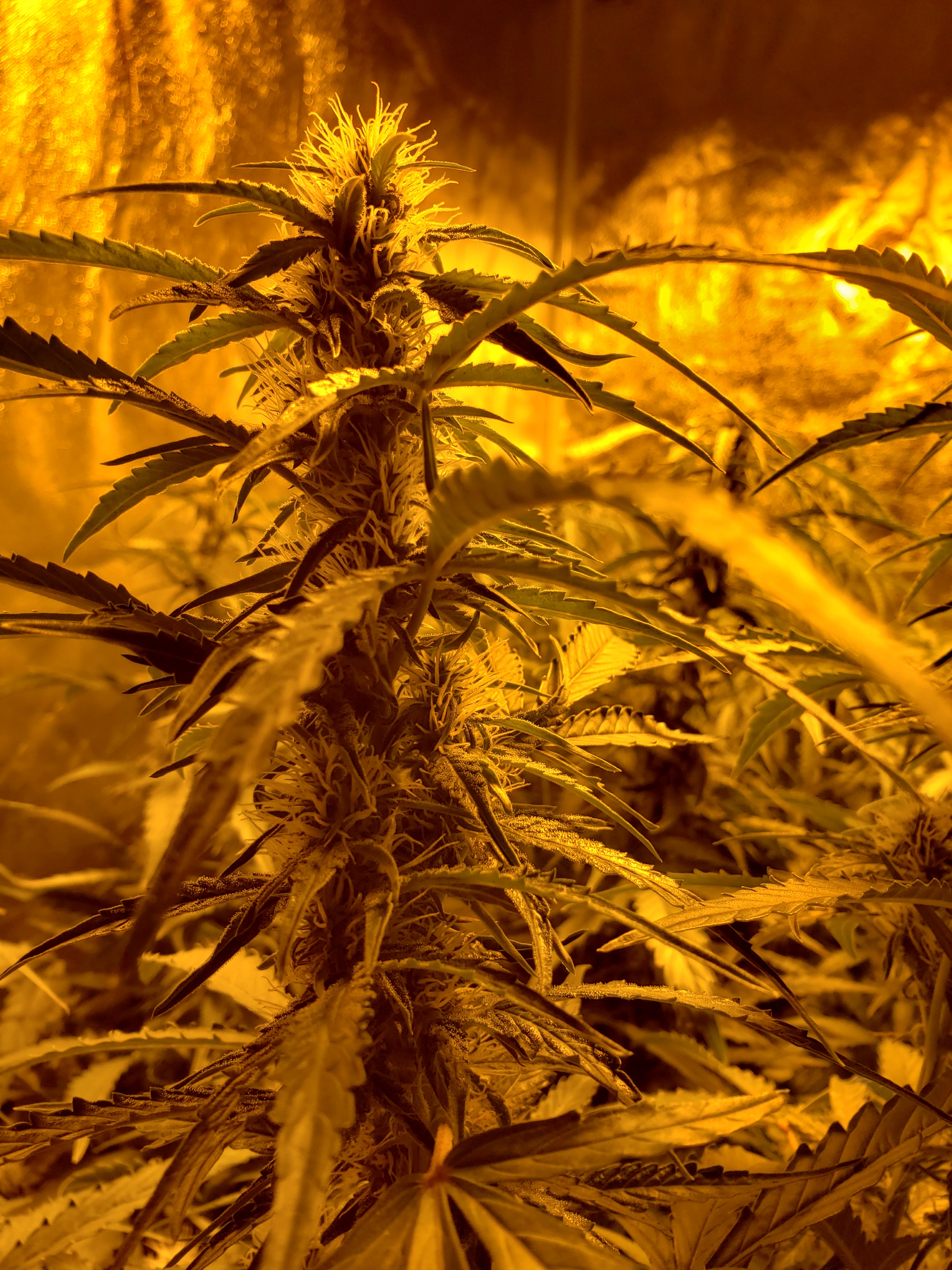 The one I broke has some of the biggest buds I've seen 2 weeks or so into flowering. She is the healthiest but behind the not topped plant by what seems like a week from how they are growing. This one has more white pistils and hardly any orange. But stacking more buds then my skywalker that is around 7-10 days older.