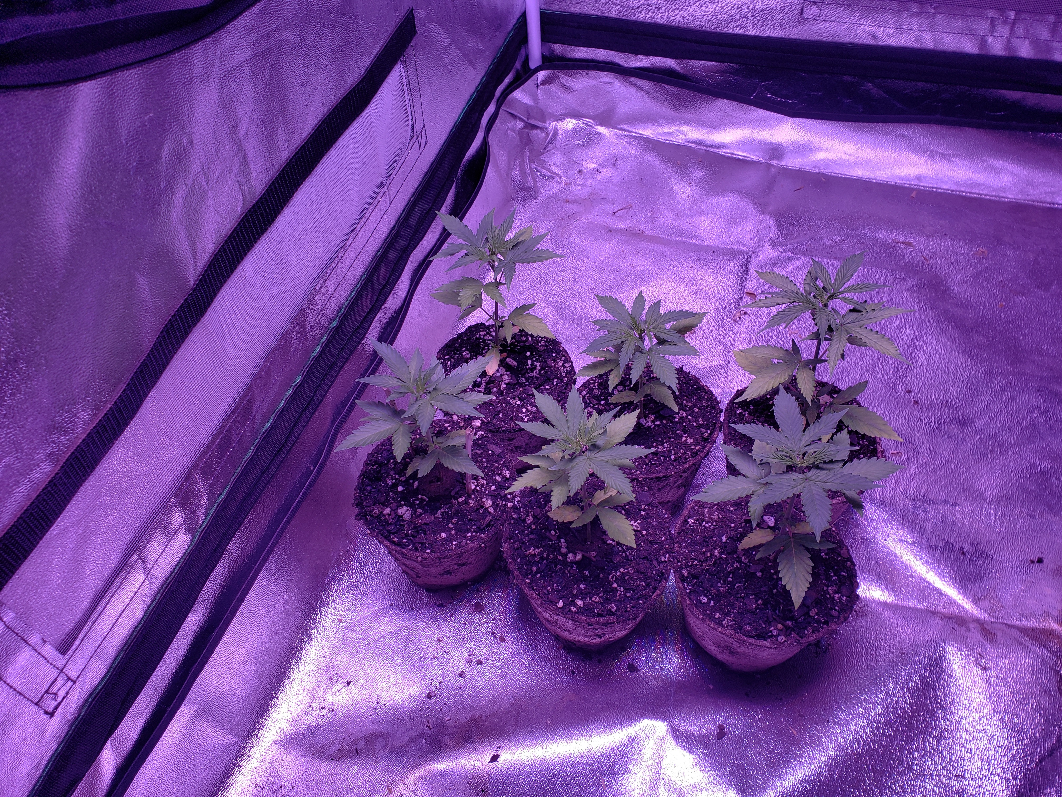 Ok here are the girls as of today. They are healthy just small. I am not going to do any training because I dont want to slow them down anymore. I have more to fill the space soon. So far 4 of the 6 seeds are up and growing. 3 are already in the intermediate pots. Will keep you updated. The last 2 seeds should be up by tomorrow I'm guessing.