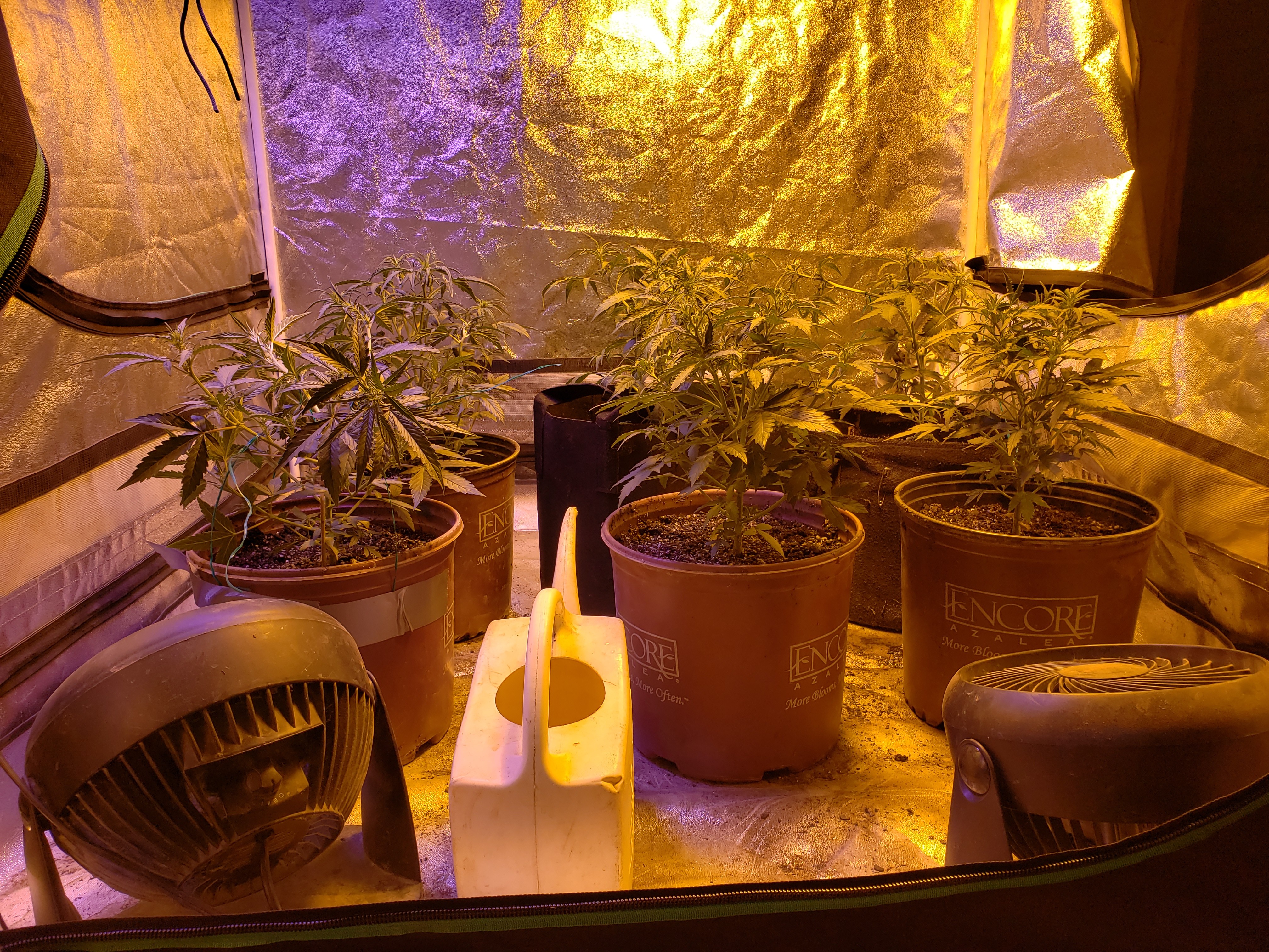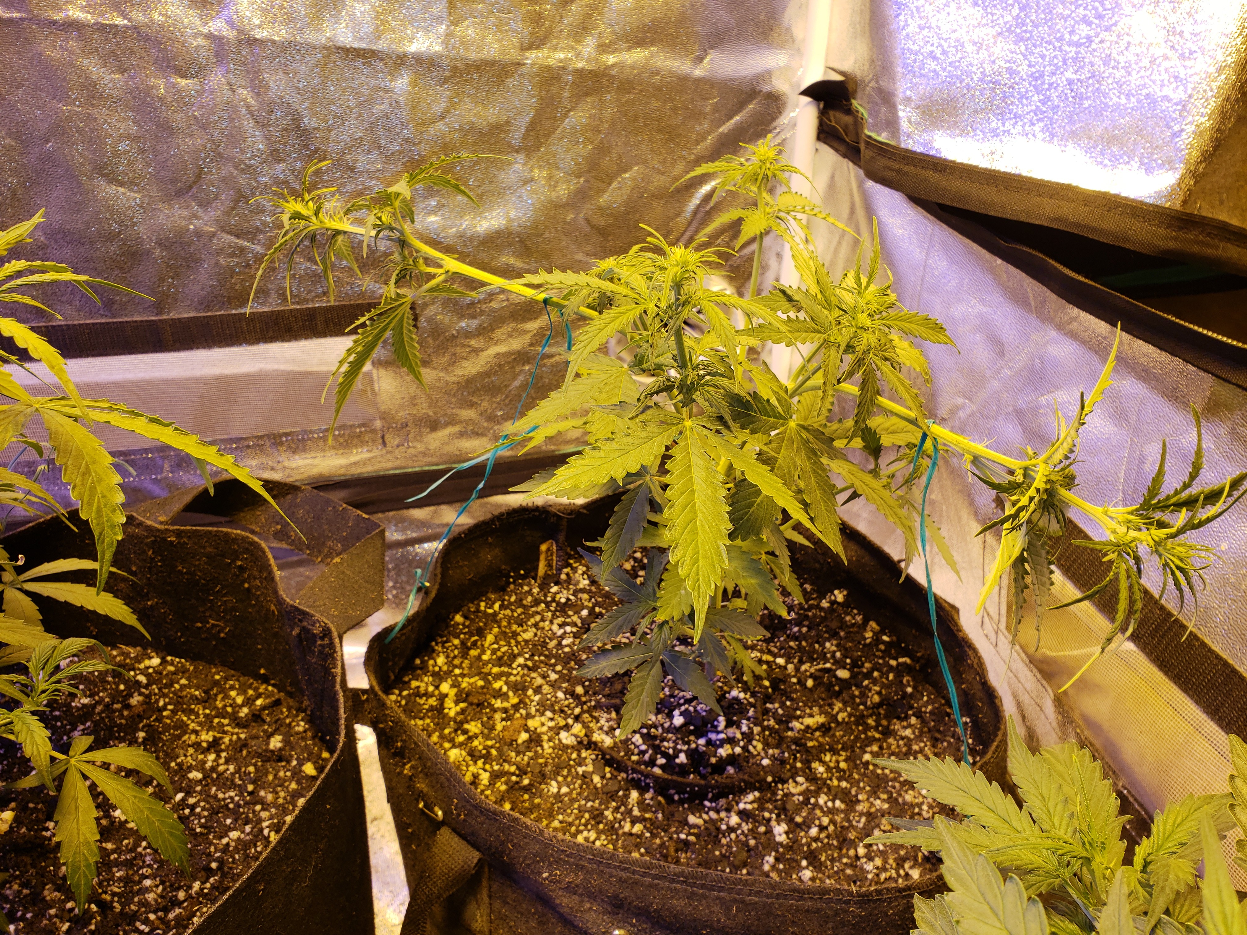 Tomorrow I am gonna have to level the canopy again so they will be spread out even more. The one on the bottom right in the big tent split after being trained. So I have just let her heal. She is getting much bushier and afraid to try anything with her although it never slowed her down. Never had that happen before but a first for everything.