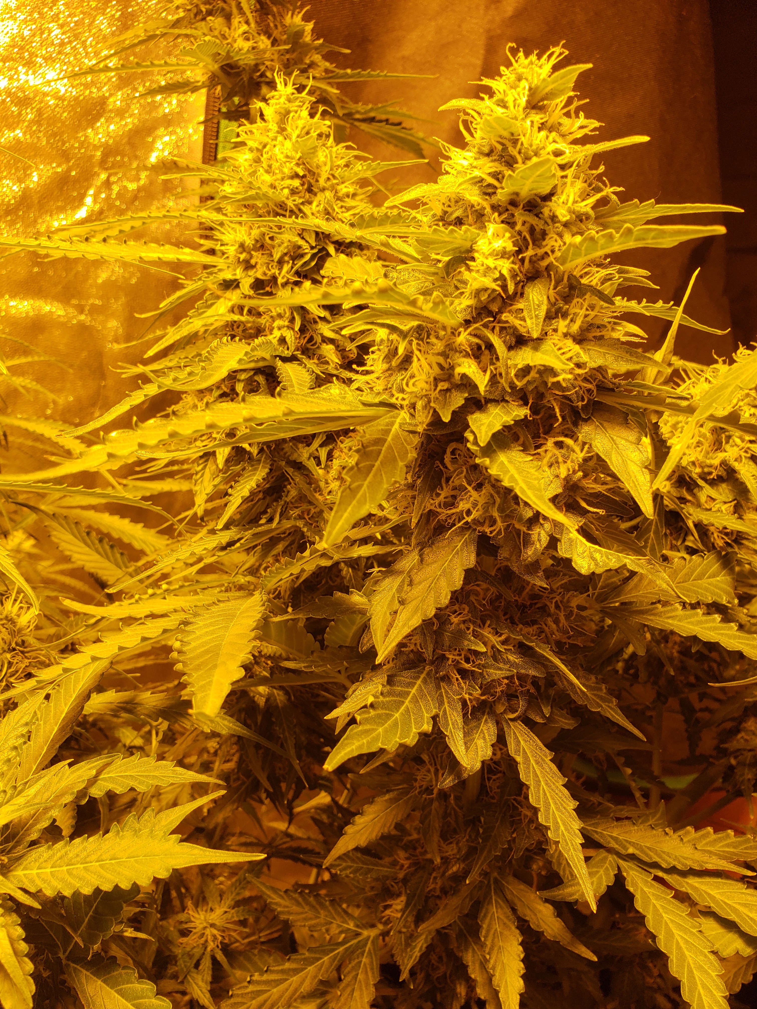 D.A.A.S.69 she is caremlicious auto from msnl. She is 66 days old. I believe msnl says 75 days but my last group of them I let go to 100 days. And the smoke was some of the hardest, best tasting, buds I've ever had. Loved the hard hitting but mellow high she gives. I seriously doubt that one will make it to 100 days but the other 4 will most likely.