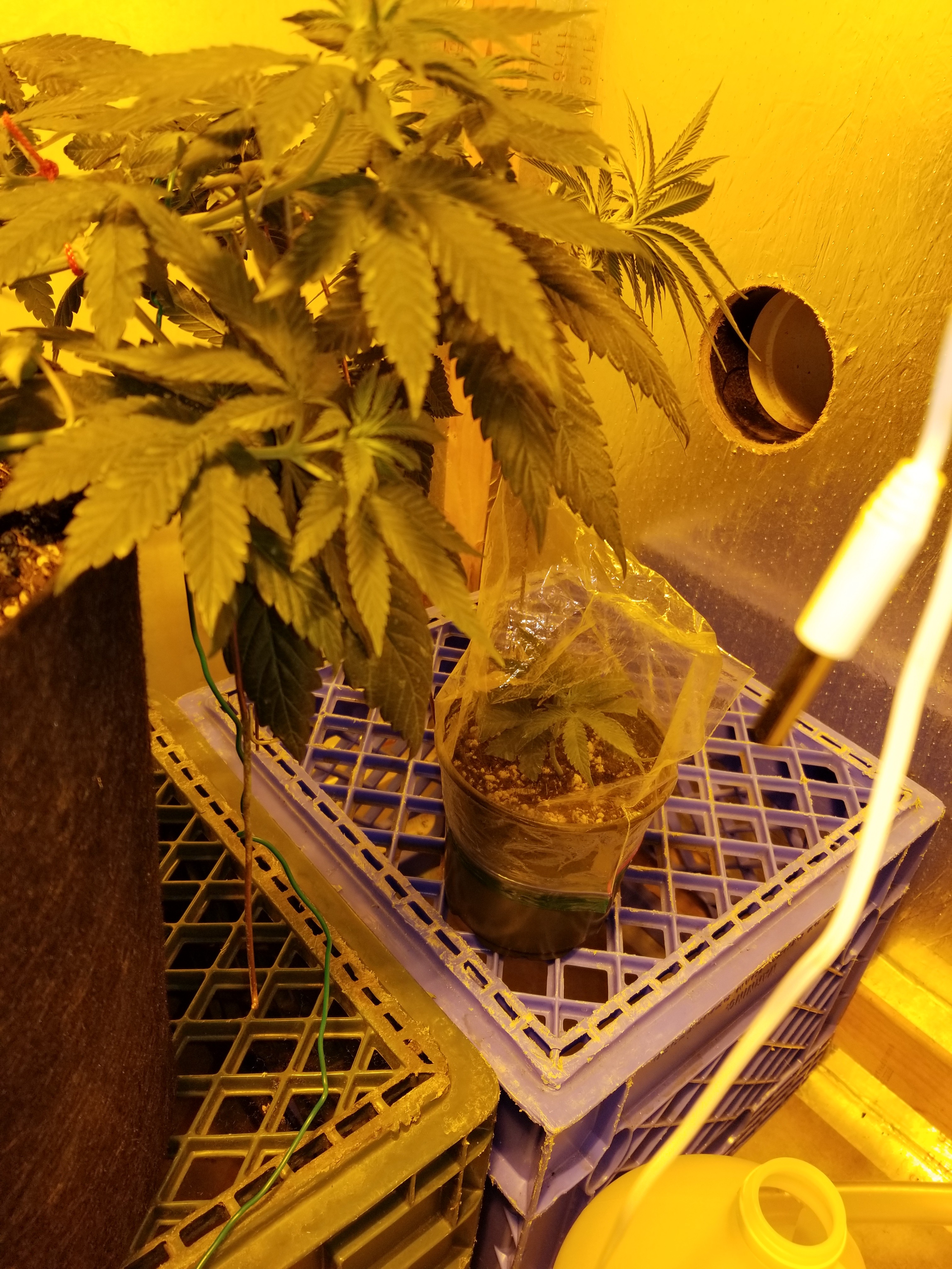 I took the tent off to give some tea, but didn't have my phone to take a picture. This is DG, now that I've done it, I can continue to clone the GC. Only had one seed of that one, now that I've started to play with her, I want to keep this one around for awhile. So the cloning will continue with aloe.