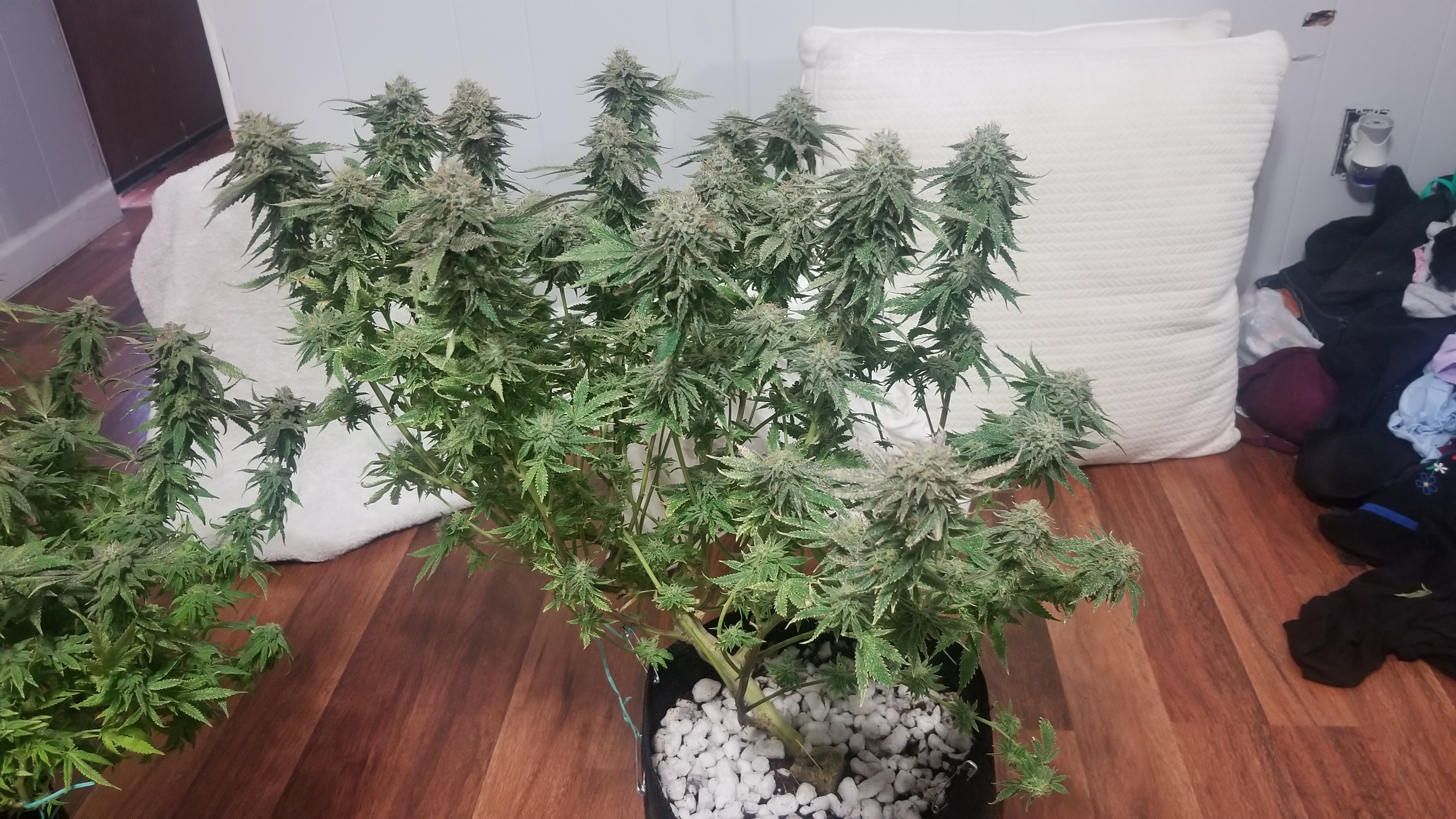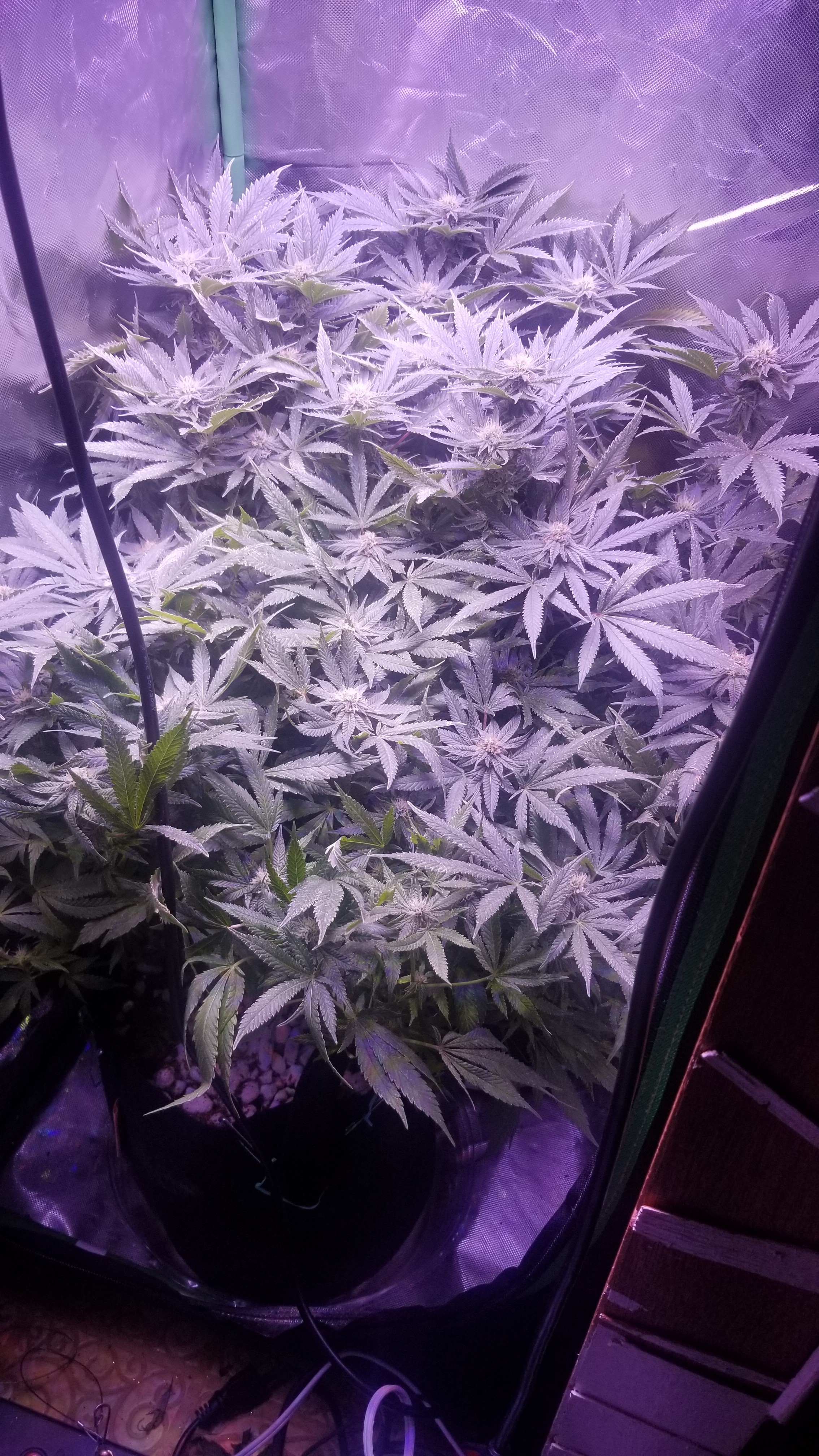 I kept this grow very simple I plan on making a drip system like campesino for my next grow looks like 2 plants in this tent is the sweet spot I have 2 300w viperspectra in there with a 4 inch exhaust/carbon filter I started these clones on may 21 started flowering on June 26 and I'm planning on harvesting on Tuesday I have a lot of pictures but only going to select some so it won't be too much