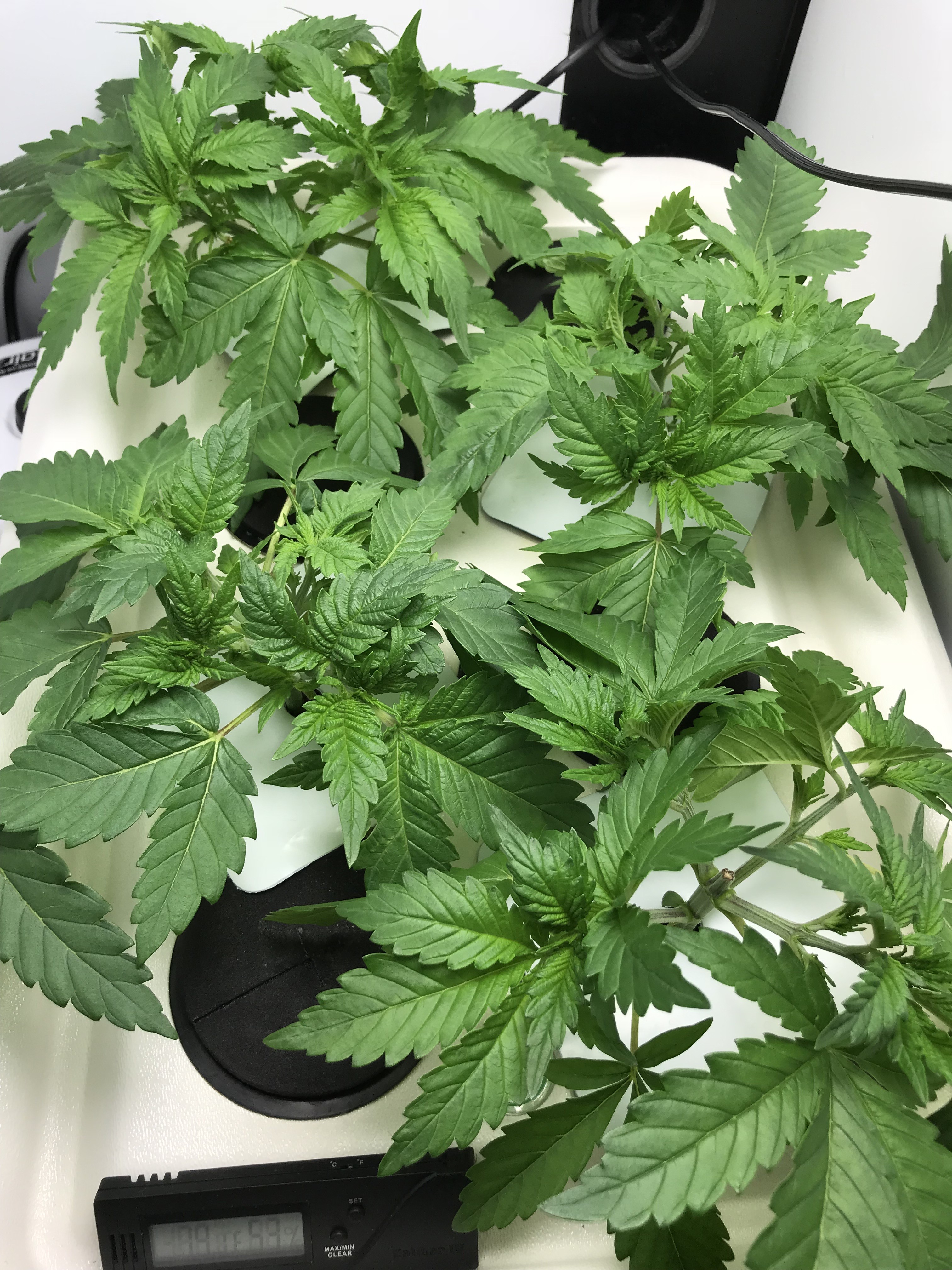 Juicyj89 It's going quite well. I will give them another week before I switch em over; this is the small grow box, so I gotta watch the head room. I really think 4 per plant will work better in this box than six. They are doing great with the nutes and have lots of white roots.1 Photo