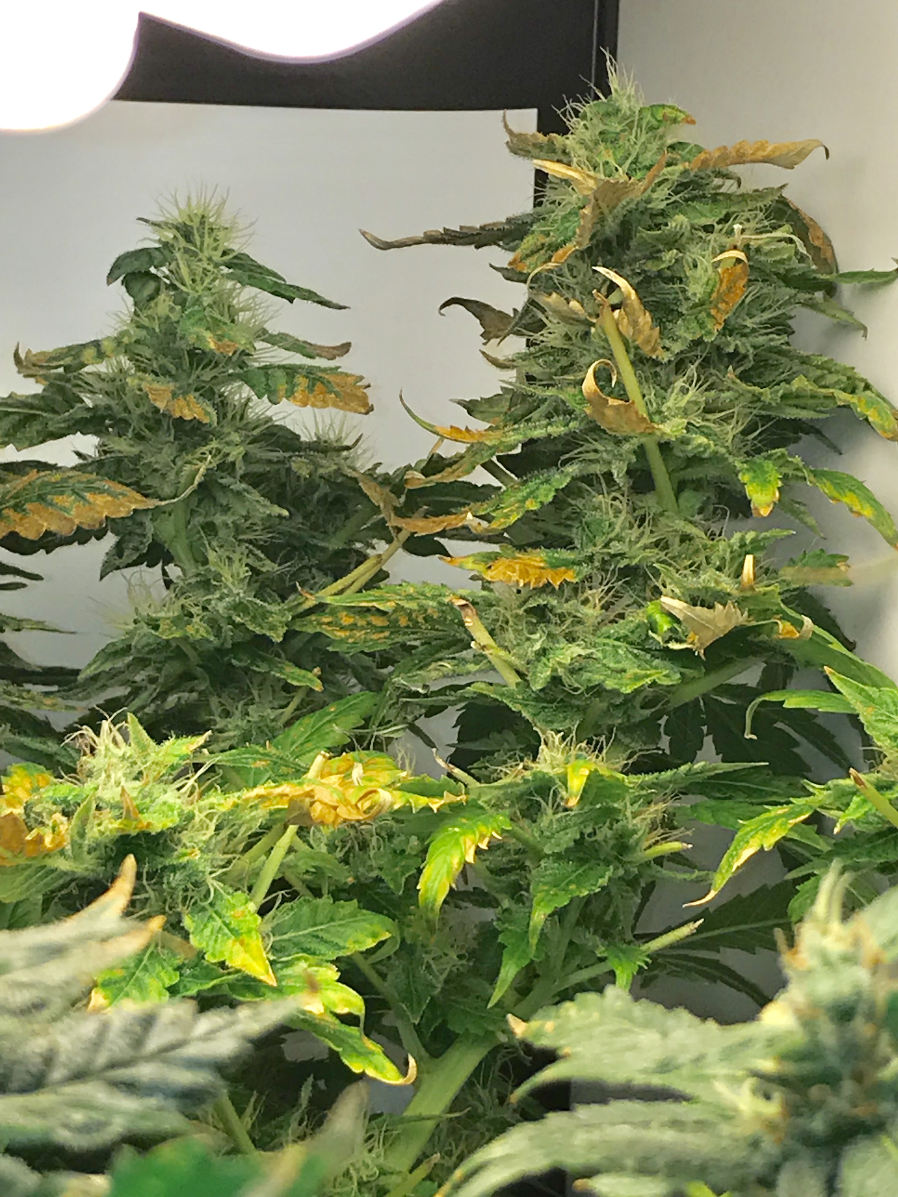 Okay well here's some better pics. I went to work and turned the lights off. They were off for 4 hours and when I got home I turned them on and gave her a dose of some super thrive. Hoping it might help with any issues and maybe help her heal that wound. Guess we'll see in the morning..“Pounds of weed. Sour D. That medical for my allergies.” - Juicy J