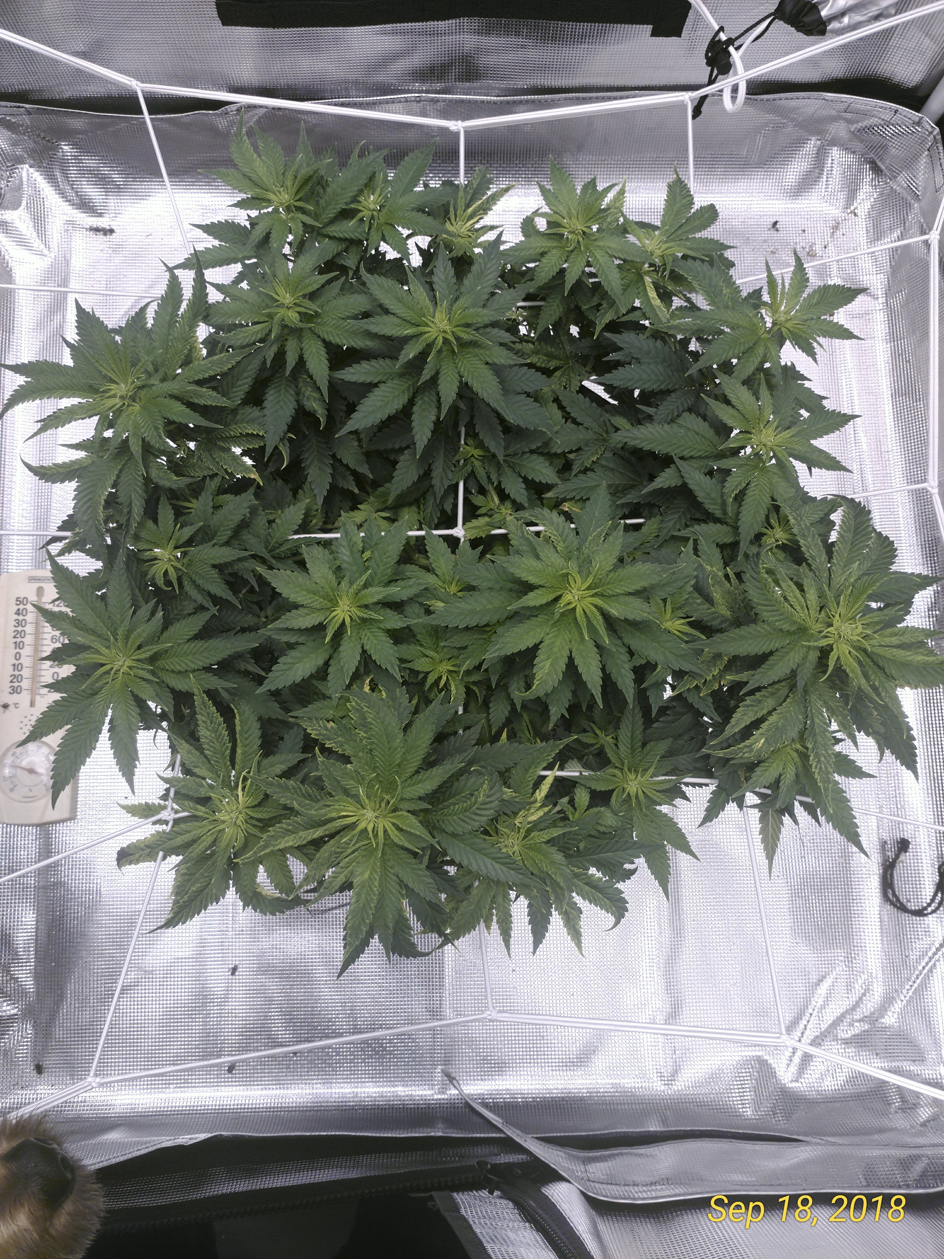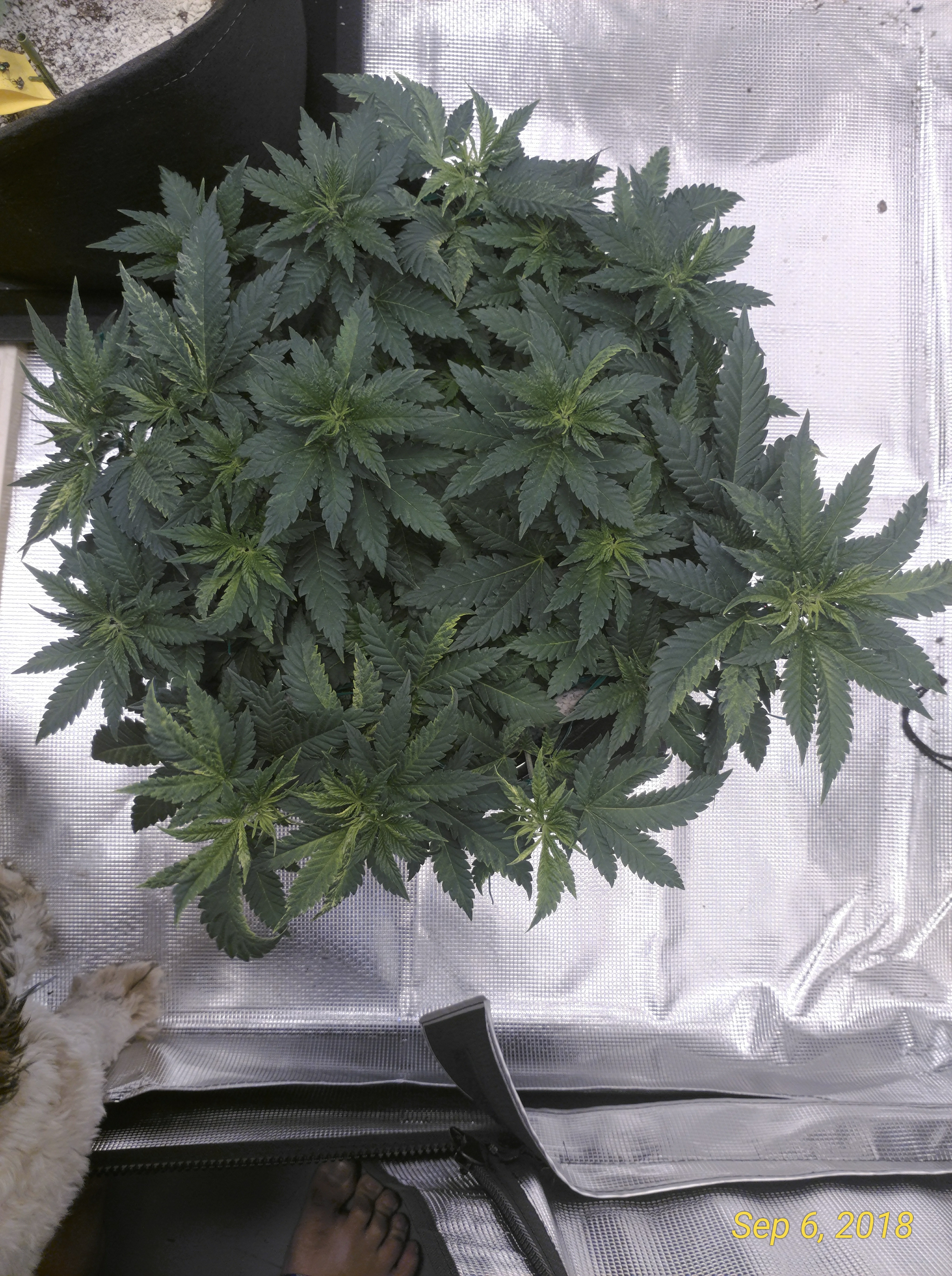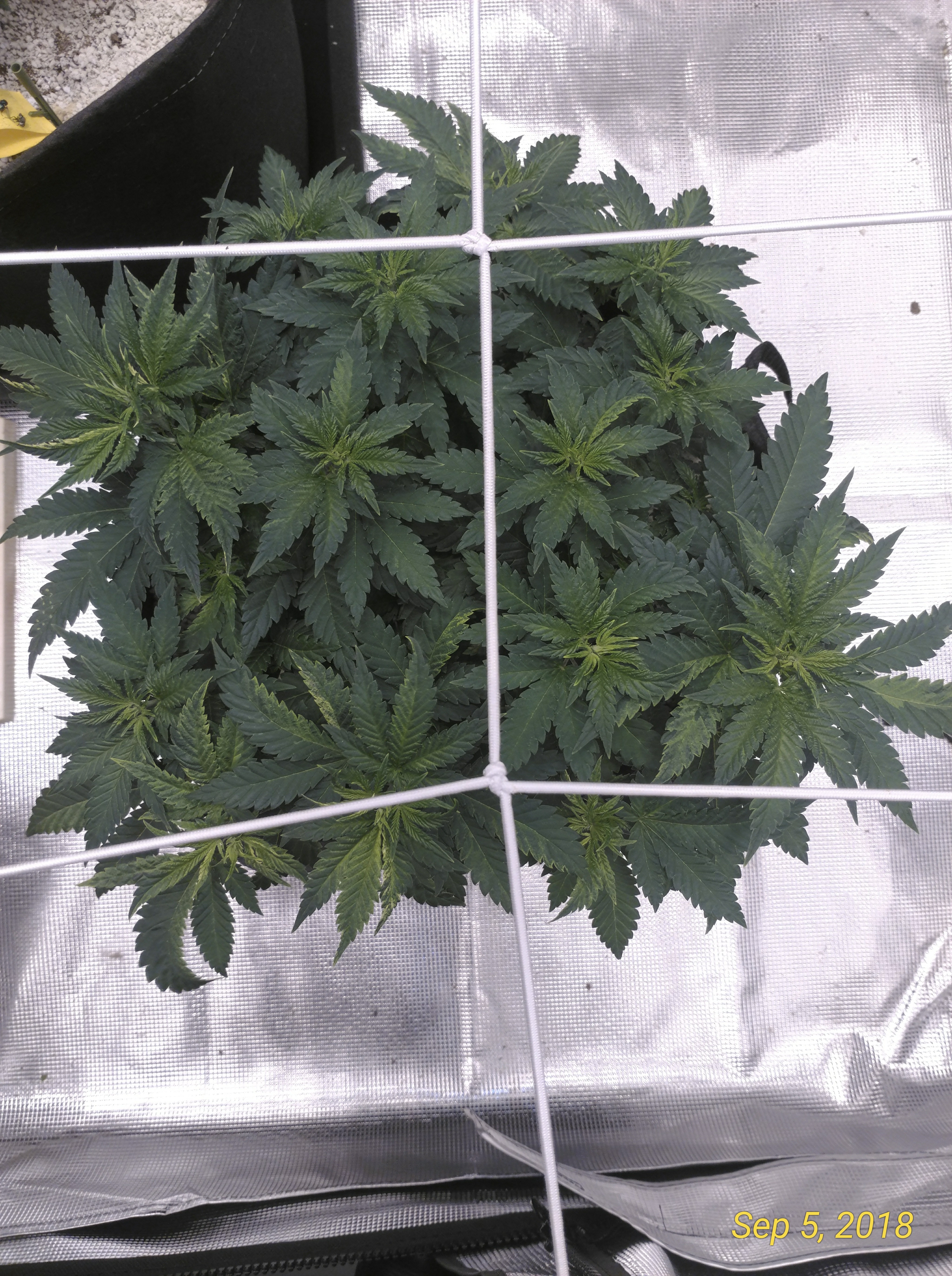 Below are a few pictures of my progress in the past month. I topped her at 3 nodes and have been LSTing since she recovered.