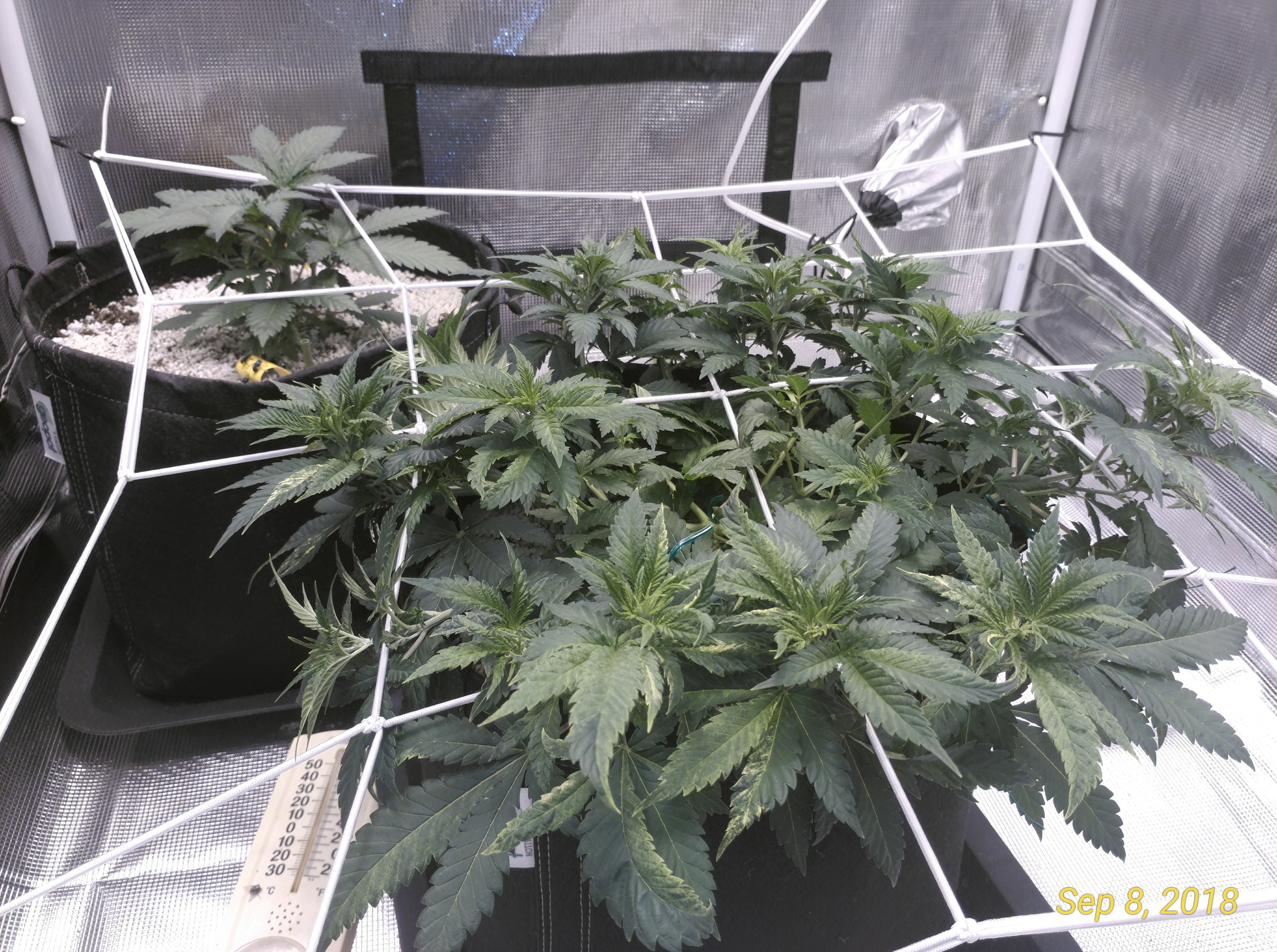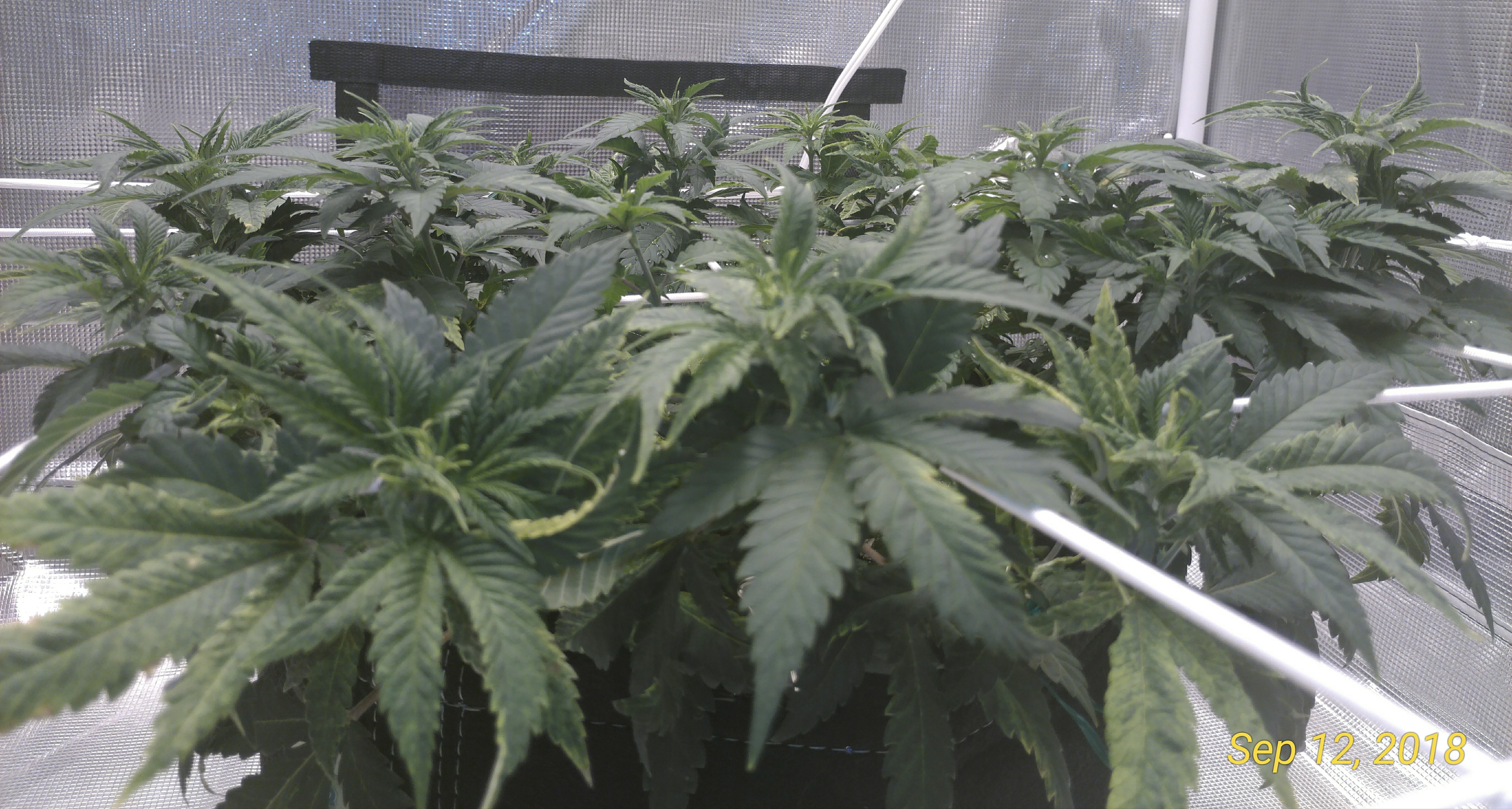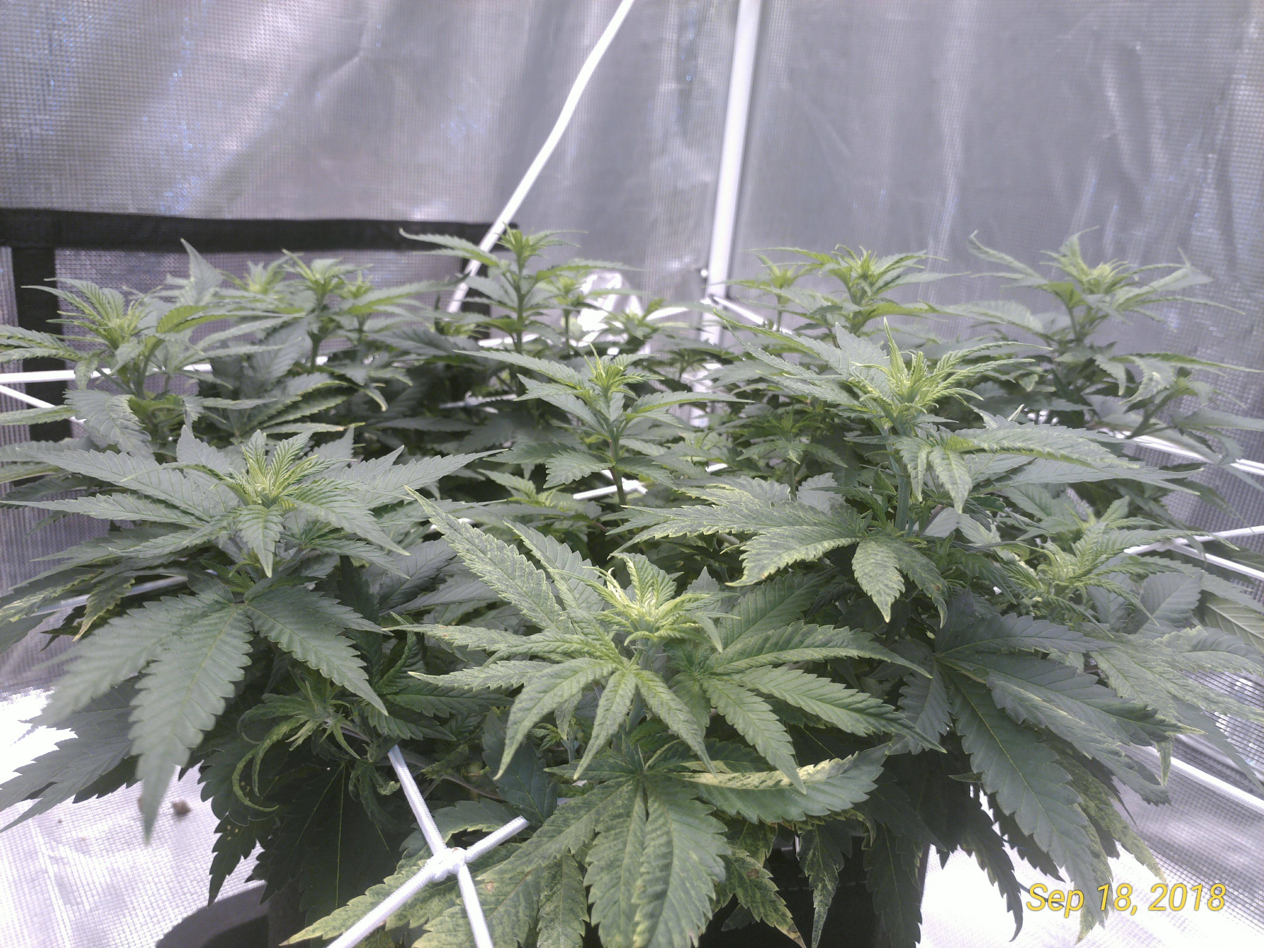 Below are a few pictures of my progress in the past month. I topped her at 3 nodes and have been LSTing since she recovered.