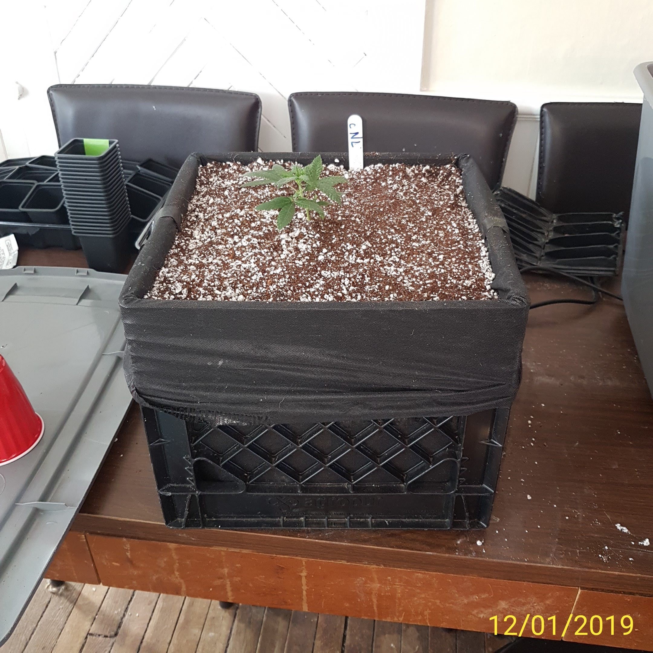 her final pot is a lined (landscape fabric) milk crate, containing 3 gallons of Coco and 3 Gallons of Perlite
