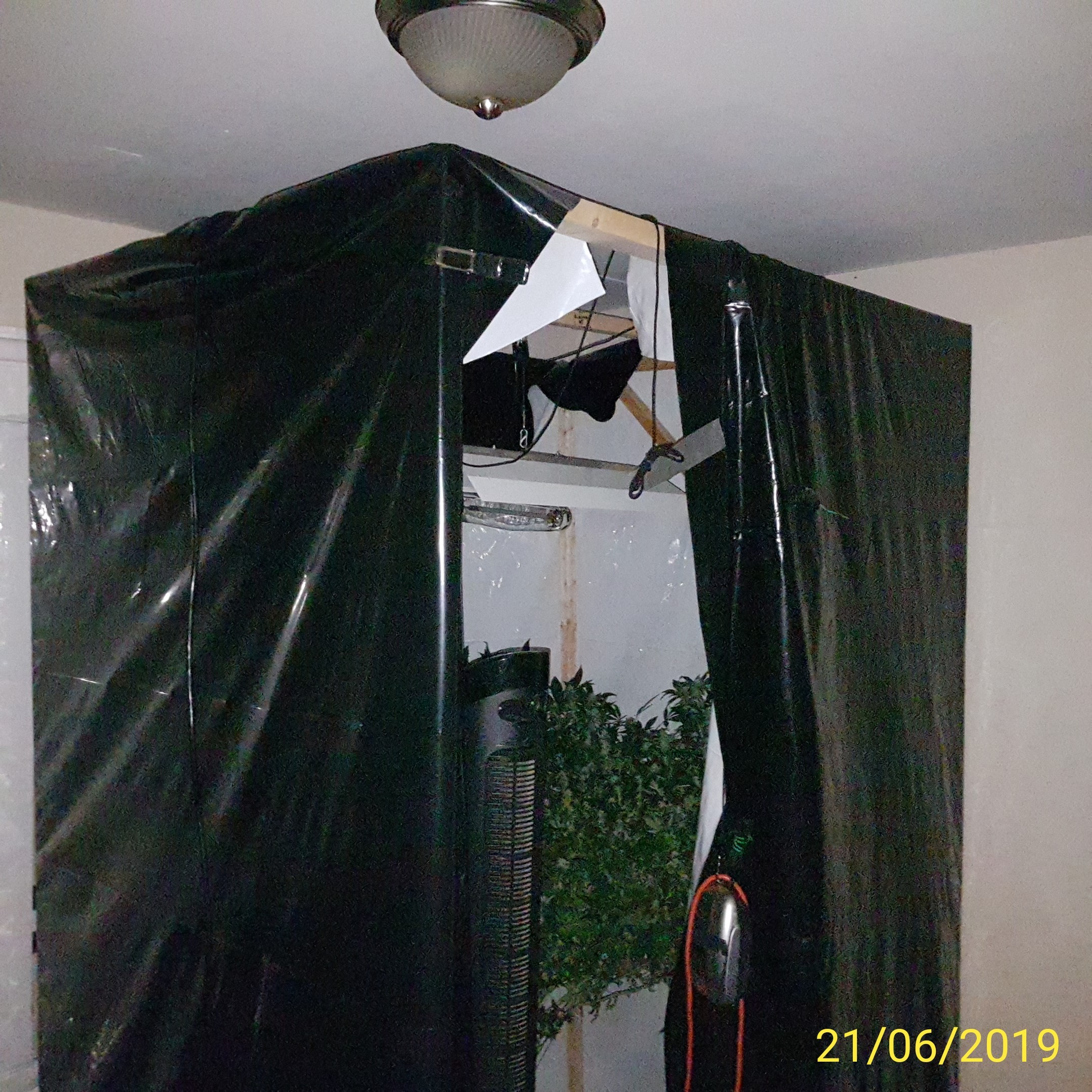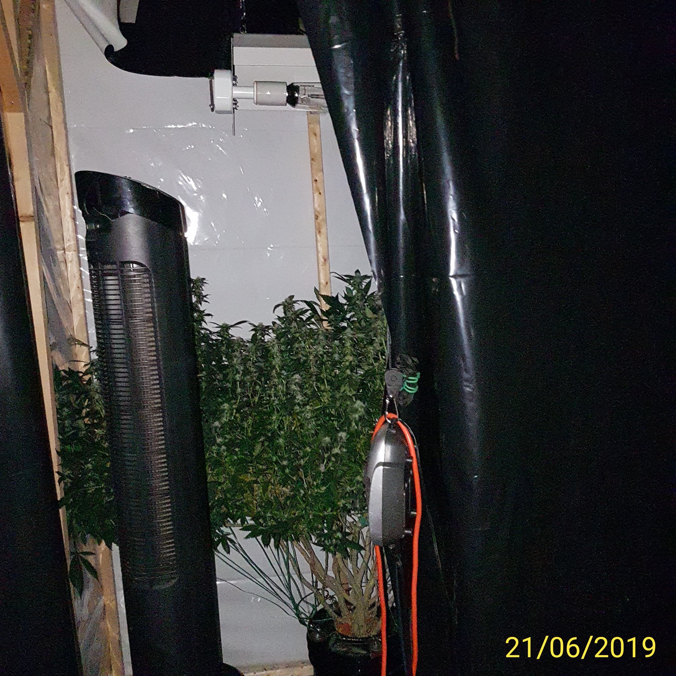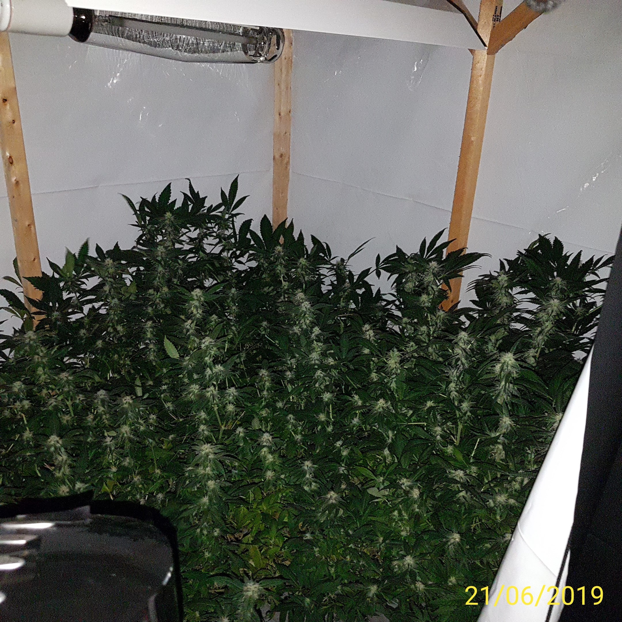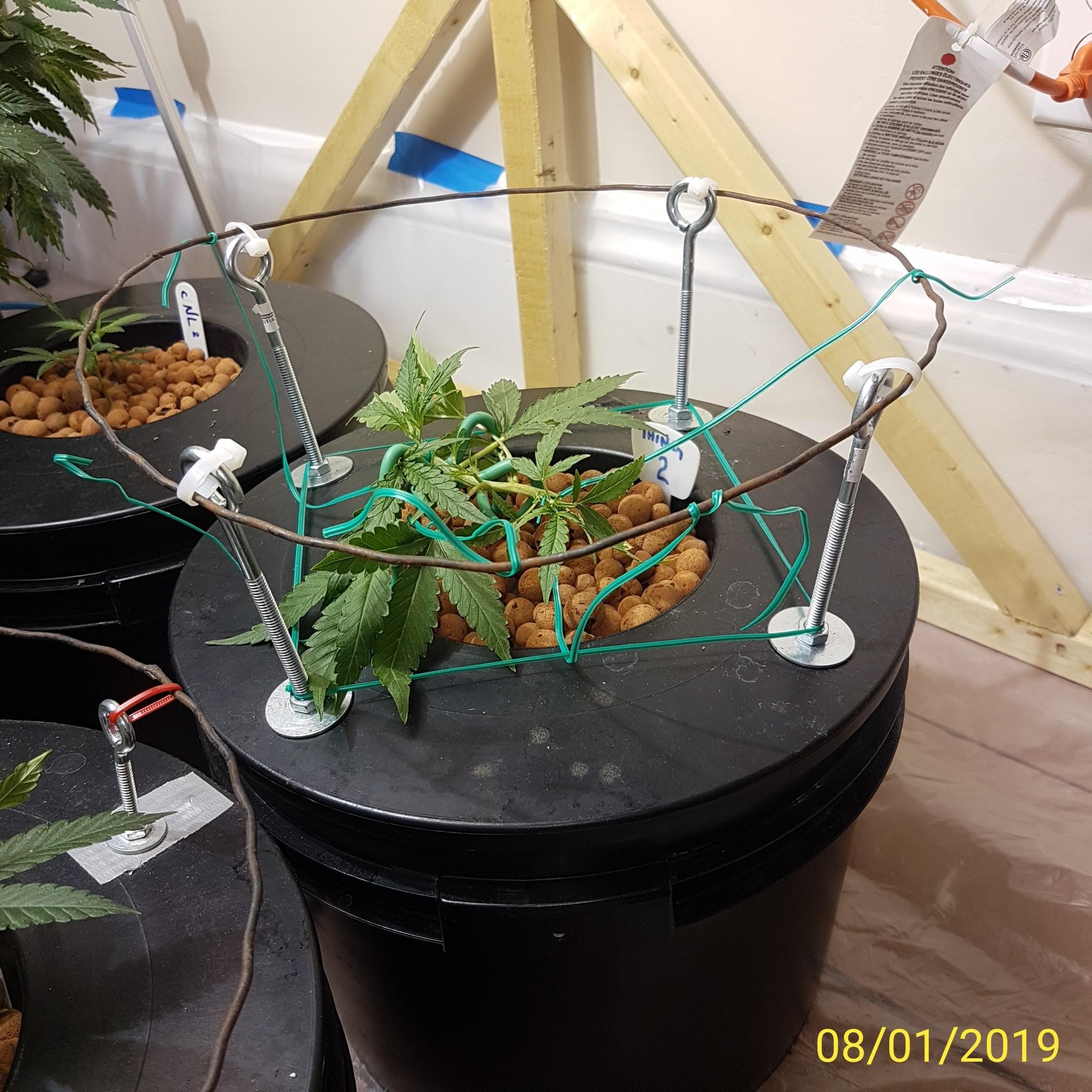the NL got super huge and to make sure I had vertical space, I bound her up tight, her canopy is 2.5 x 5 and handy to 5ish feet tall (well, 3 feet from pot). She is taking 4+ liters of nutes every day.