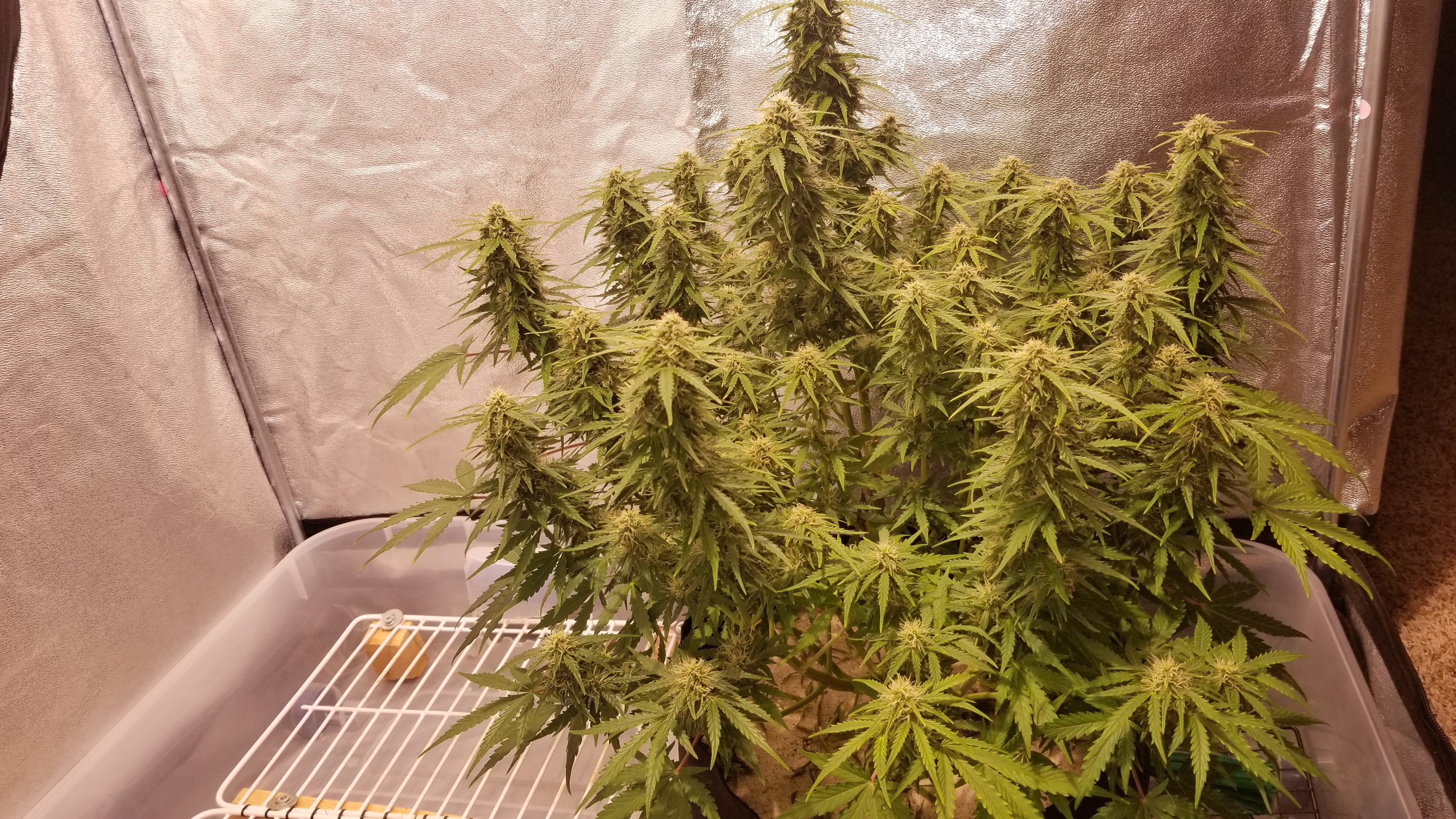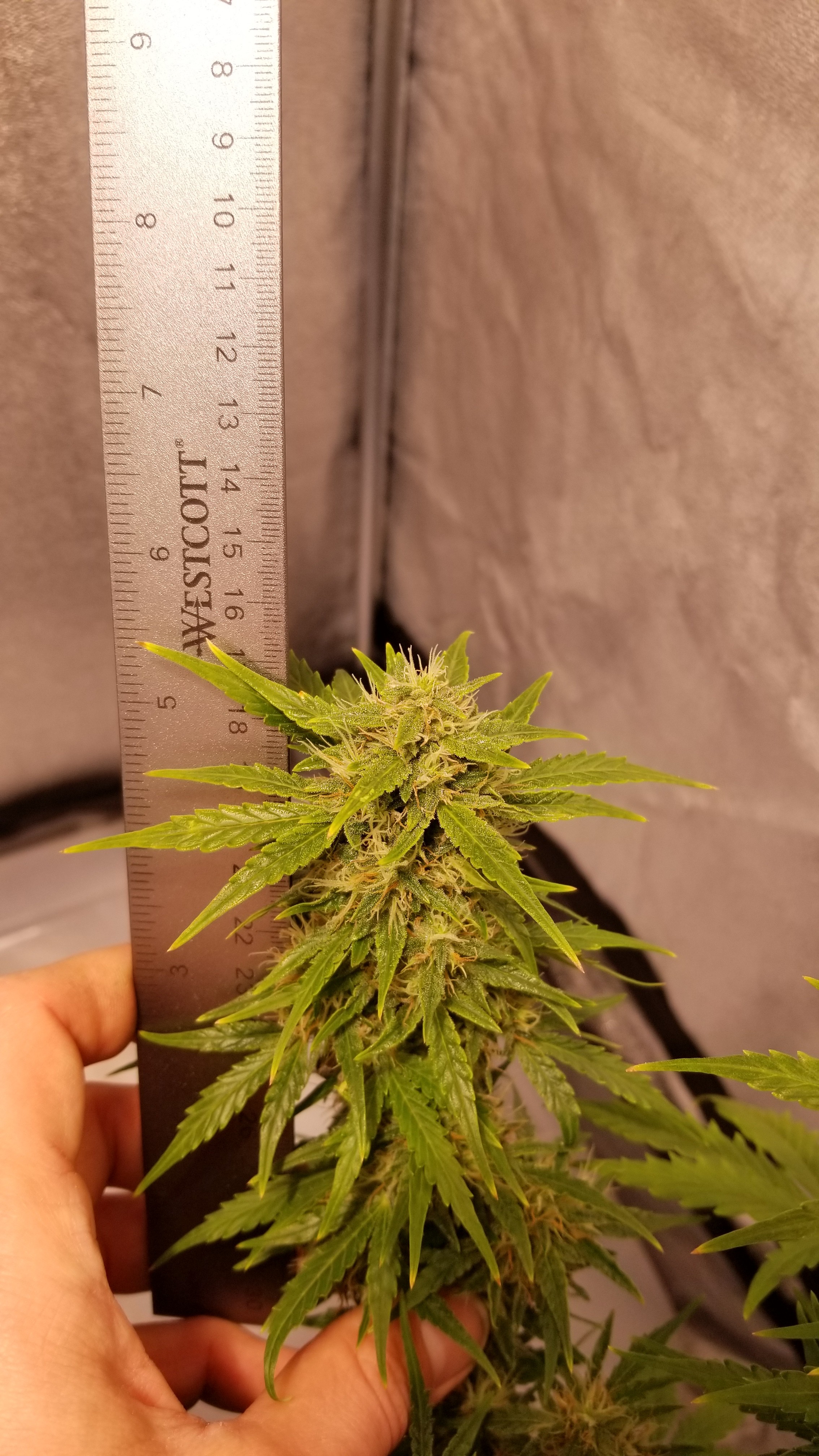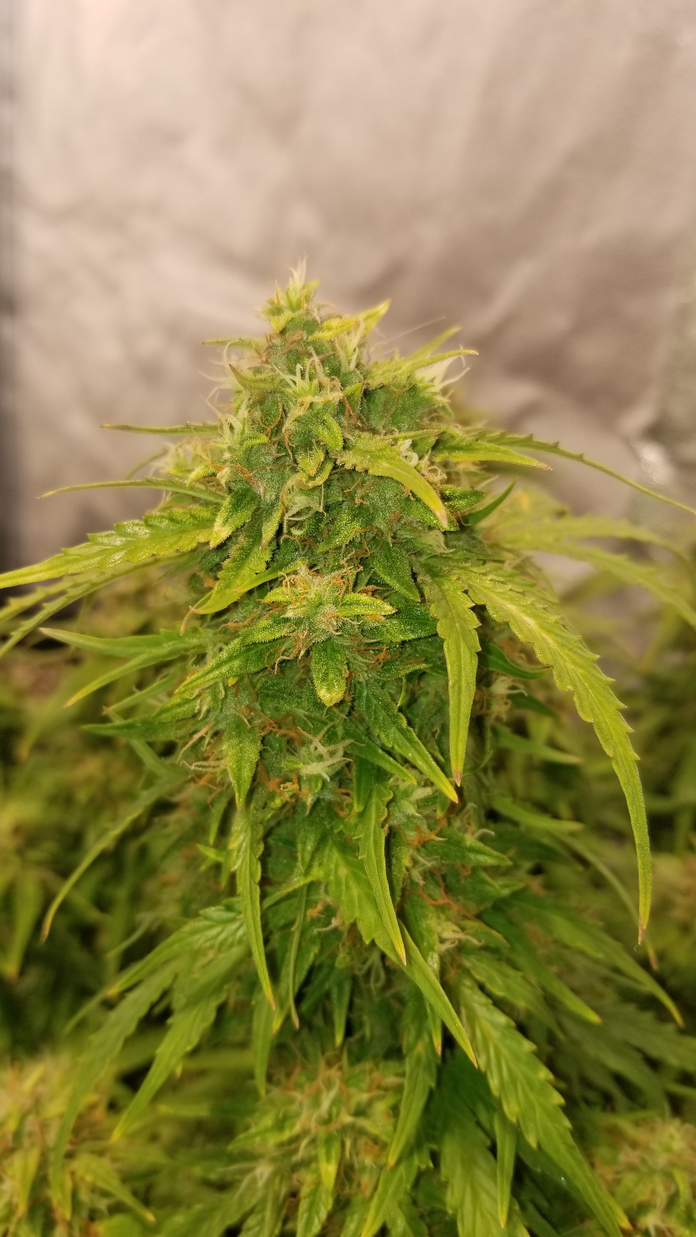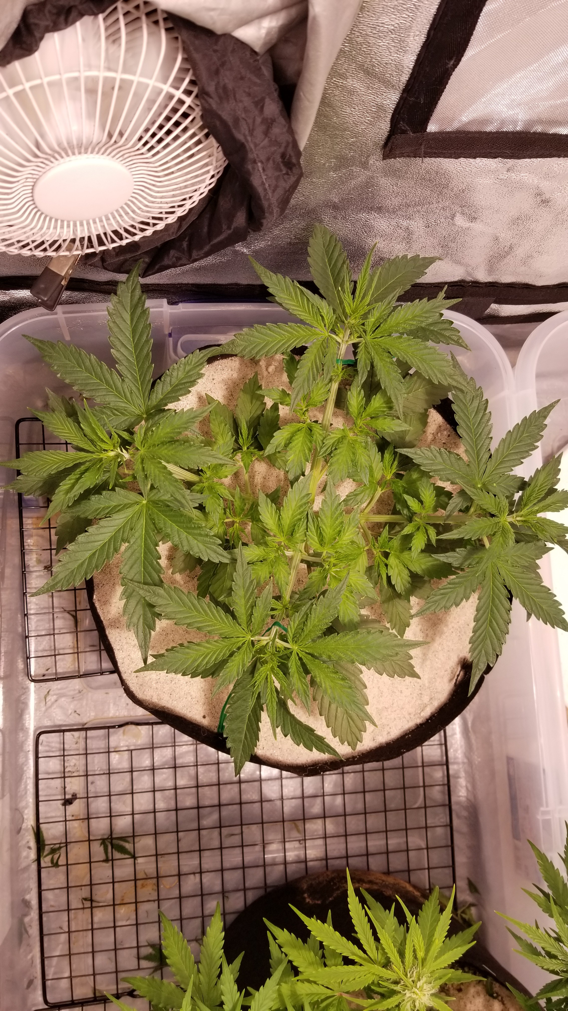 OGK was fed this morning with 5ml of calmag in 1 gallon of water. Also did a decent defoliation, should be the last one I do. She's putting on some trichomes. Happy to see that.