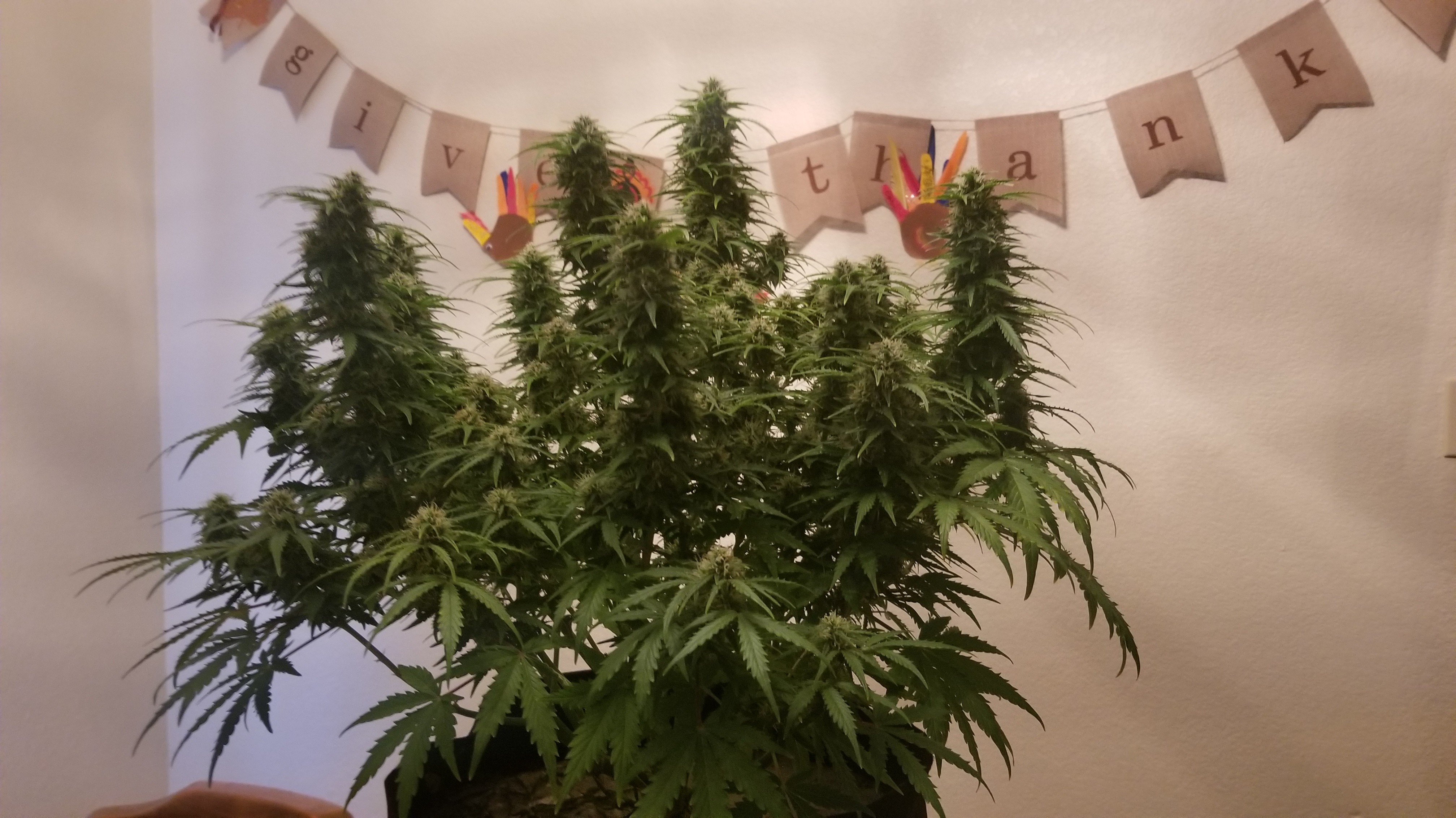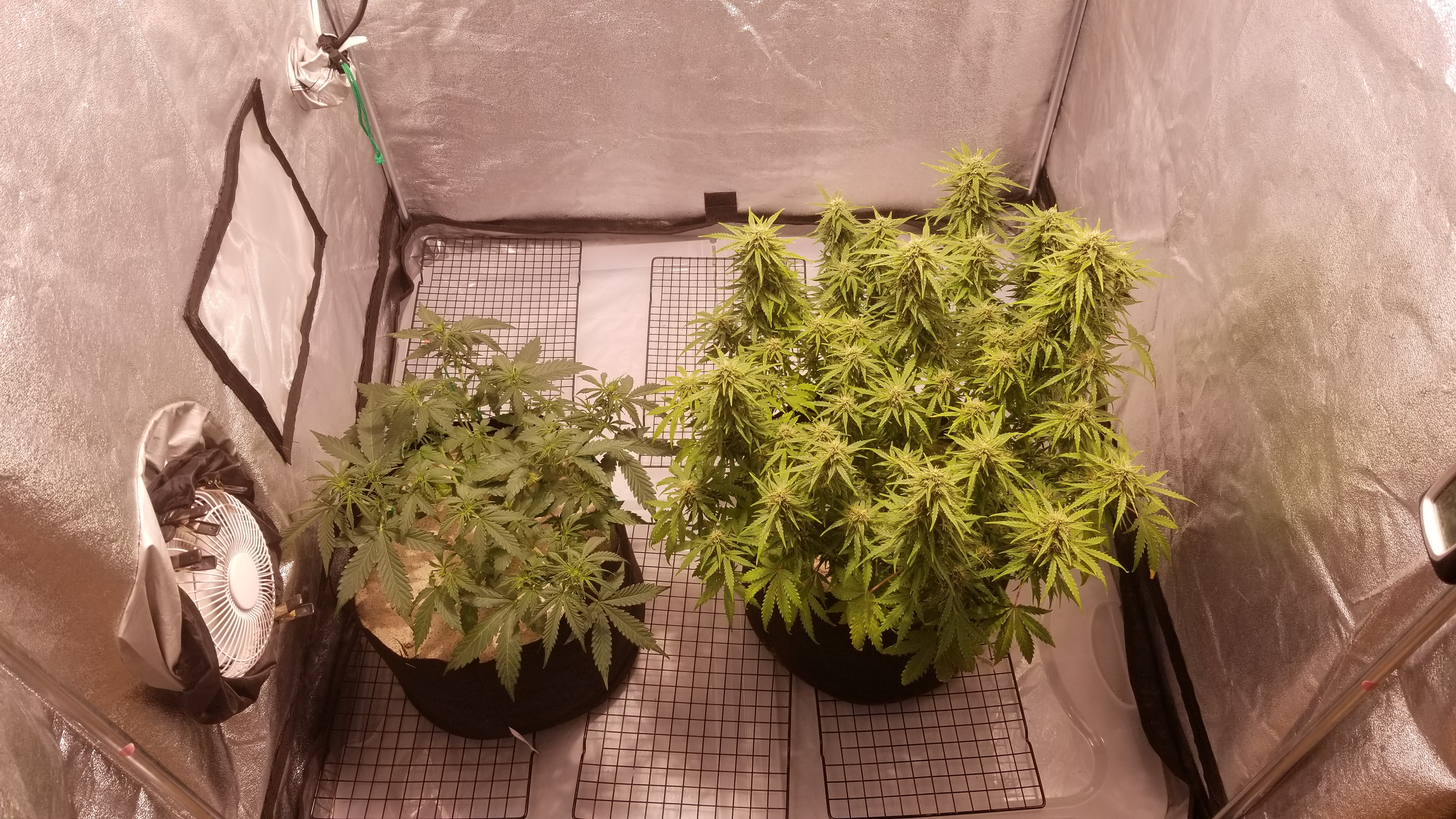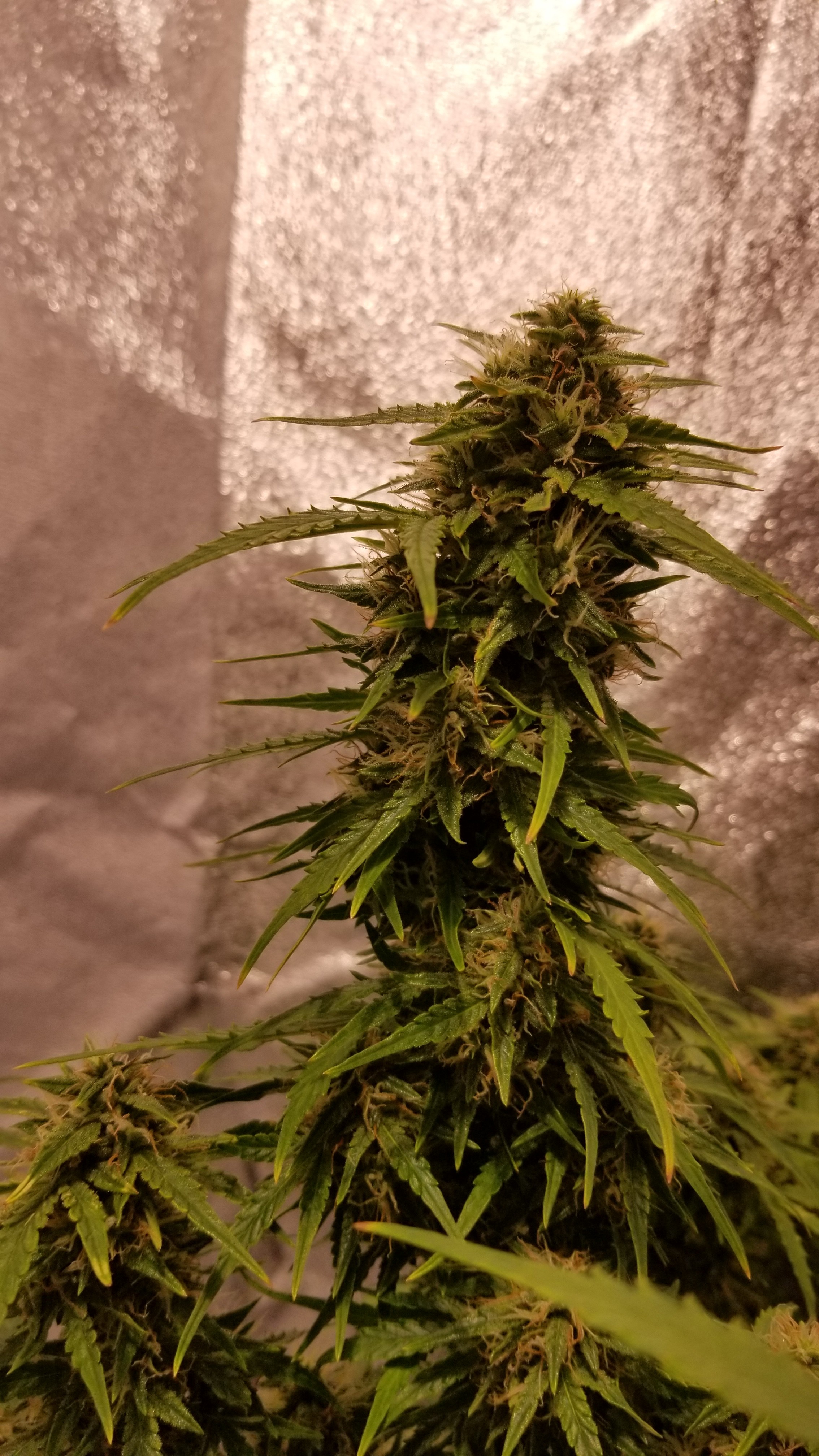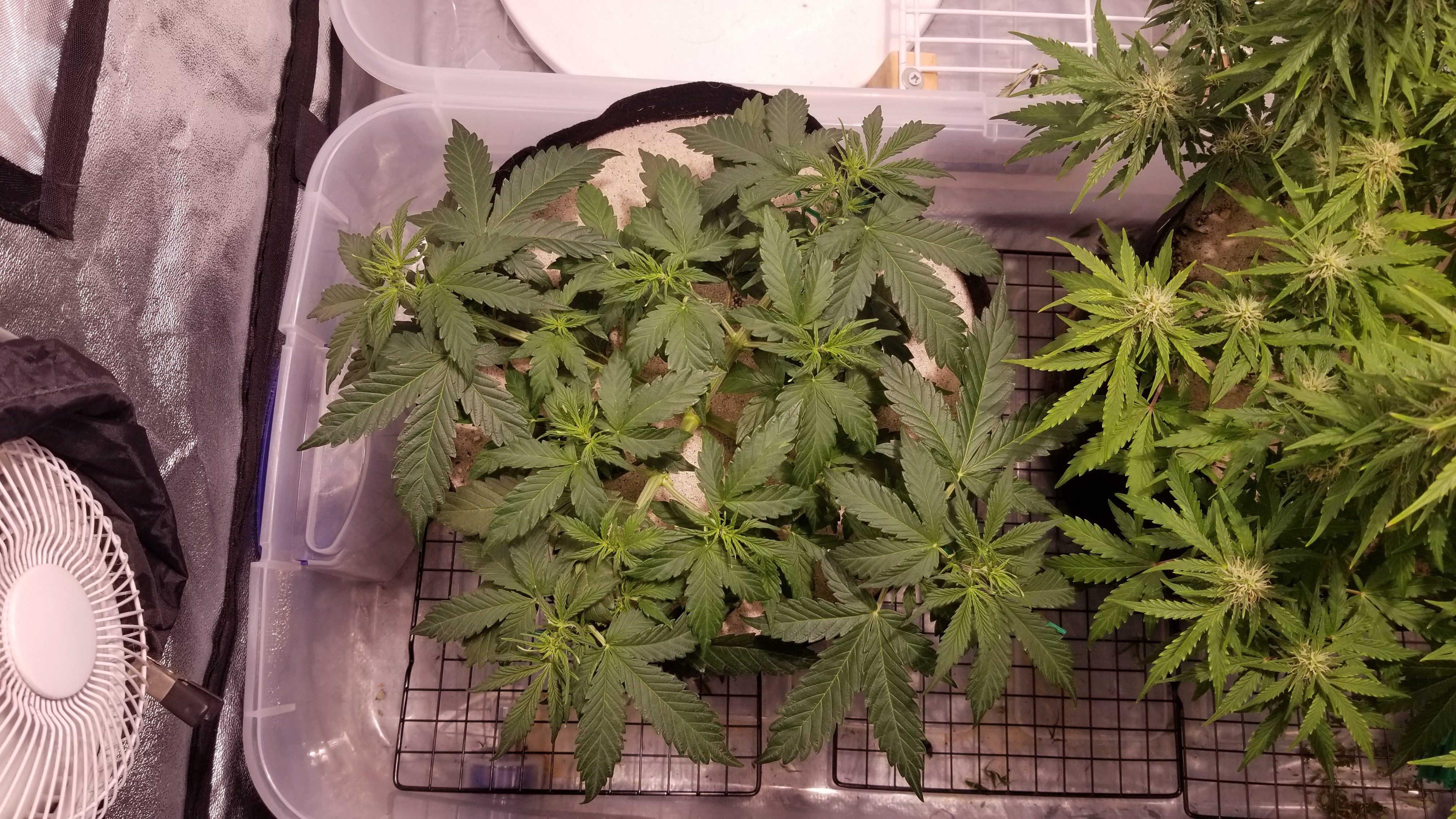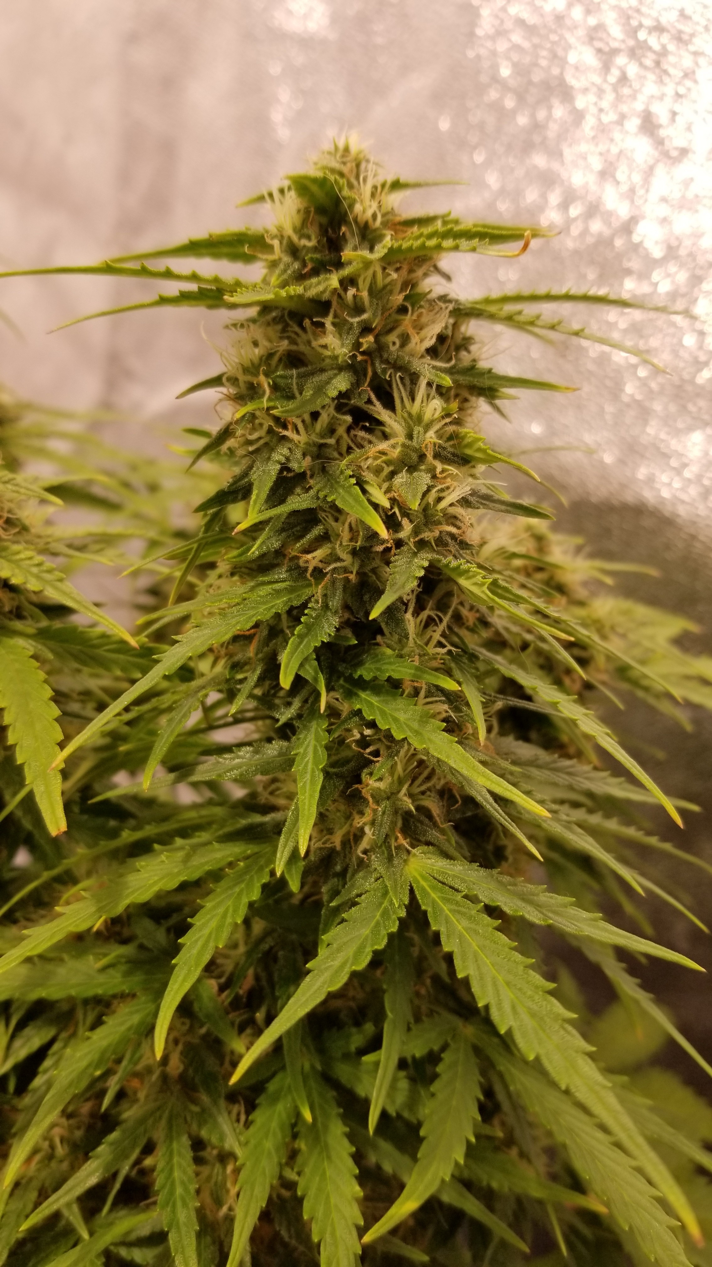 OGK was fed this morning with 5ml of calmag in 1 gallon of water. Also did a decent defoliation, should be the last one I do. She's putting on some trichomes. Happy to see that.