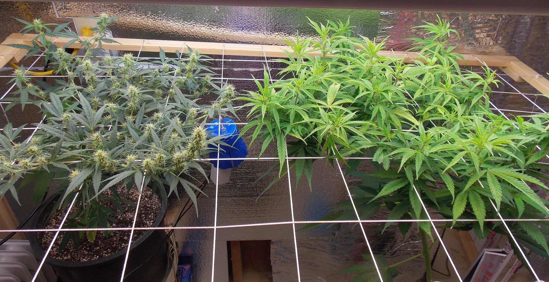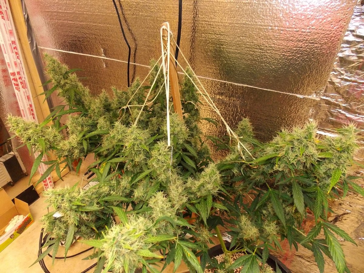 What do you all do to keep ur plants from falling over when they get top heavy? If I tie them up together then they'll get bunched up and overlap each other also worried about getting light to the lower bud sites. Any suggestions or ideas.
