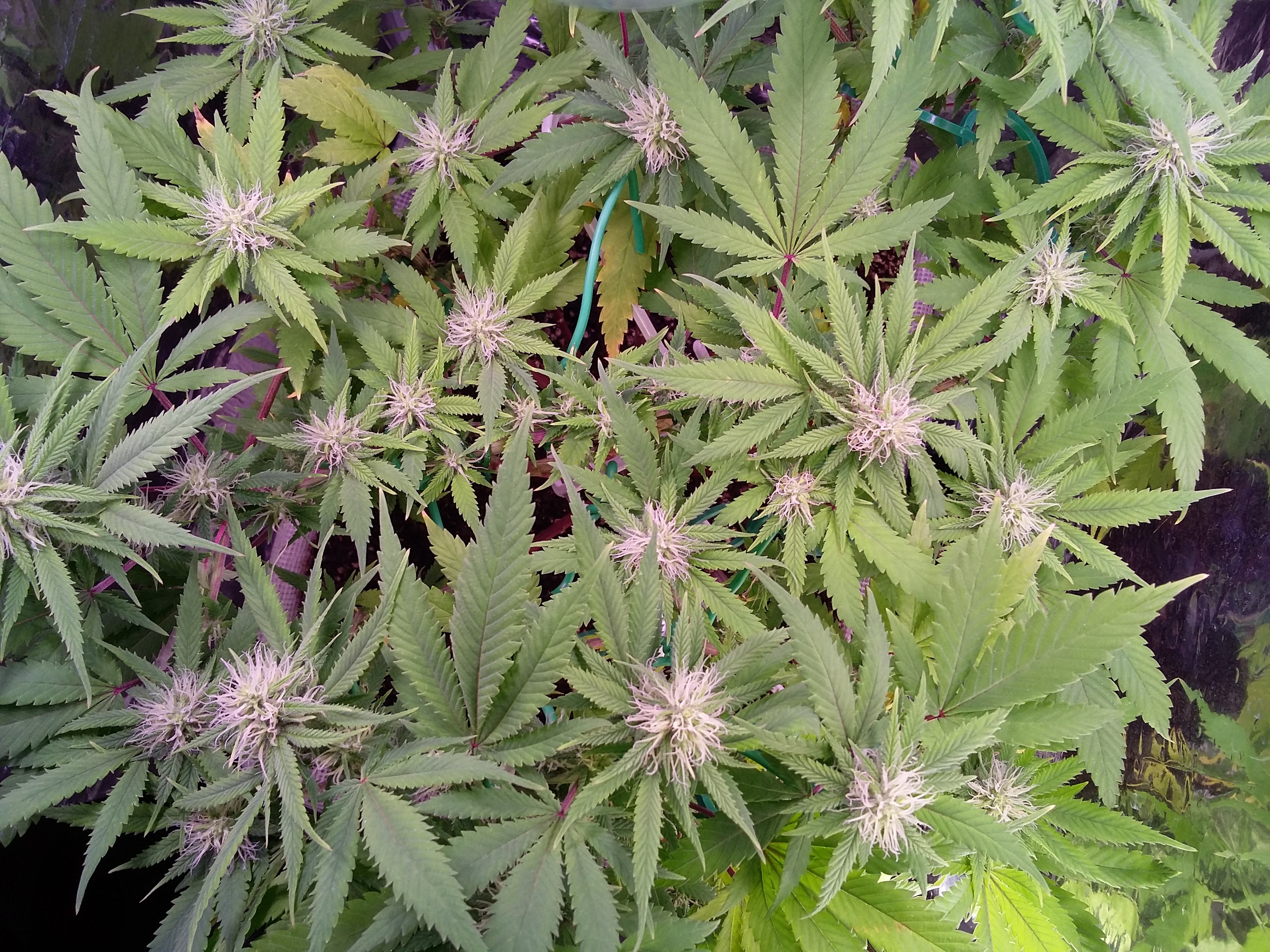 We continue to move through bloom stage, got lil yellowing at the bottom early fan leaves mainly (maybe sprayed by Nuts during previous roots feeding), but buds seems like starting to grow bigger from now on!