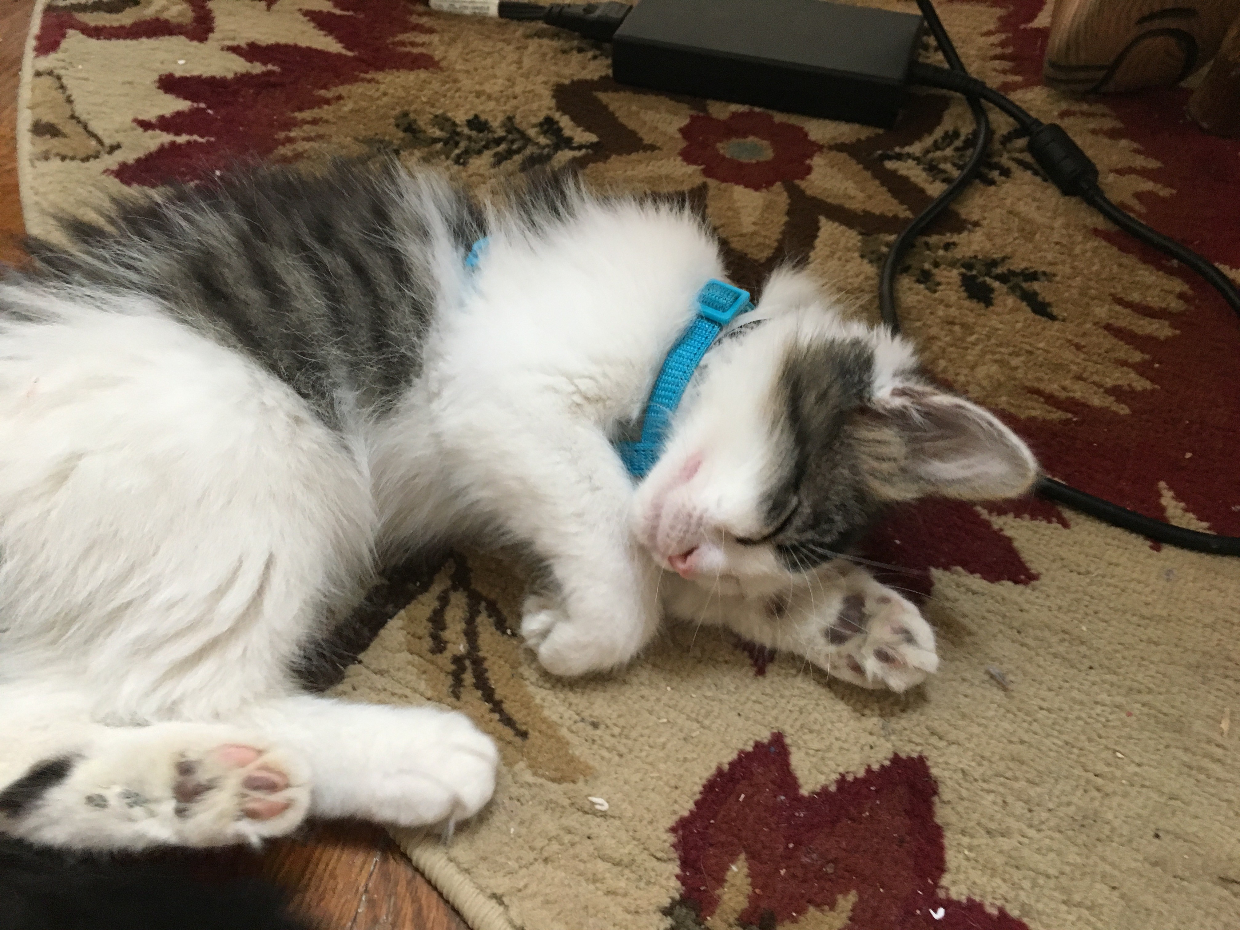 He wont have it any other way,its our morning snooze and our night cuddle thing...He lays beside my pillow and looks out the window while i snooze with his purrs and rub his belly...He loves being touched and he talks back when you talk to him and has a very strong character!Adorable lil fluffball