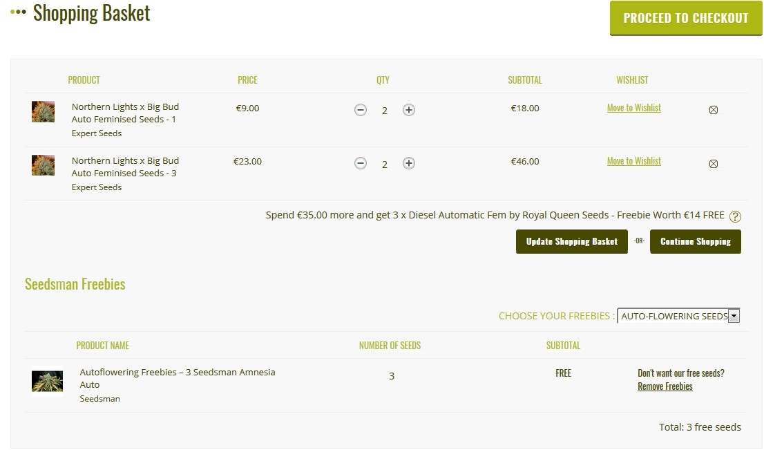 I also remembered having created an account on seedsman to check all offers and promos and the thing that i liked the most as that they have a very efficient checkout system that applies gifts promos and discounts just before you checkout and move on to paying.