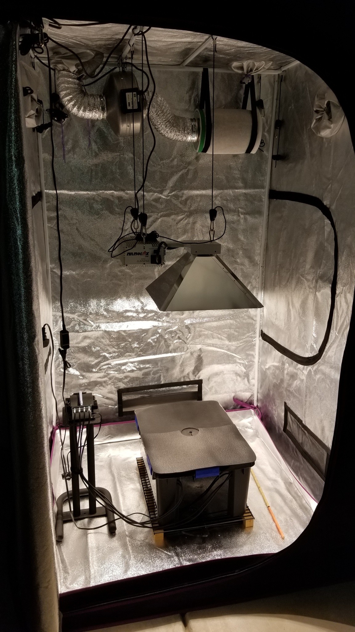 My setup. 4x4x7 tent 1000w HPS for flowering and 6 tube T5 for vegging.