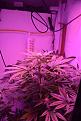 I agree with to much foliage, my first Hydro and was not sure what to take off, going forward that will get trimmed quite a bit. I have two 6inch fans pulling from under my shop (Cut and covered with screen multiple 4 inch locations. Air flow is just enough to pull positive on the grow box they run 24/7 . In side I have multiple fans that oscillate across the grow area one low and one high on both sides 24/7 . Only light that is red is on the left side (Veg side, but now flowering under the red light). its a 270w, right side has a "White" light for flowering (According to the button). This should give me the opportunity to compare. Only time this varies is when the temp starts to get low one of the big fans will stop.