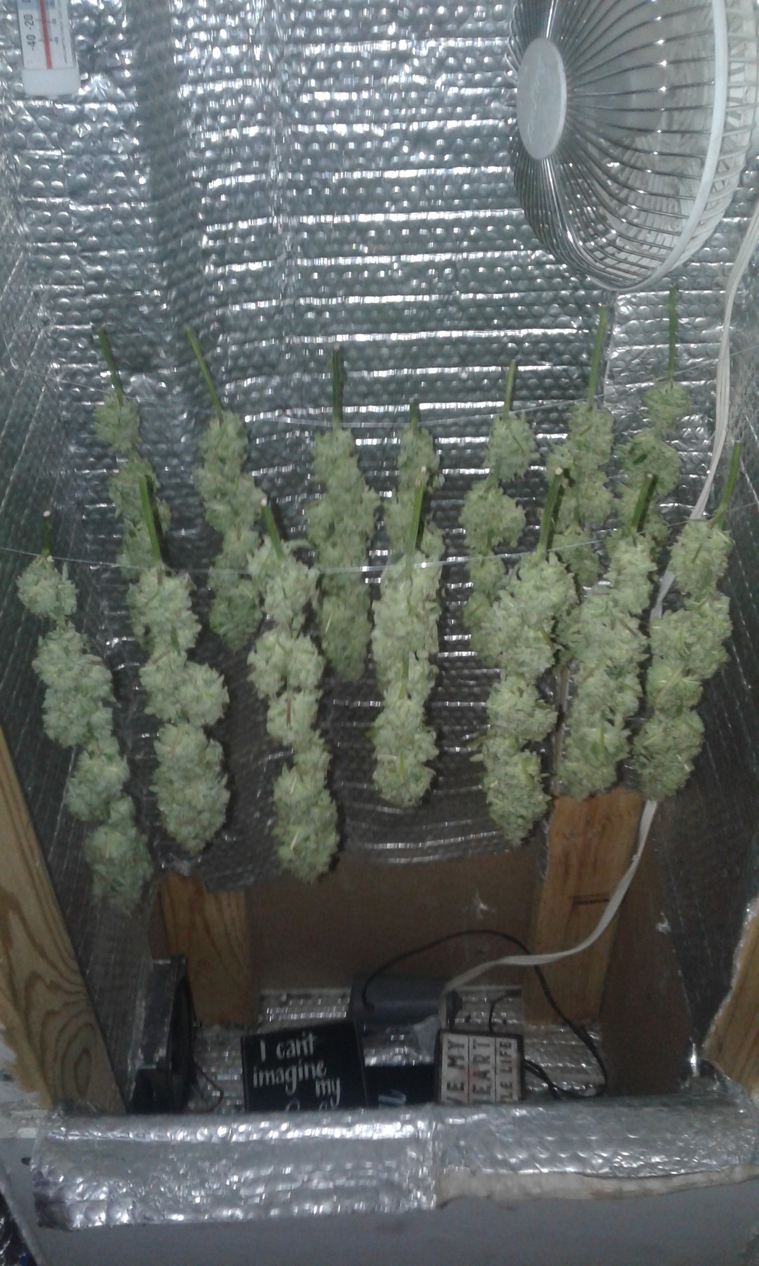 Haha well I don’t want to ruin the surprise but it’s a great way to follow the ambering and maturing of the thrichomes. You know how everybody harvest at first few ambers but cured weed is always more uniformly amberish? The whole plant stays alive and still maturing for a few days when drying. It doesn’t just die when you cut it. Anyway. Is a good way to oversee the curing process