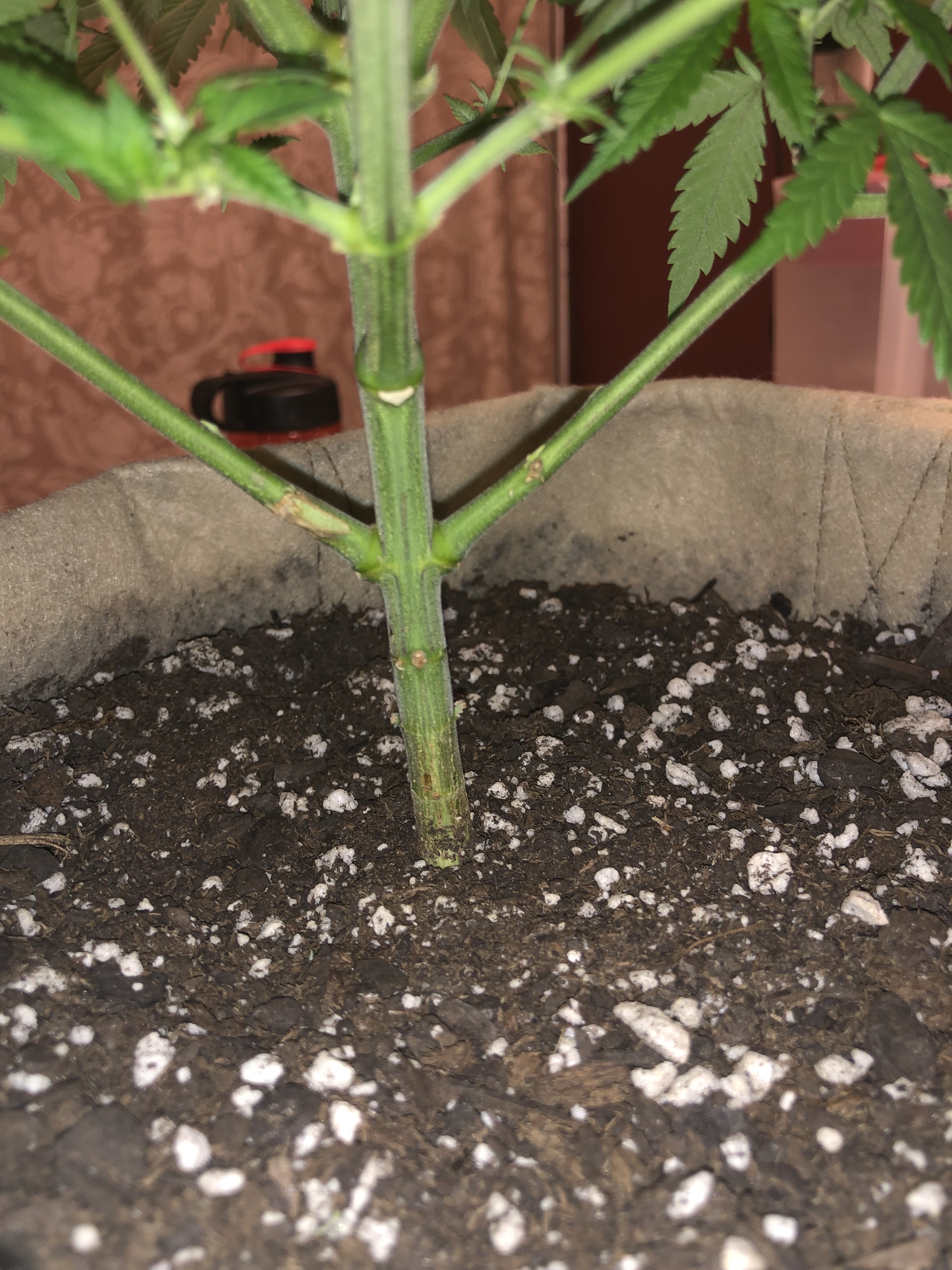 A few more pics of other symptoms. Smallish holes showing up on some leaves and some under canopy growth dying off. No sign of pests that I can tell, however I may be missing something. I know that if there are root issues, then it can show up in a number of ways on leaves.