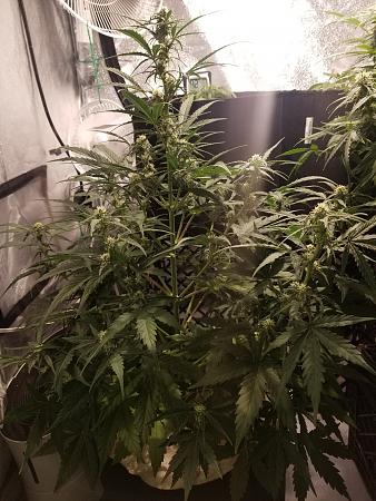 This girl is taking off! Shes now about 2 inches taller than the Lemon OG and still not full on flowering. I've added a supplement to her watering schedule. It's called MammothP, a microbial additive. Not sure if you can see the Lemon OG and the top of the WW reaching for the light but they've never done that, their first MP feeding was 12 hours ago.