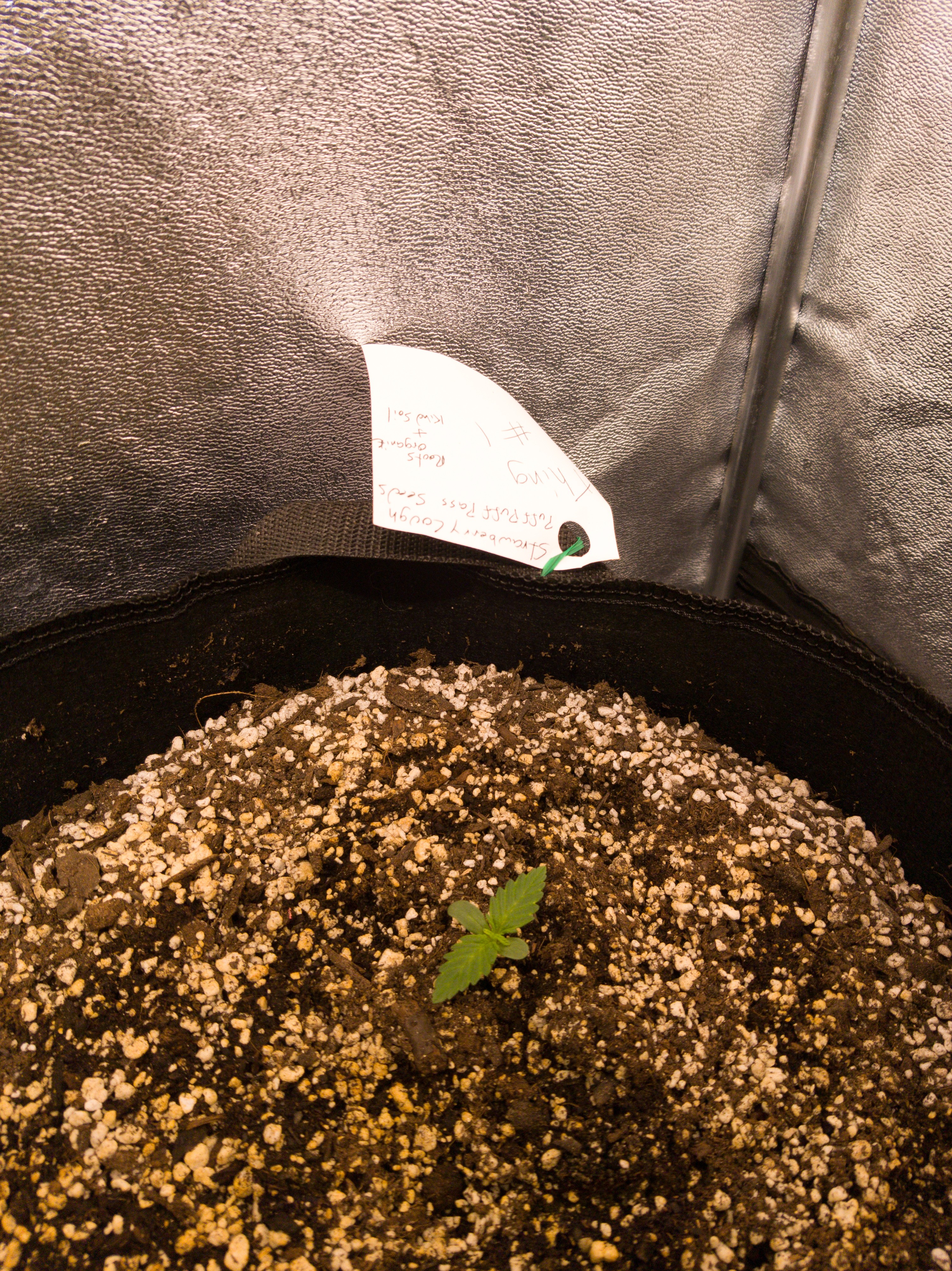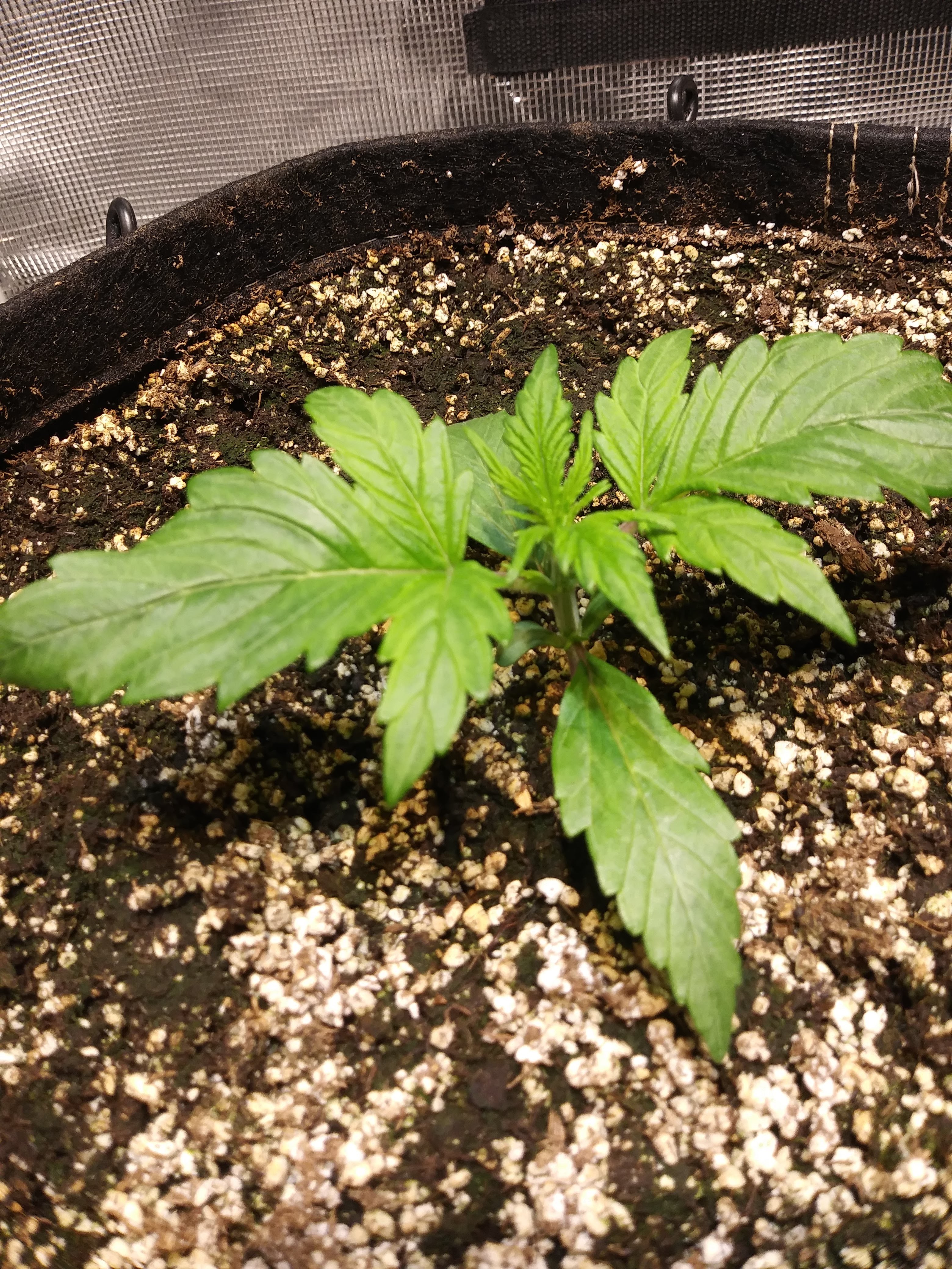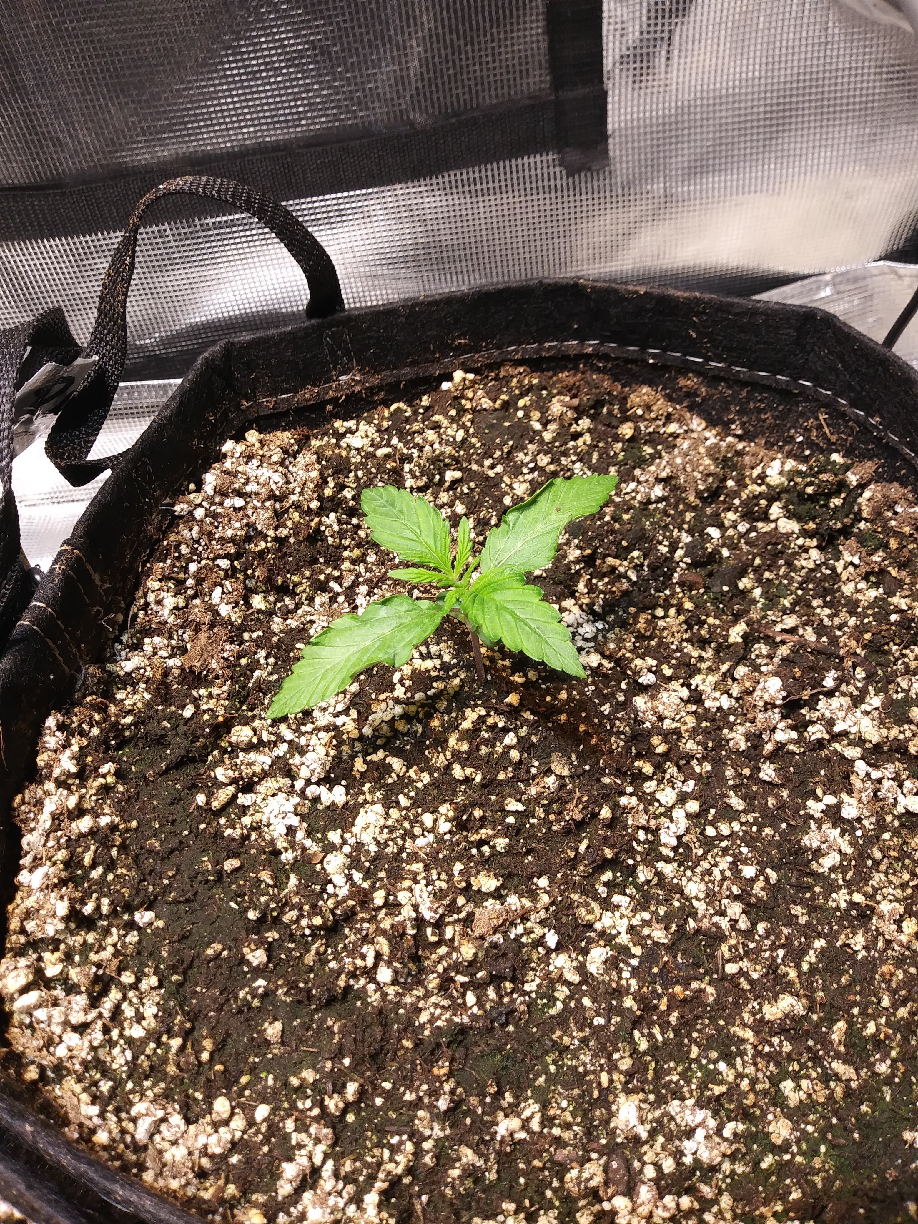 Durban Poison went in water on 11/27 seed cracked on 12/1. On 12/2 I had helmet head, has seemed slow to grow but is moving and has been put in a 2.7 liter from a 4 inch pot. Currently 17 days from shot glass.